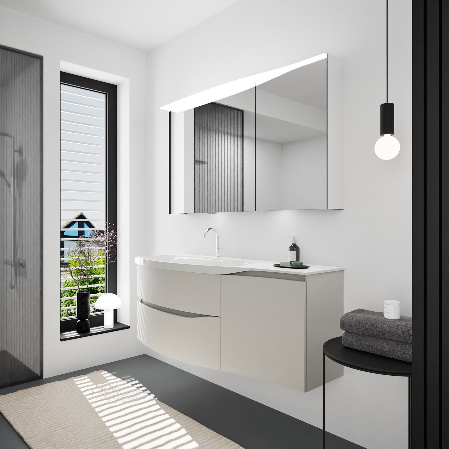 burgbad Sinea 3.0 Mineralguss-Waschtisch mit Unterschrank, 142 cm, mit Griffleiste G0167