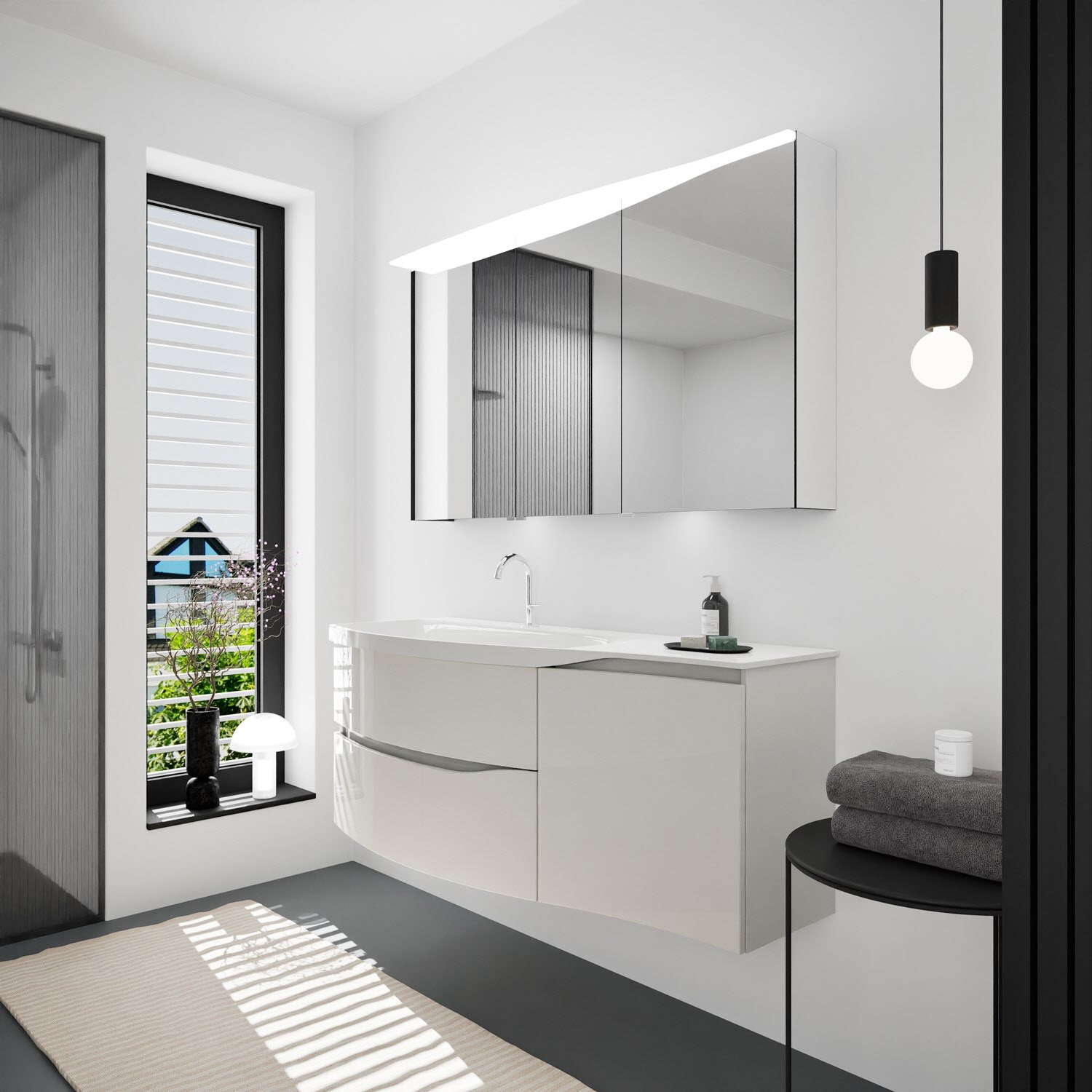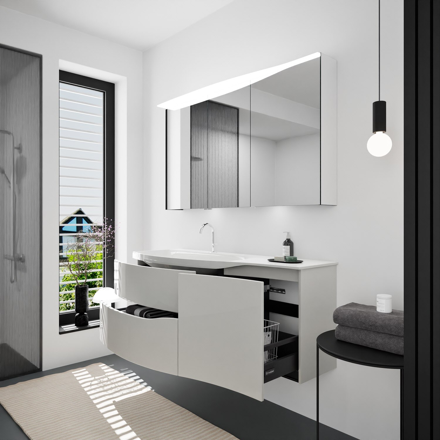 burgbad Sinea 3.0 Mineralguss-Waschtisch mit Unterschrank, 142 cm, mit Griffleiste G0167