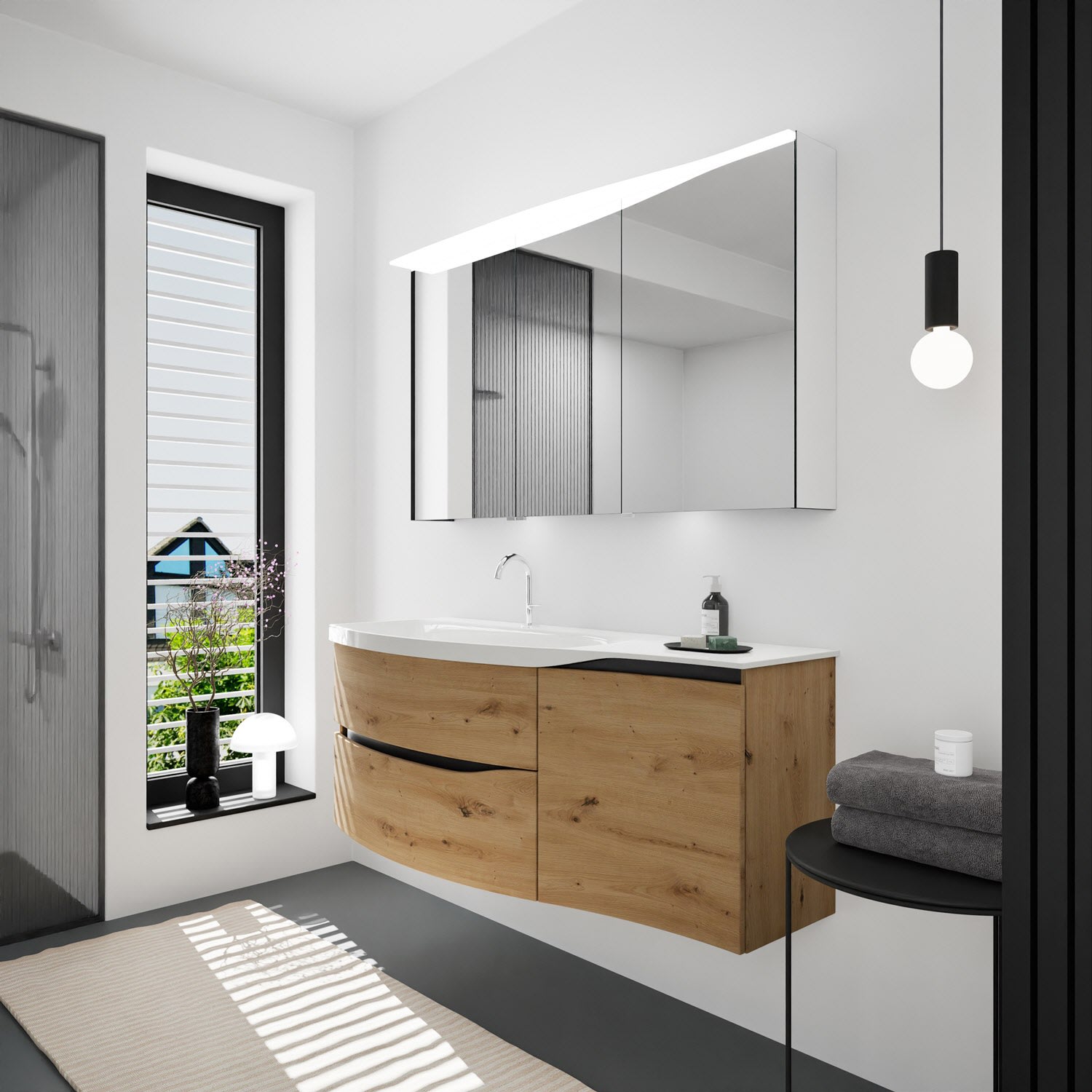 burgbad Sinea 3.0 Mineralguss-Waschtisch mit Unterschrank, 142 cm, mit Griffleiste G0292