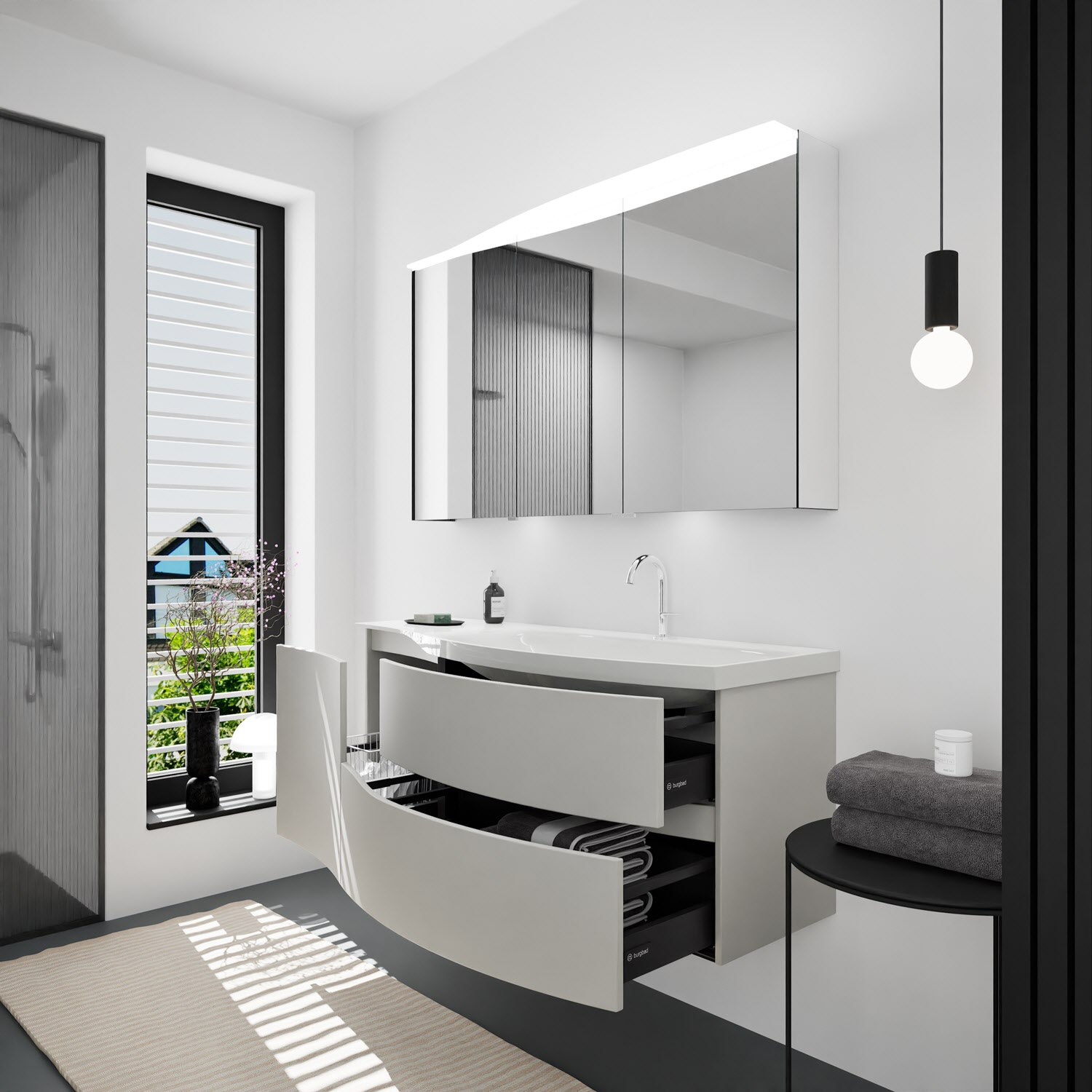 burgbad Sinea 3.0 Mineralguss-Waschtisch mit Unterschrank, 142 cm, mit Griffleiste G0167