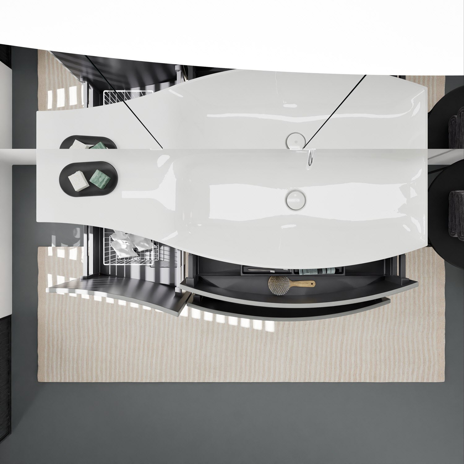 - 1 Schublade oben, mit Siphonausschnitt und Inneneinteilung