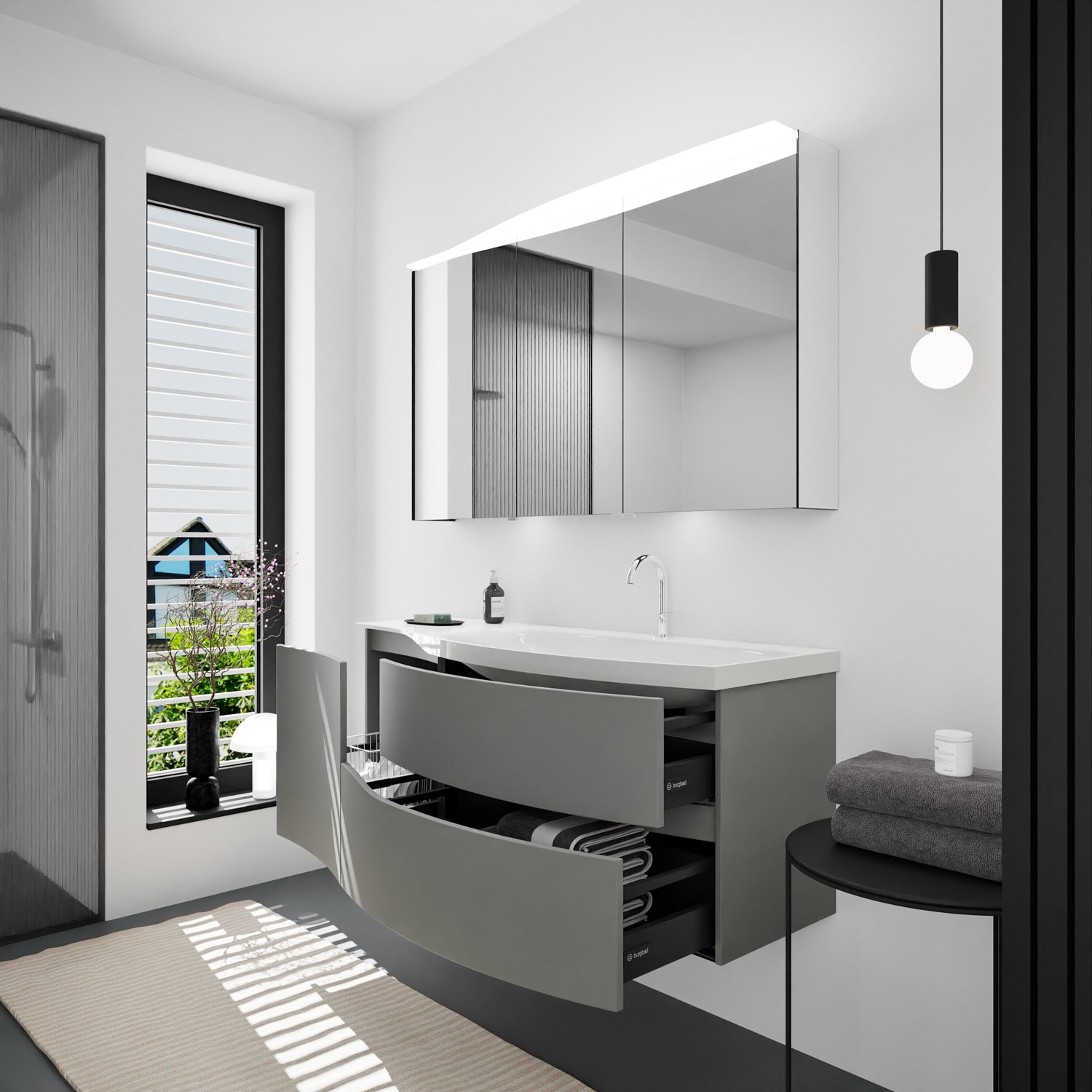 burgbad Sinea 3.0 Mineralguss-Waschtisch mit Unterschrank, 142 cm, mit Griffleiste G0167
