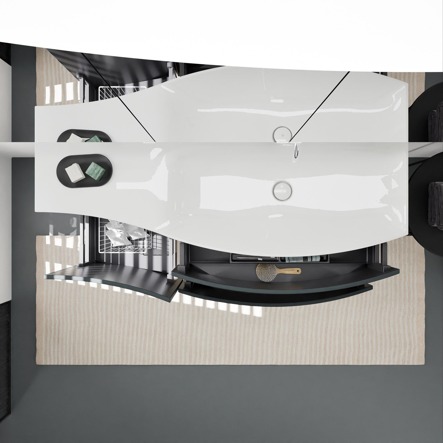 - 1 Schublade oben, mit Siphonausschnitt und Inneneinteilung