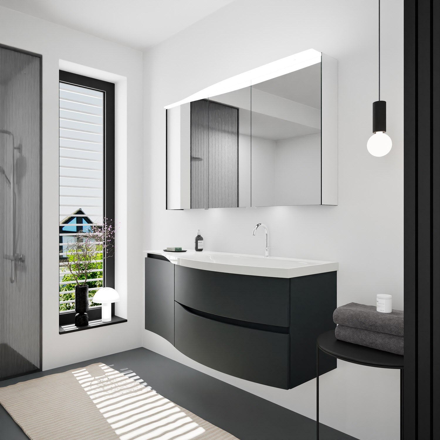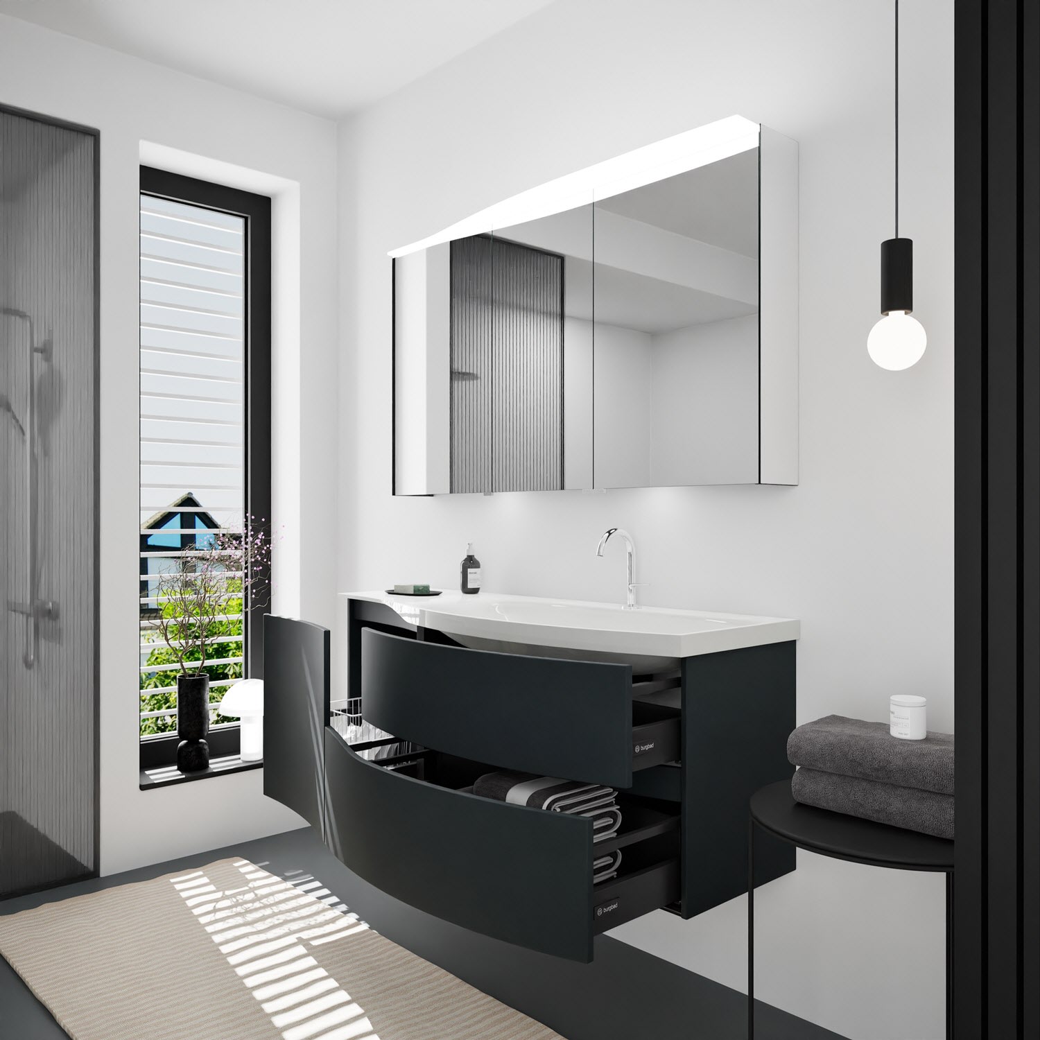 burgbad Sinea 3.0 Mineralguss-Waschtisch mit Unterschrank, 142 cm, mit Griffleiste G0167