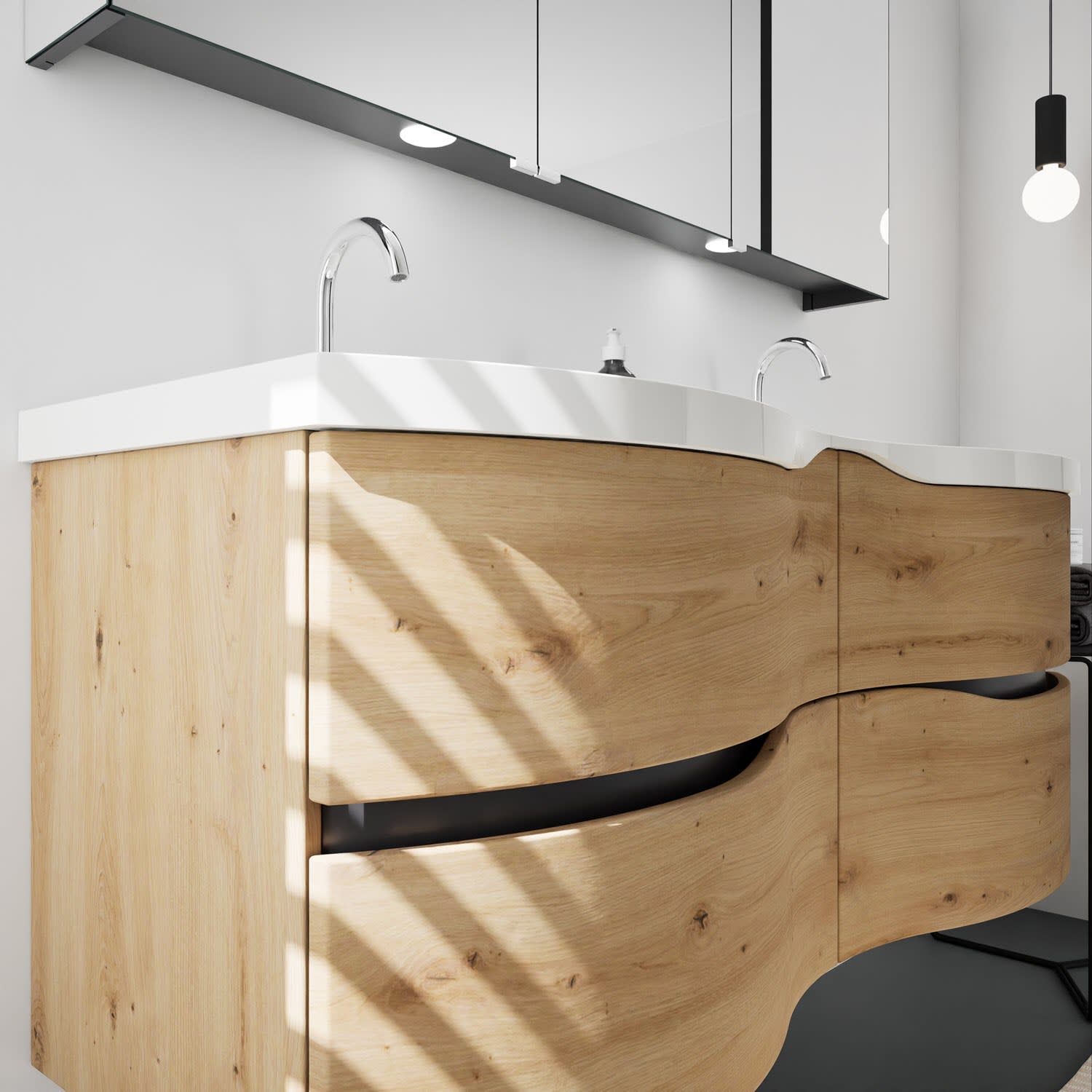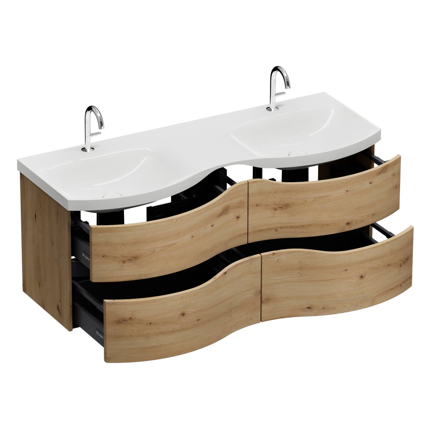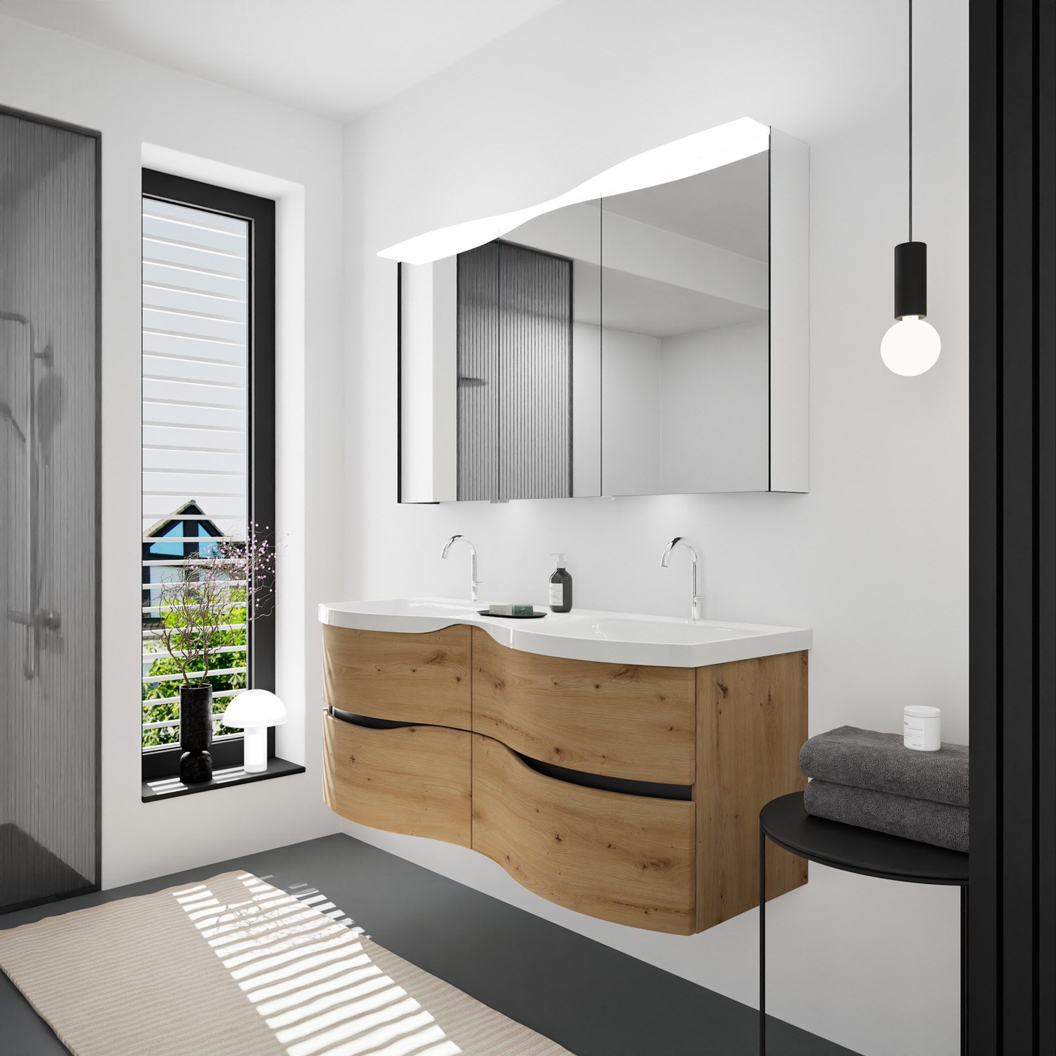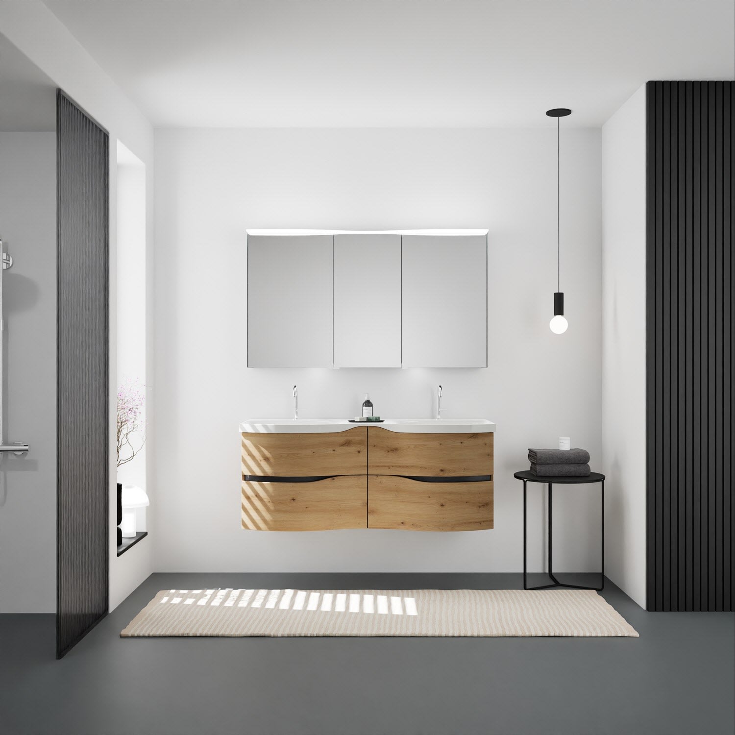 burgbad Sinea 3.0 Mineralguss-Doppelwaschtisch mit Unterschrank, 142 cm, mit Griffleiste G0292