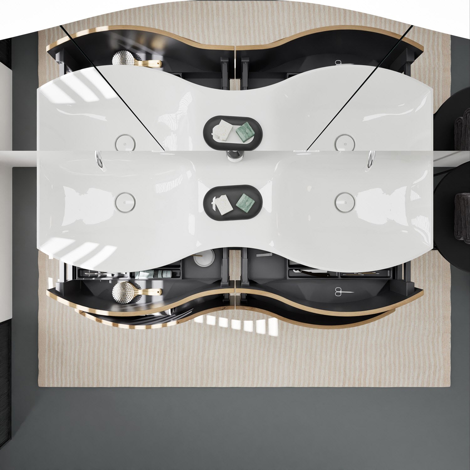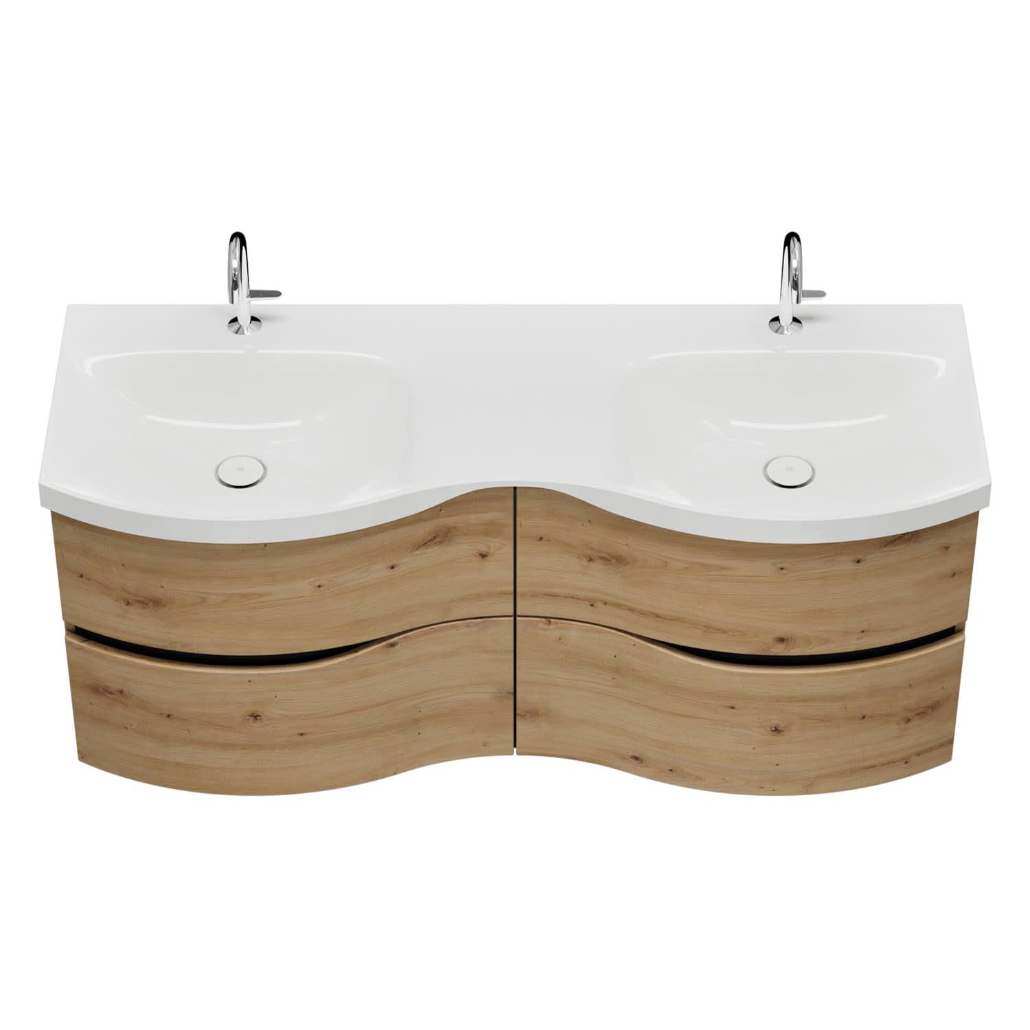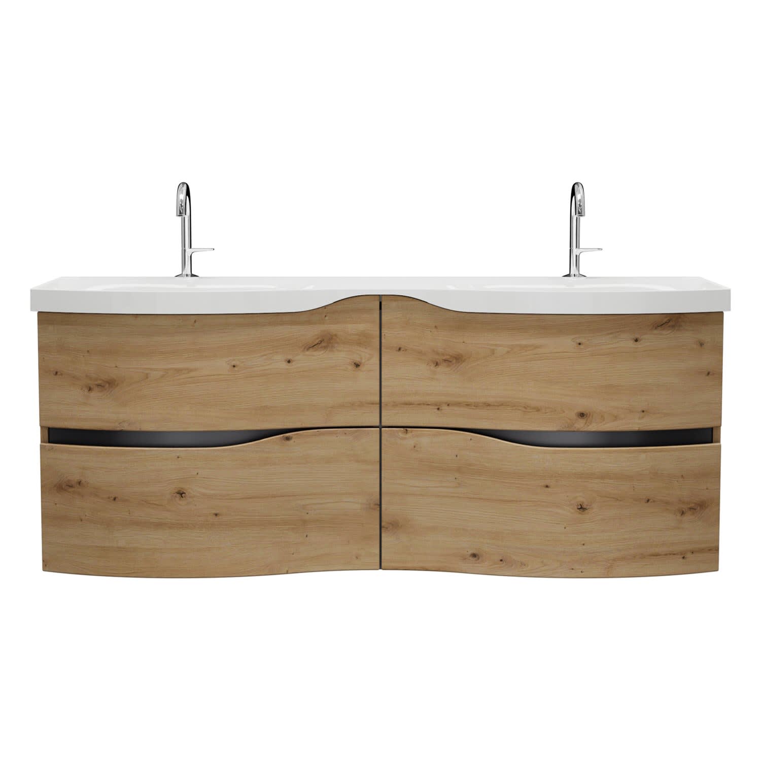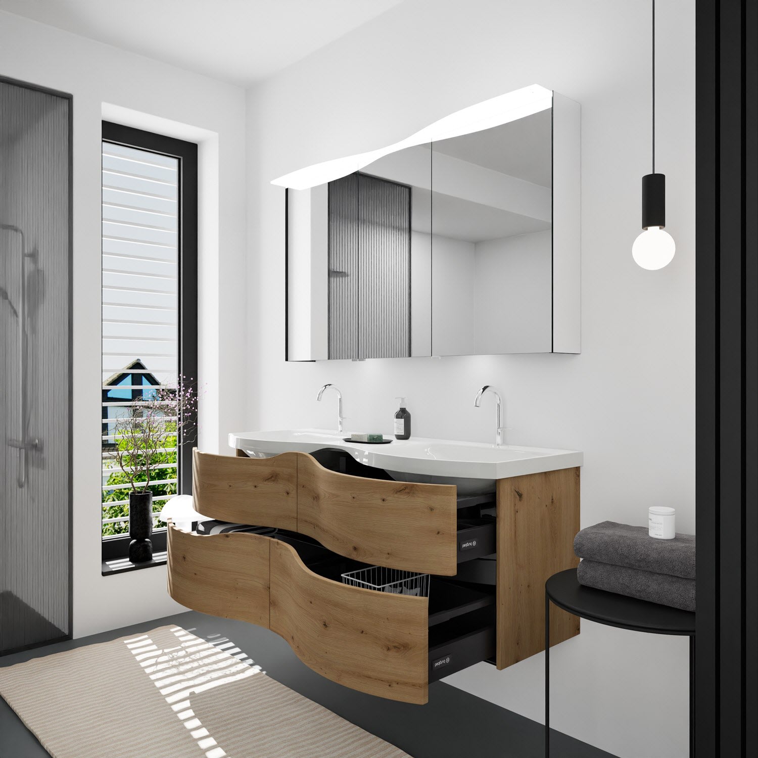 burgbad Sinea 3.0 Mineralguss-Doppelwaschtisch mit Unterschrank, 142 cm, mit Griffleiste G0292