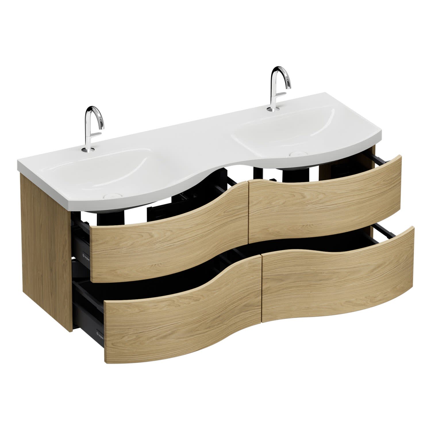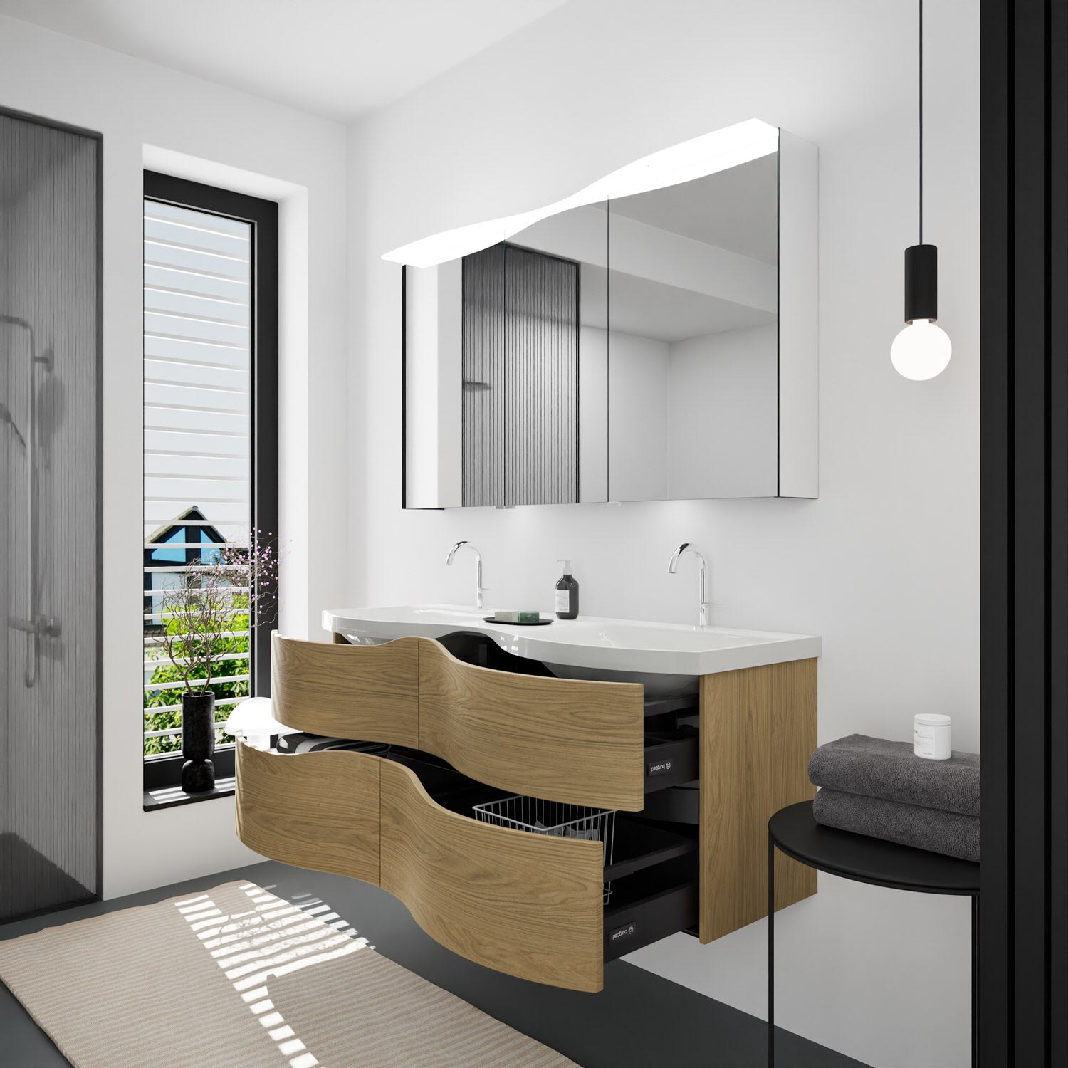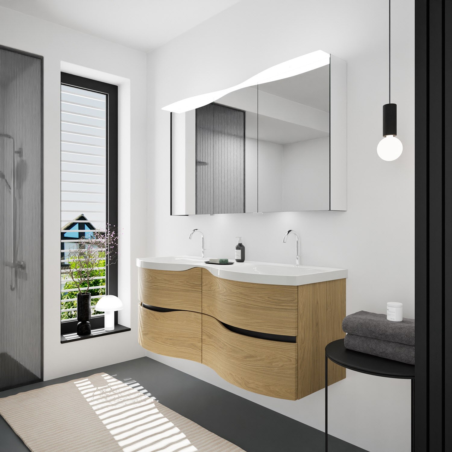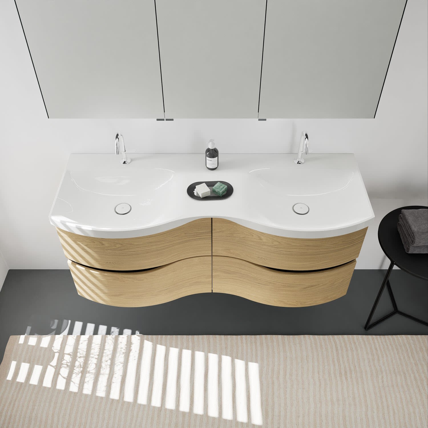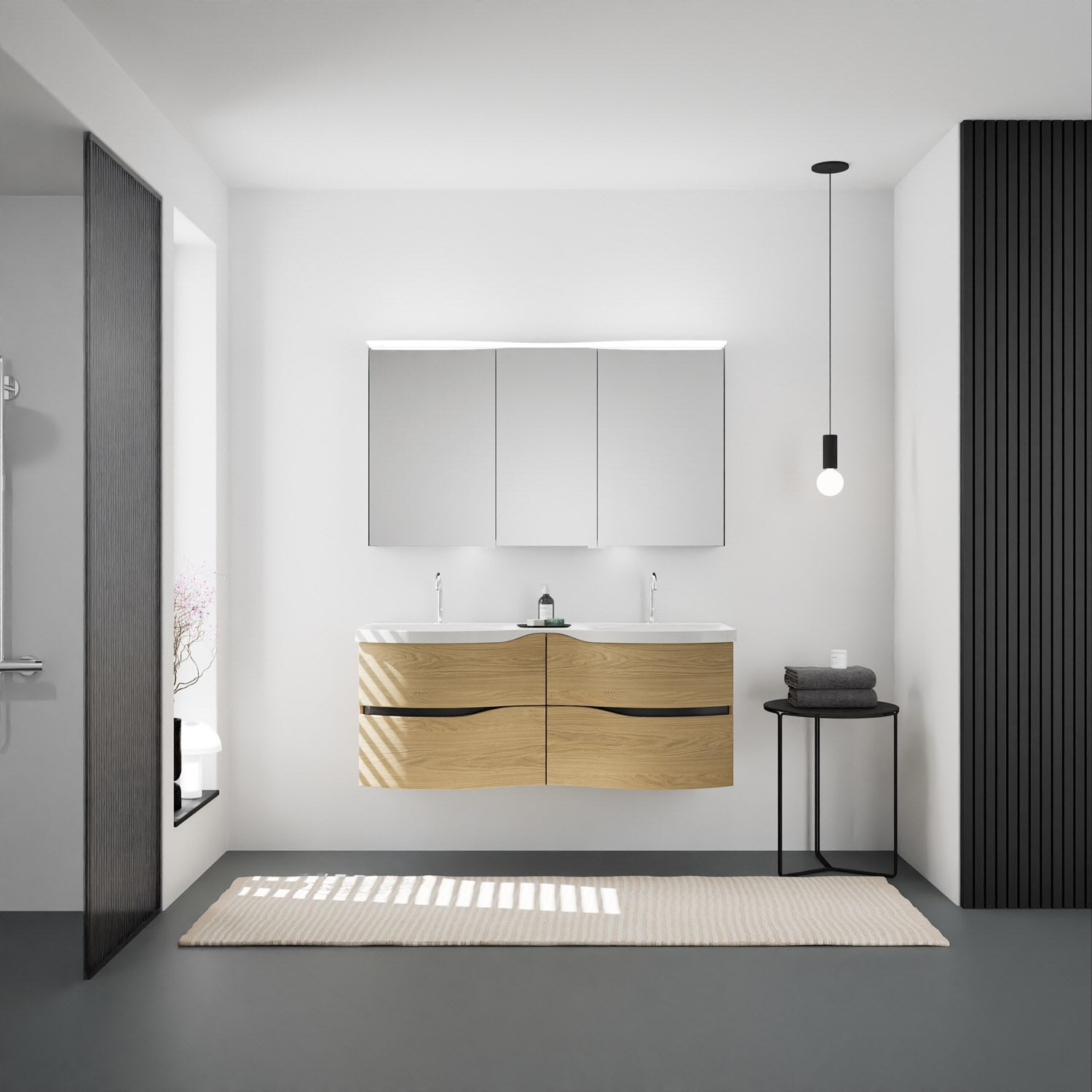 burgbad Sinea 3.0 Mineralguss-Doppelwaschtisch mit Unterschrank, 142 cm, mit Griffleiste G0292