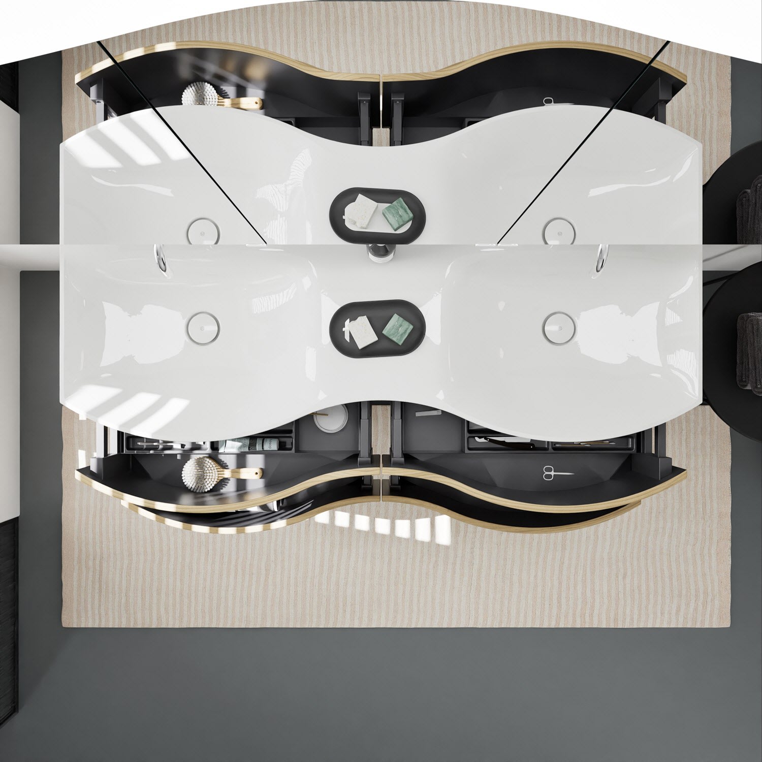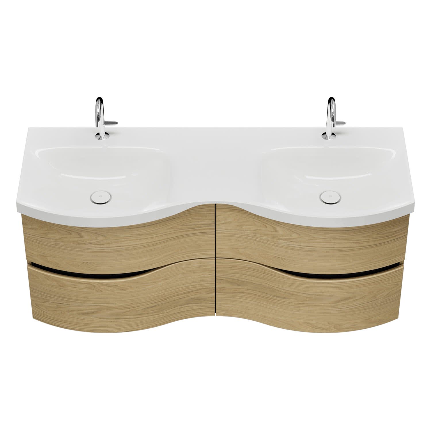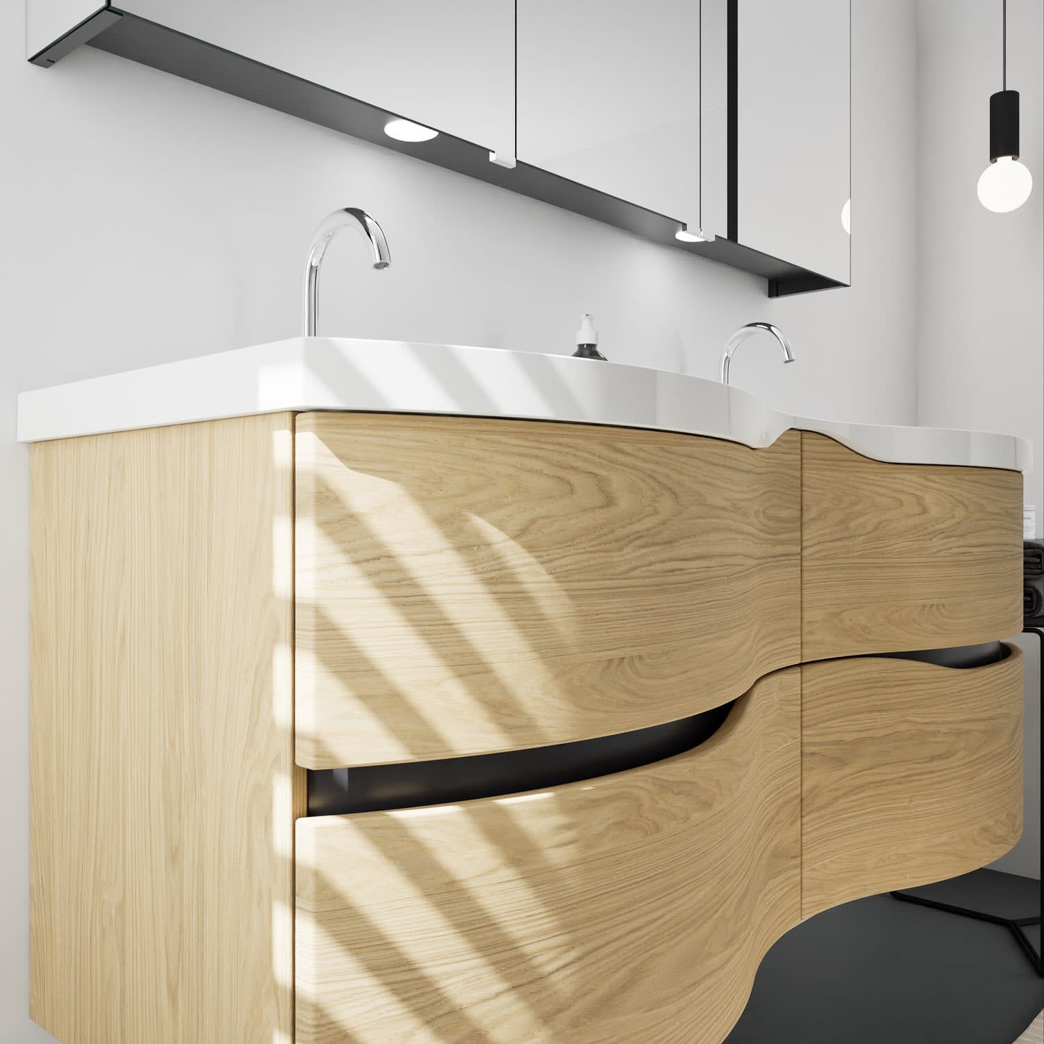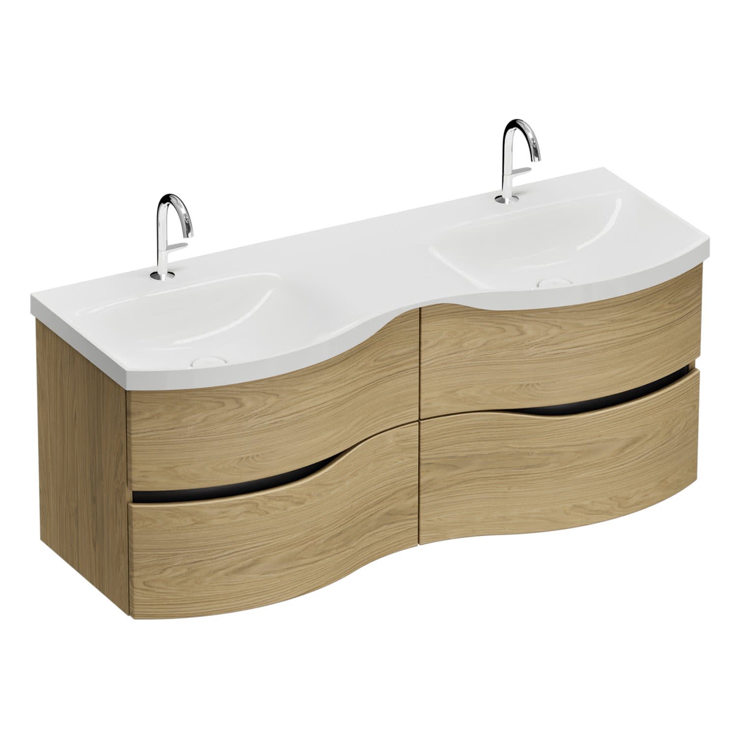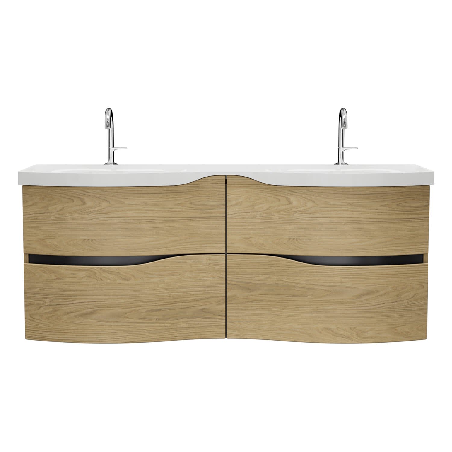 burgbad Sinea 3.0 Mineralguss-Doppelwaschtisch mit Unterschrank, 142 cm, mit Griffleiste G0292
