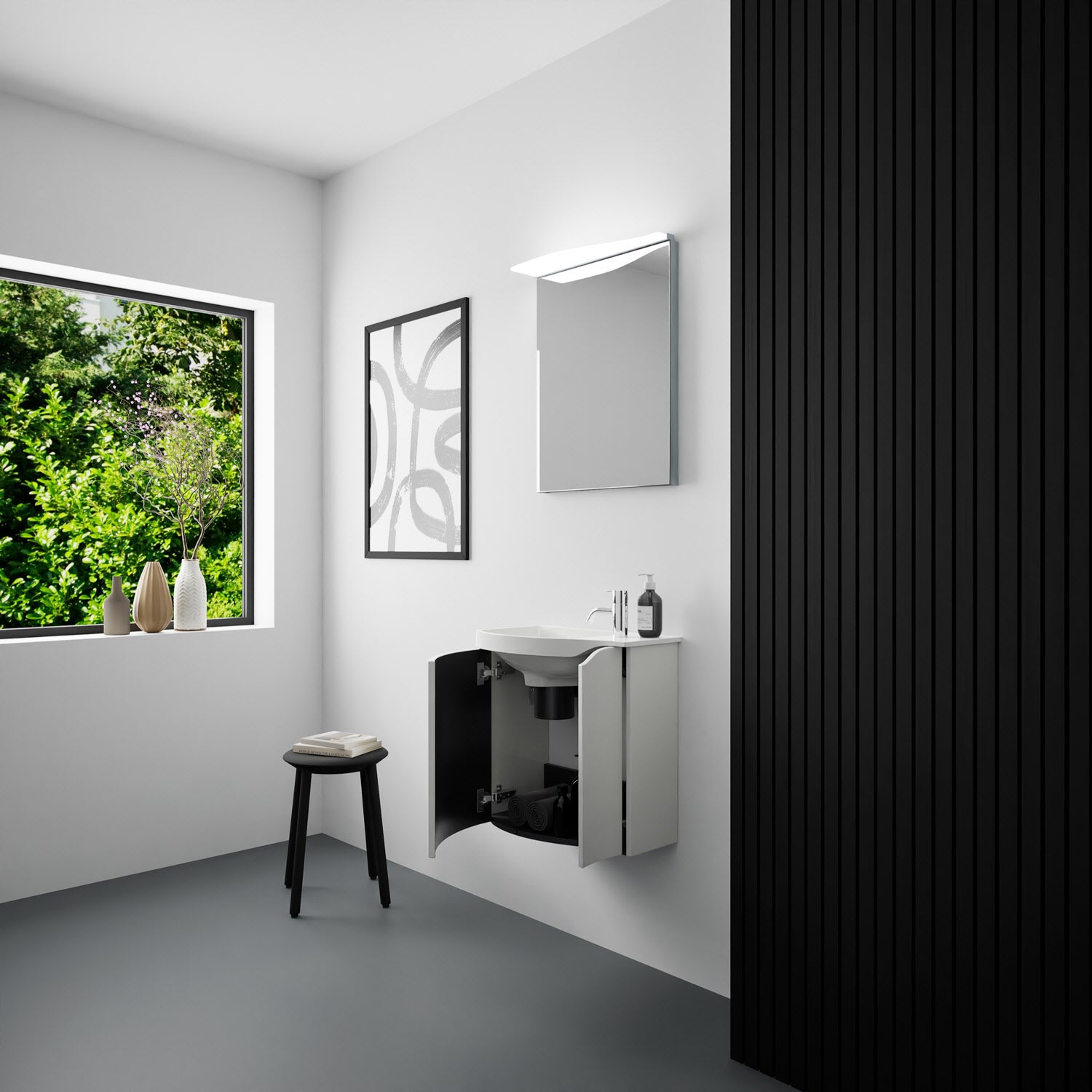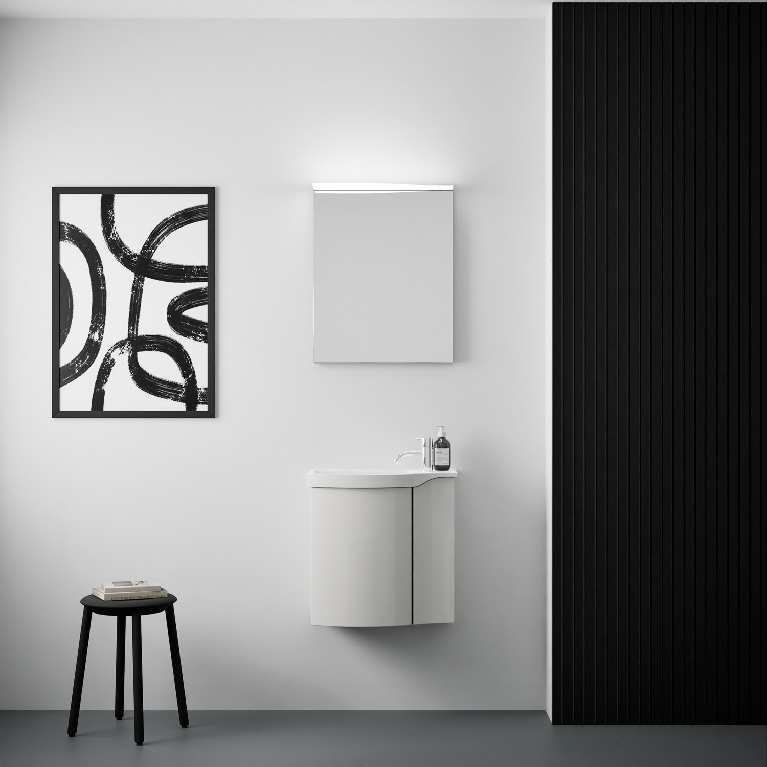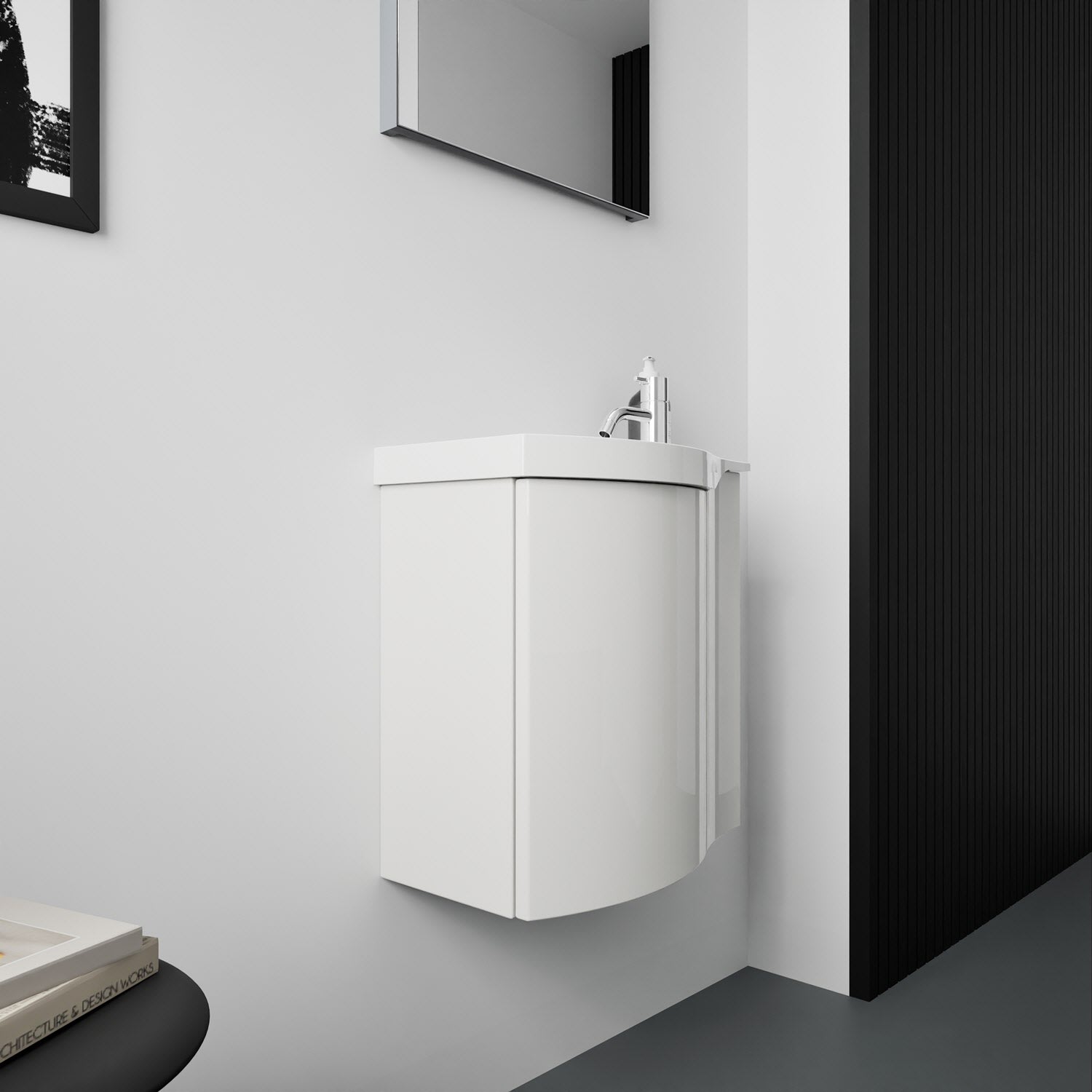 Kronenbach Plana 2.0 Spiegelschrank 50 cm mit 1 Tür und LED-Aufsatzleuchte, Anschlag rechts