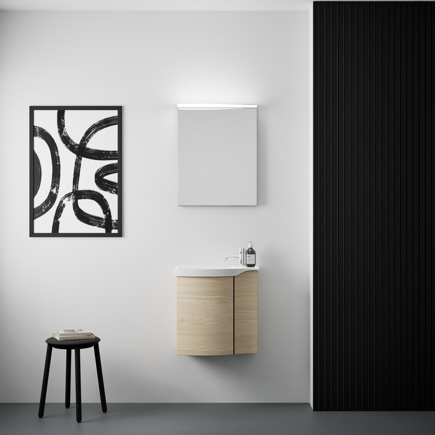 Kronenbach Plana 2.0 Spiegelschrank 50 cm mit 1 Tür und LED-Aufsatzleuchte, Anschlag rechts