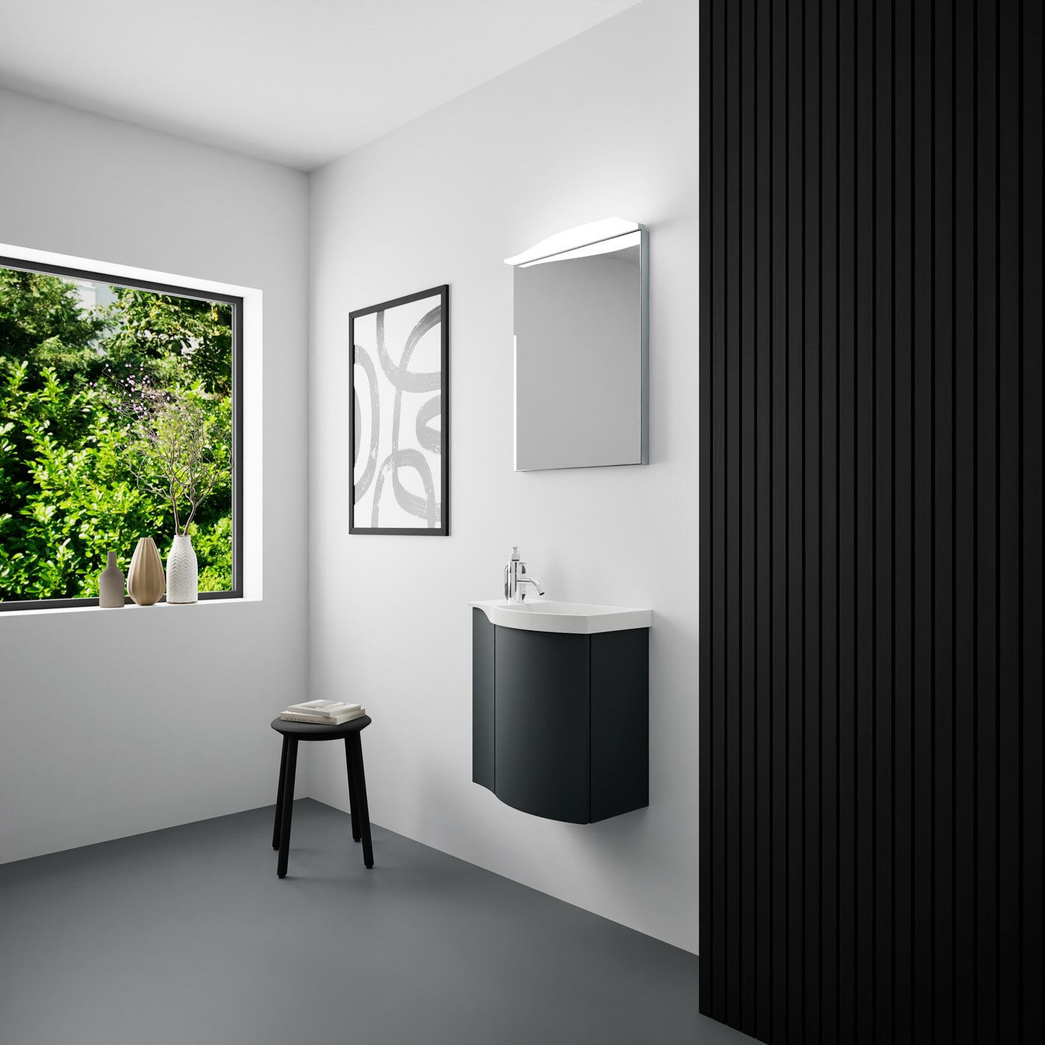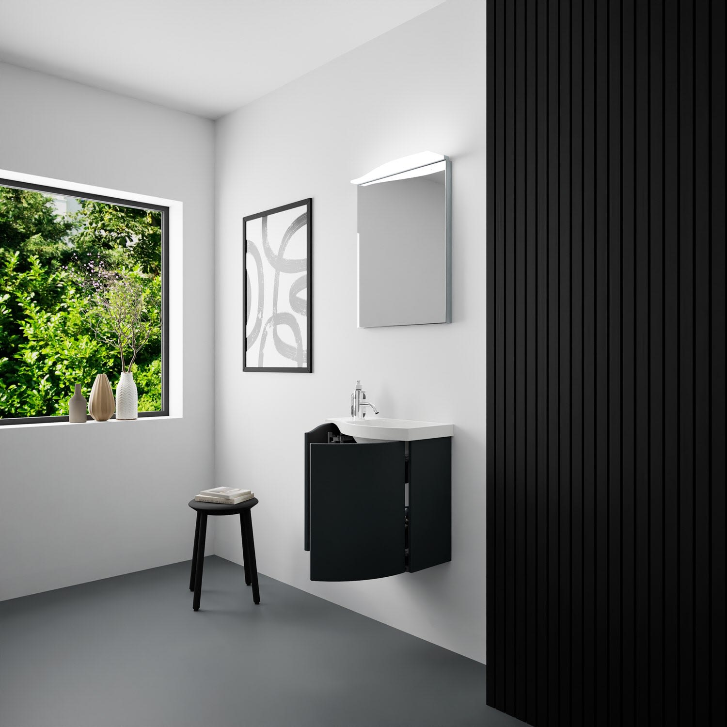 Kronenbach Plana 2.0 Spiegelschrank 50 cm mit 1 Tür und LED-Aufsatzleuchte, Anschlag rechts