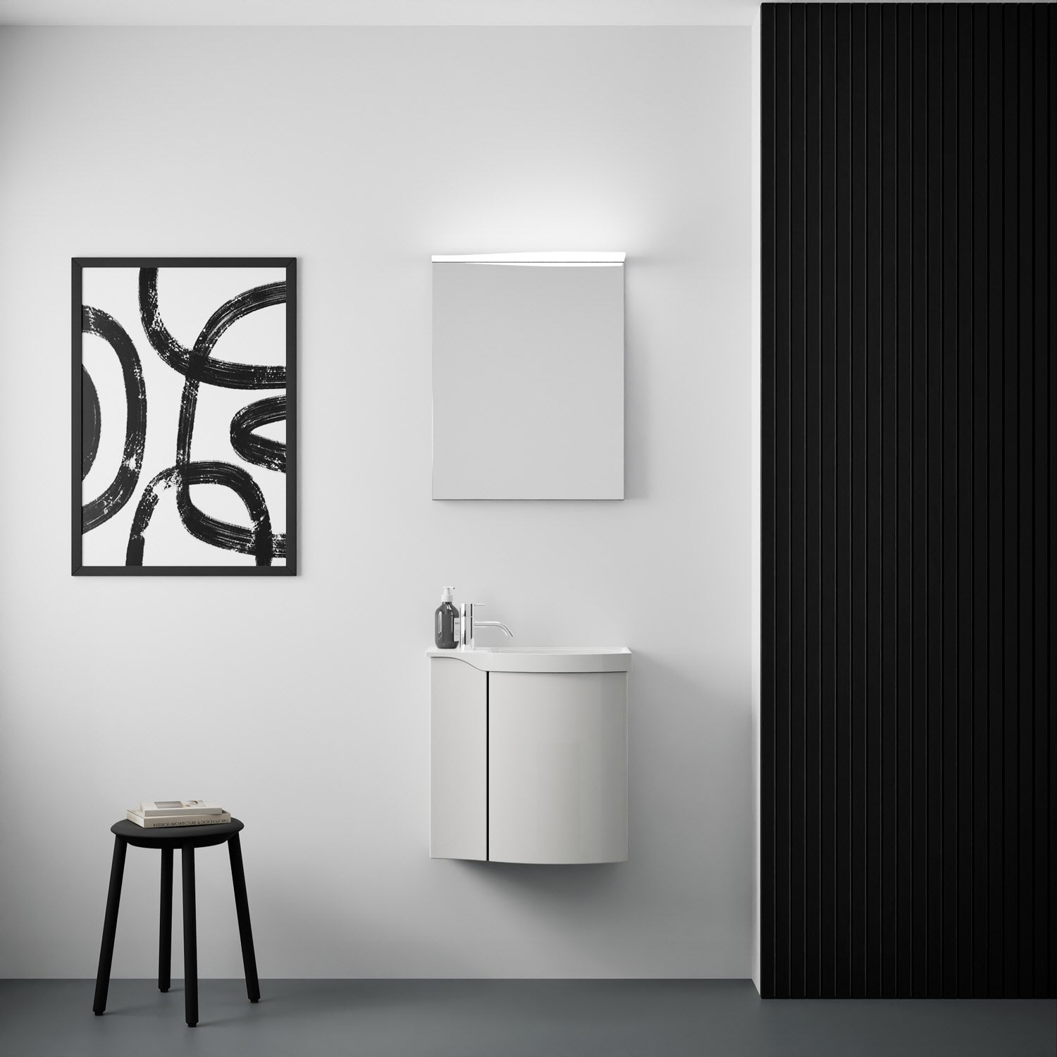 Kronenbach Plana 2.0 Spiegelschrank 50 cm mit 1 Tür und LED-Aufsatzleuchte, Anschlag rechts