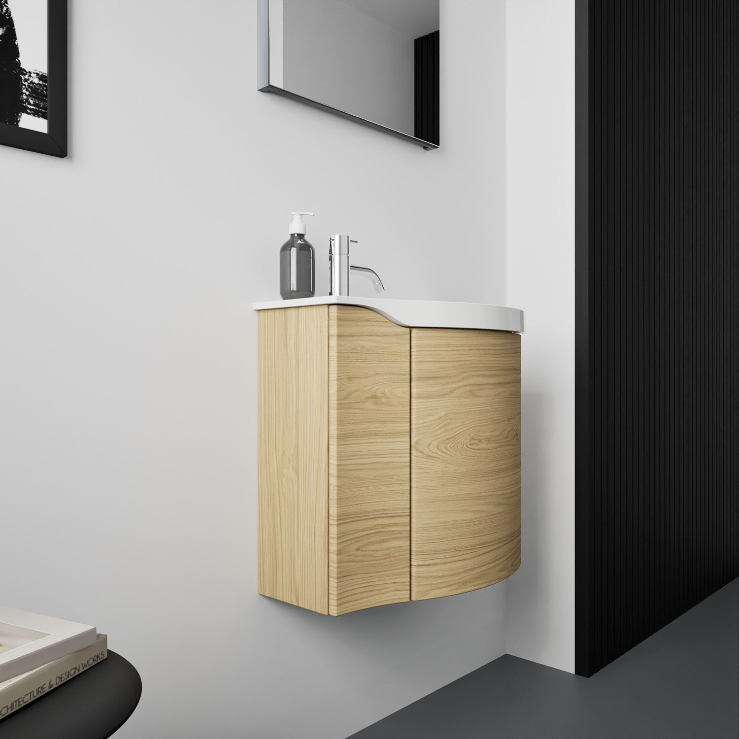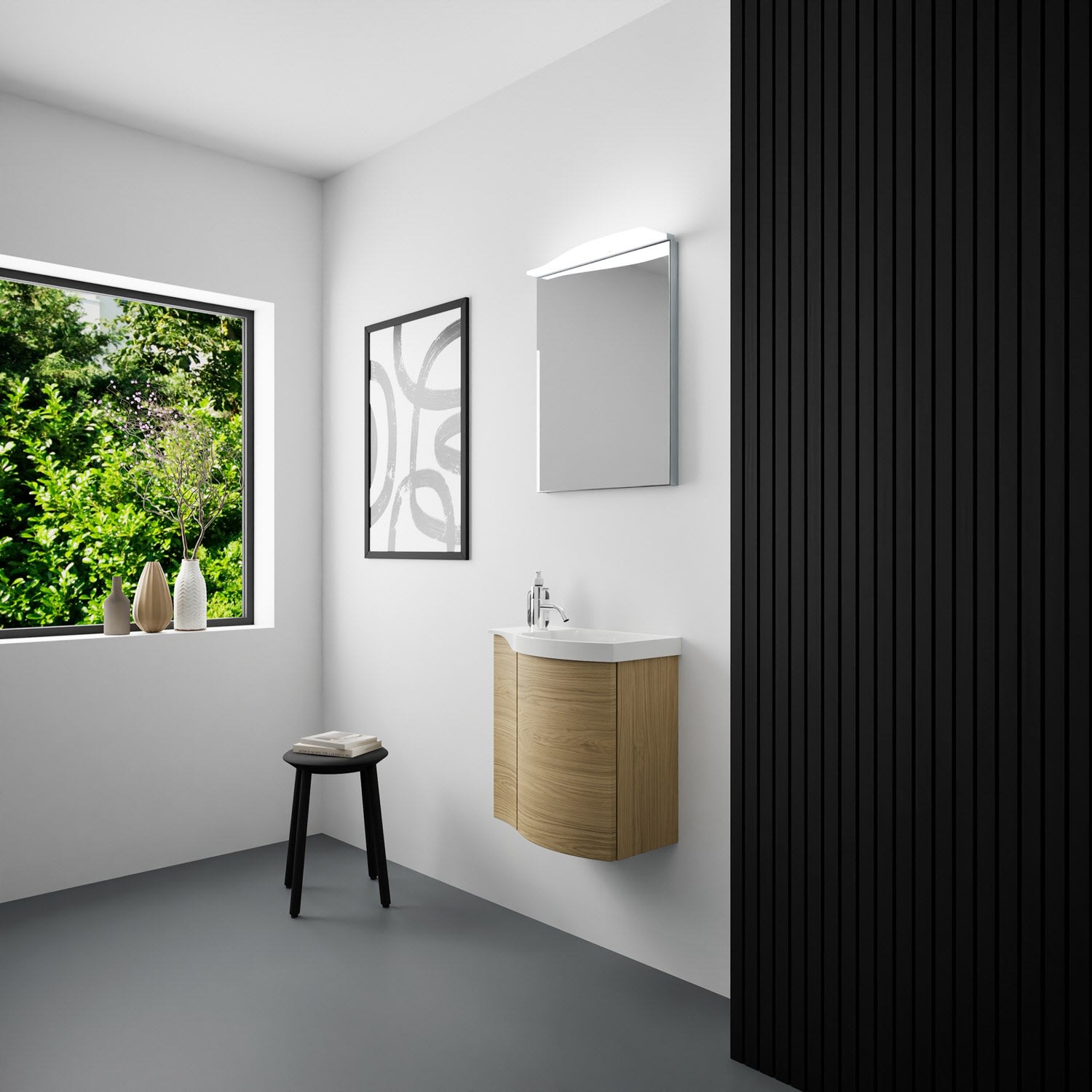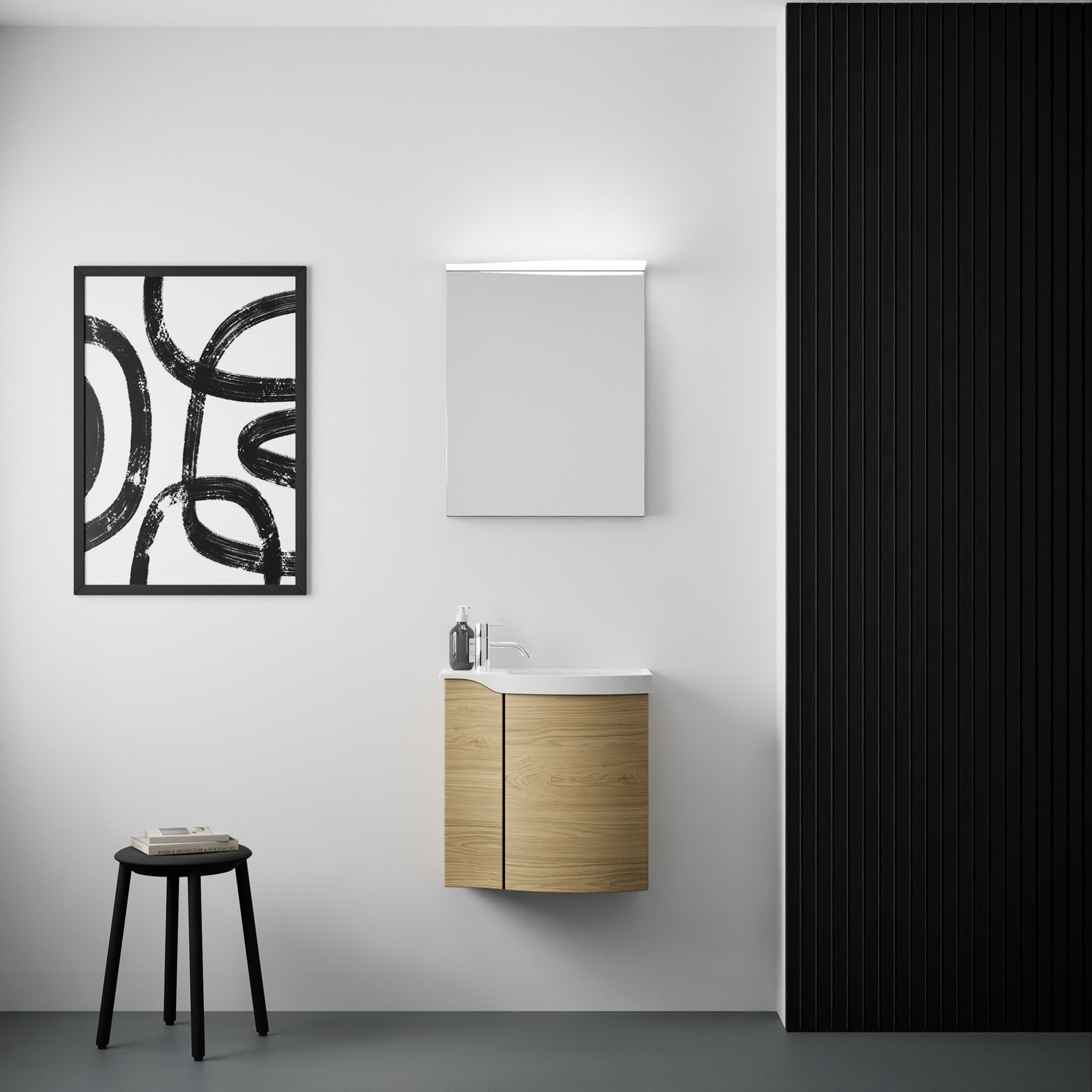 Kronenbach Plana 2.0 Spiegelschrank 50 cm mit 1 Tür und LED-Aufsatzleuchte, Anschlag rechts