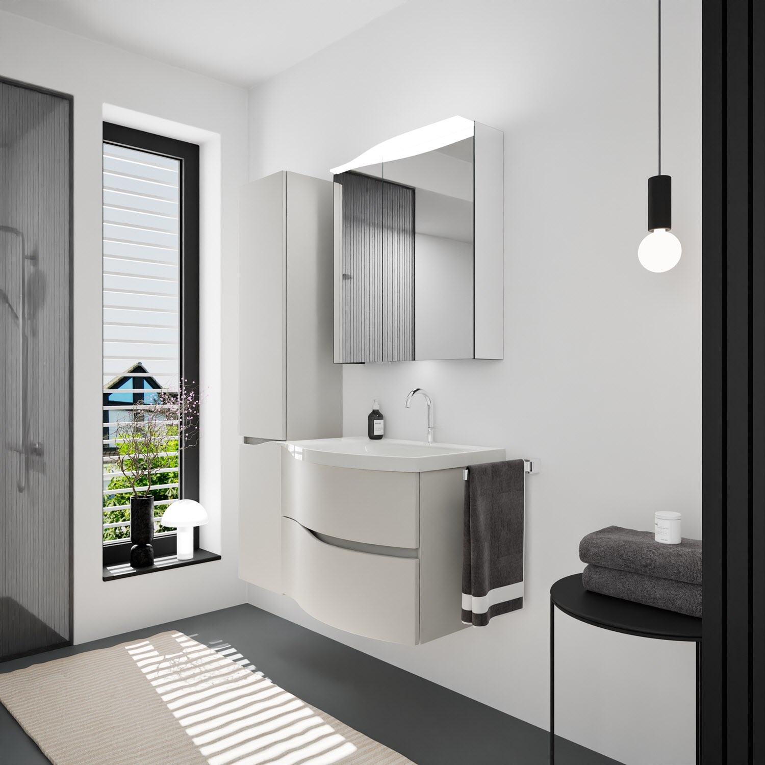 burgbad Sinea 3.0 Mineralguss-Waschtisch mit Unterschrank, 77 cm, mit Griffleiste G0167