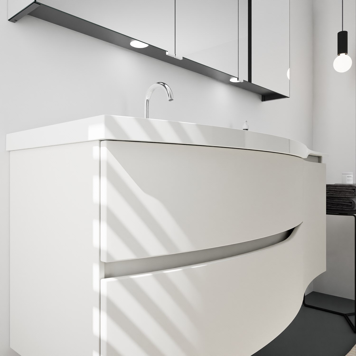 burgbad Sinea 3.0 Mineralguss-Waschtisch mit Unterschrank, 142 cm, mit Griffleiste G0167