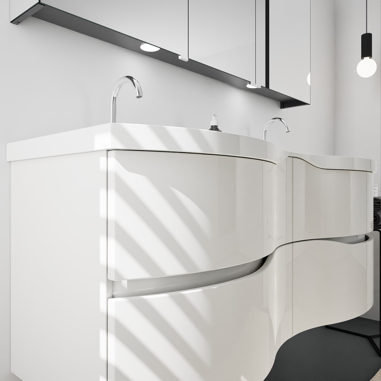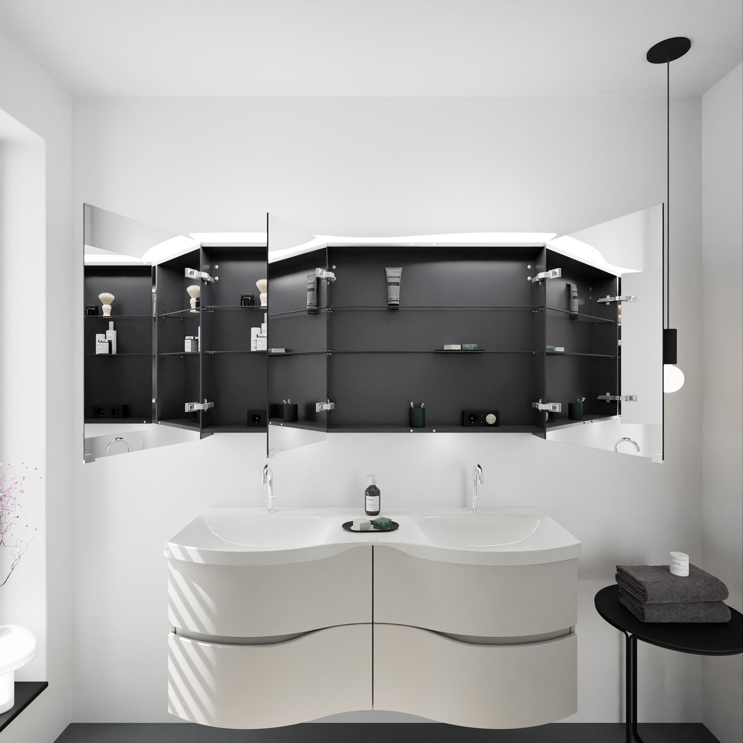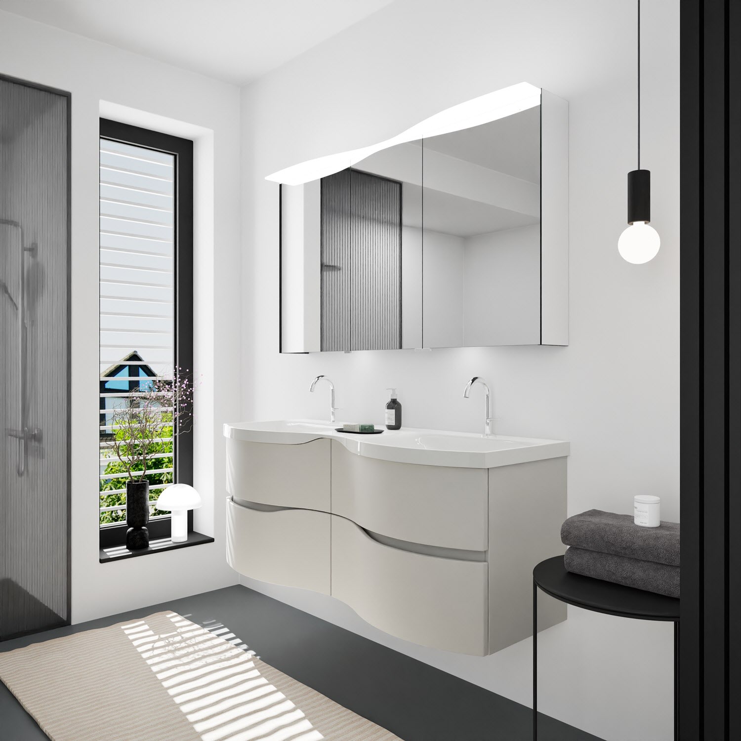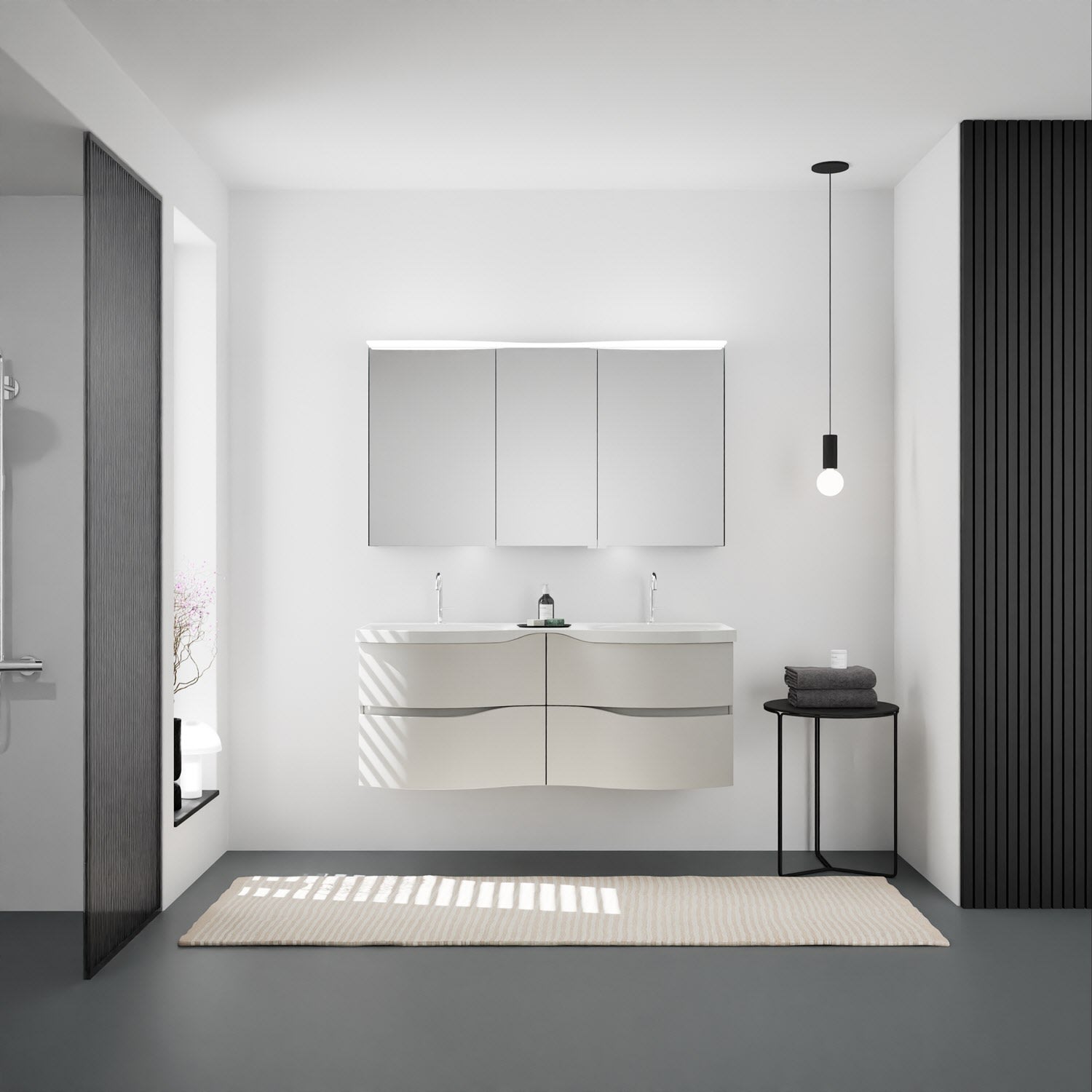 burgbad Sinea 3.0 Mineralguss-Doppelwaschtisch mit Unterschrank, 142 cm, mit Griffleiste G0167