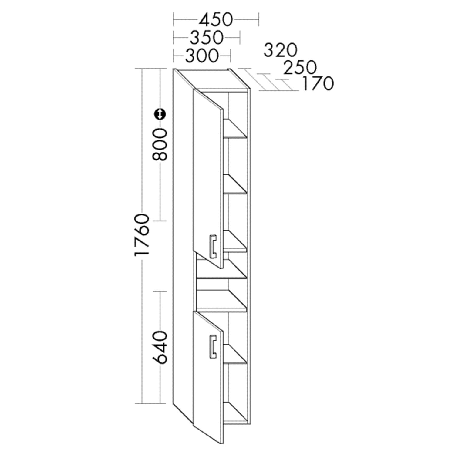 burgbad SYS30 Hochschrank 17 x 35 x 176 cm mit 2 Türen, Anschlag rechts