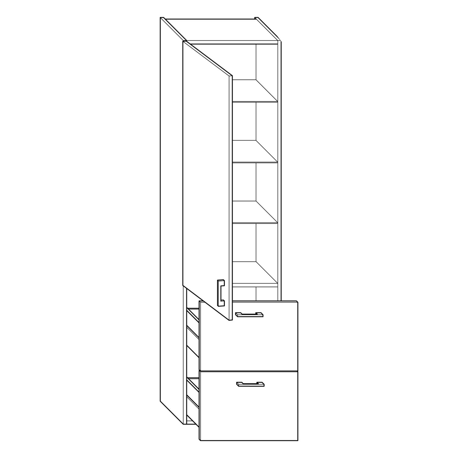 burgbad SYS30 Hochschrank 45 x 32 x 176 cm mit 1 Tür und 2 Auszügen, Türanschlag links