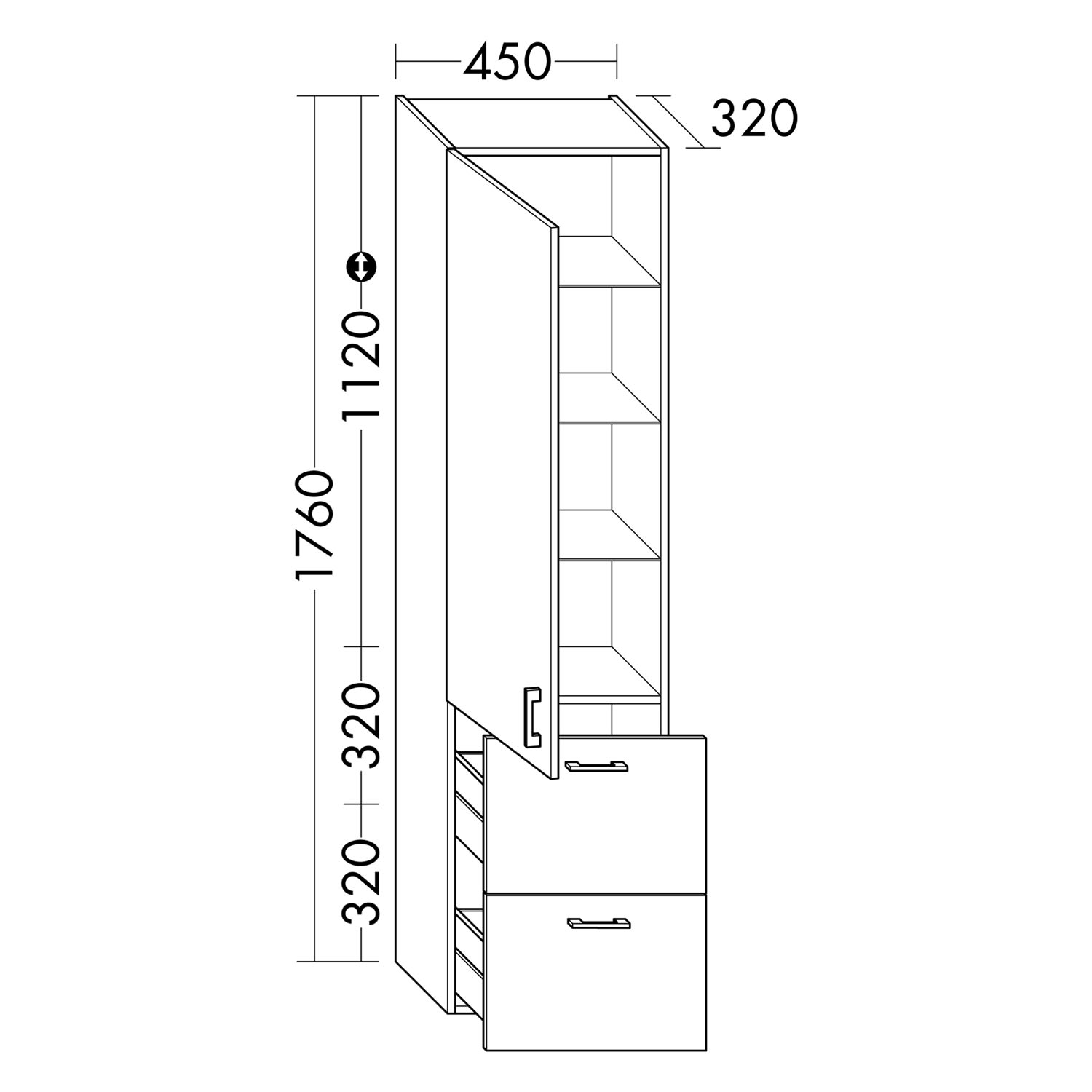 - Hochschrank mit 1 Tür, Anschlag links