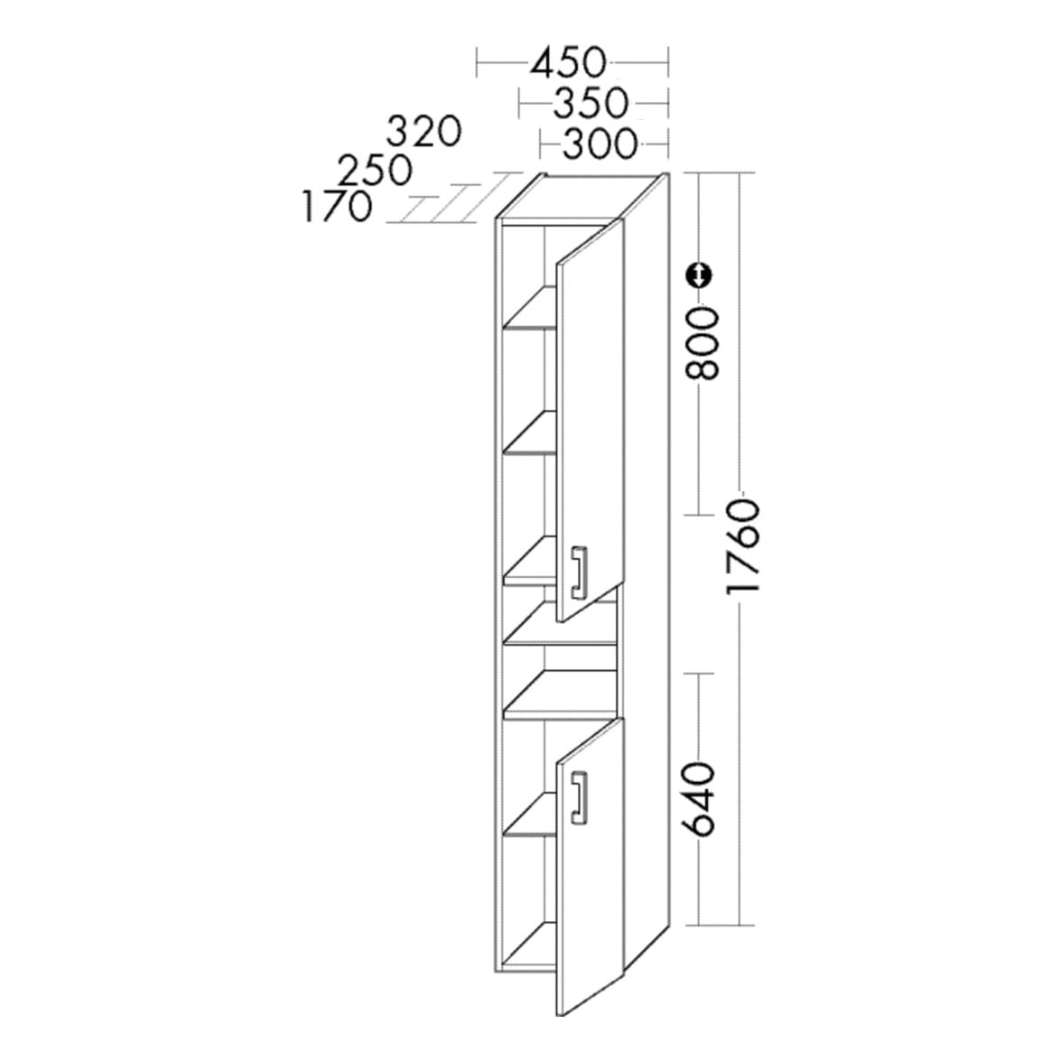 burgbad SYS30 Hochschrank mit 2 Türen 30 x 25 x 176 cm, Anschlag rechts