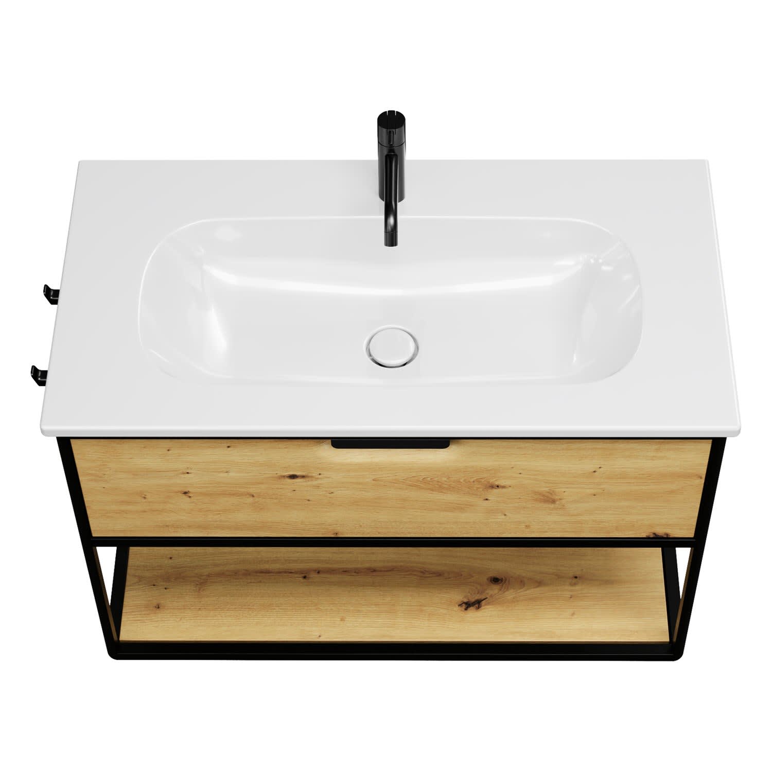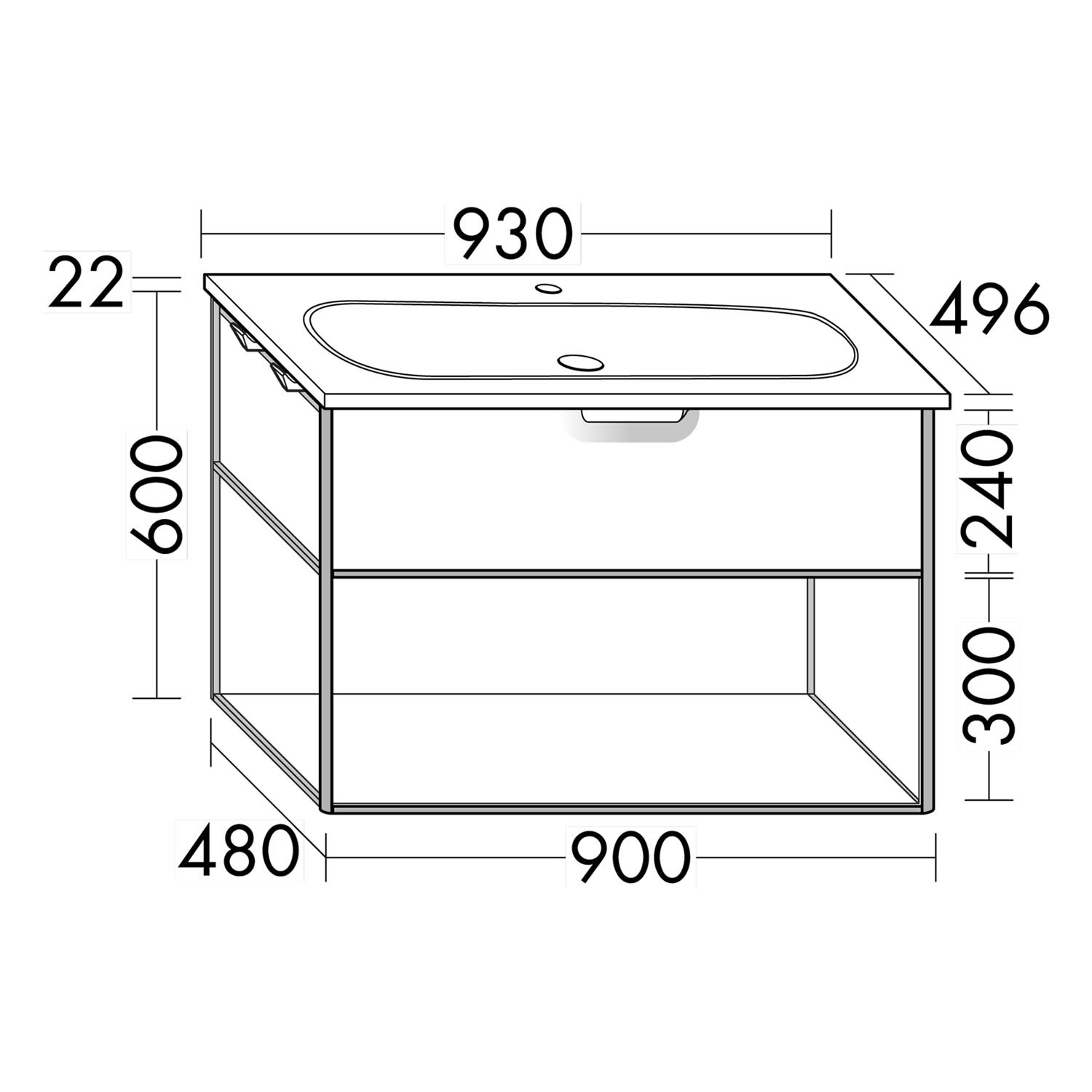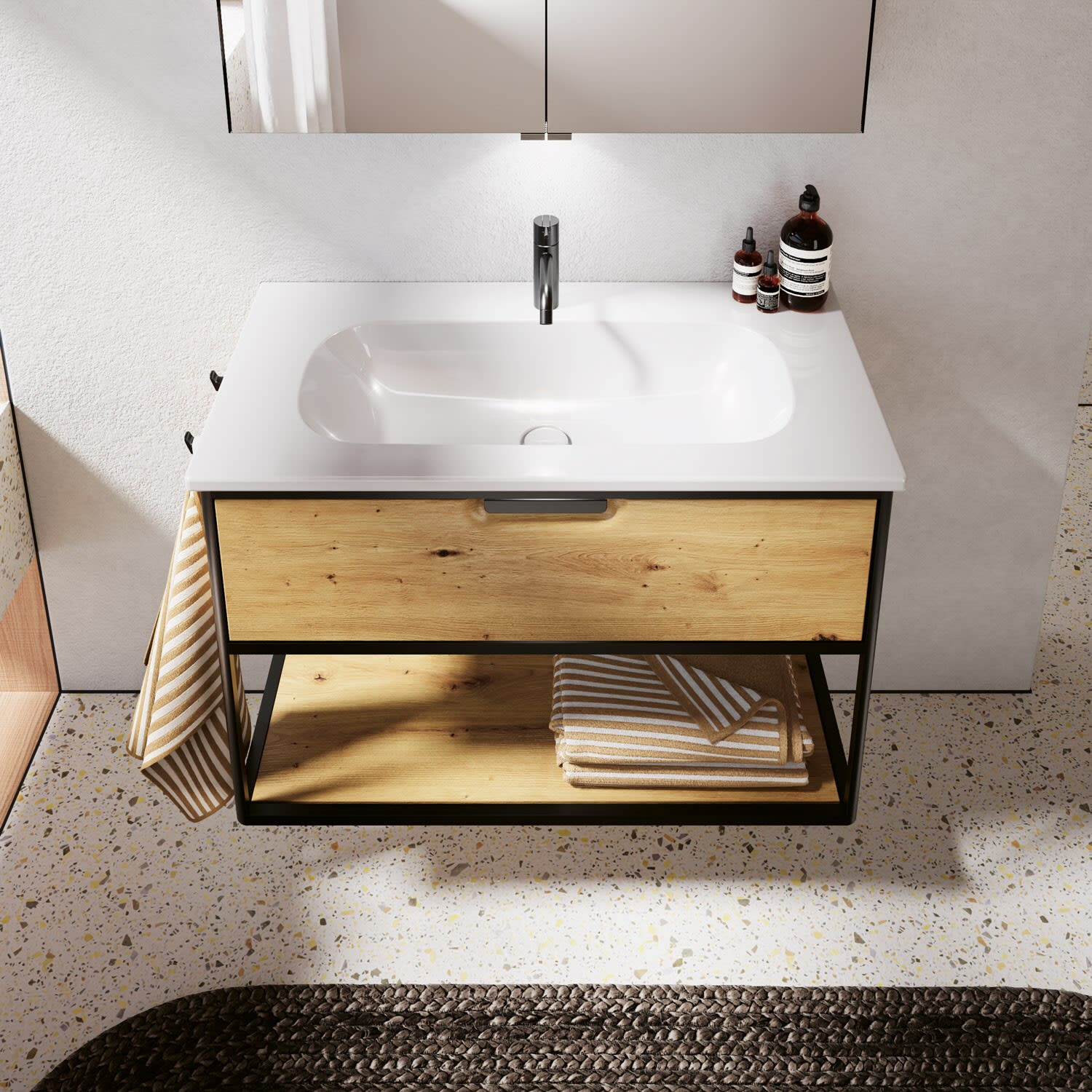 burgbad Vry Keramik-Waschtisch mit Waschtischunterschrank 93 cm mit 1 Schublade