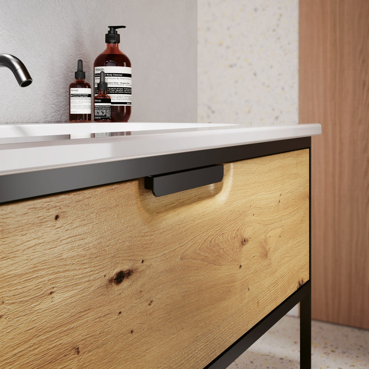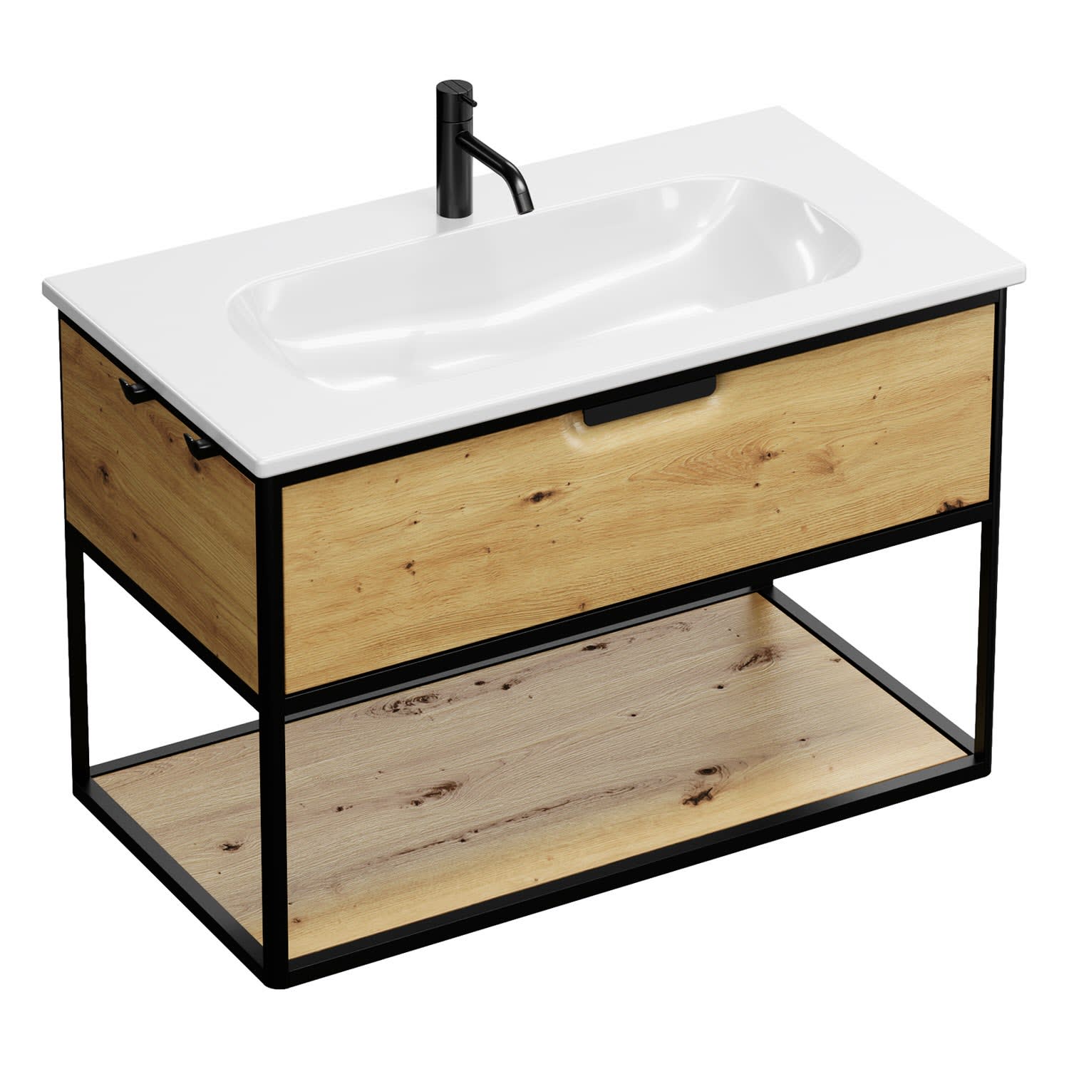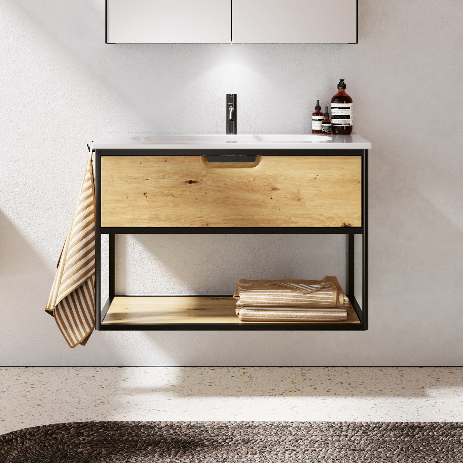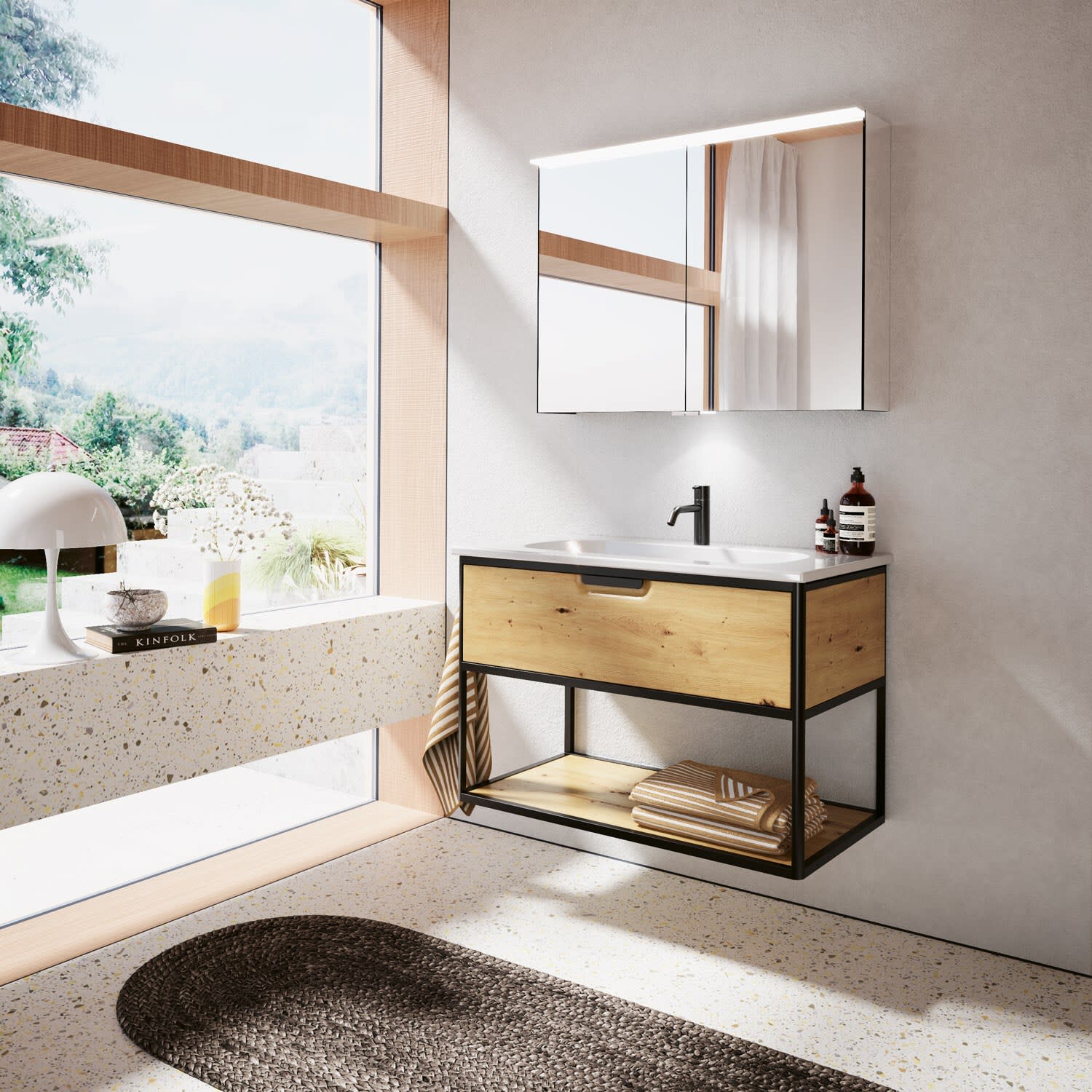 burgbad Vry Keramik-Waschtisch mit Waschtischunterschrank 93 cm mit 1 Schublade