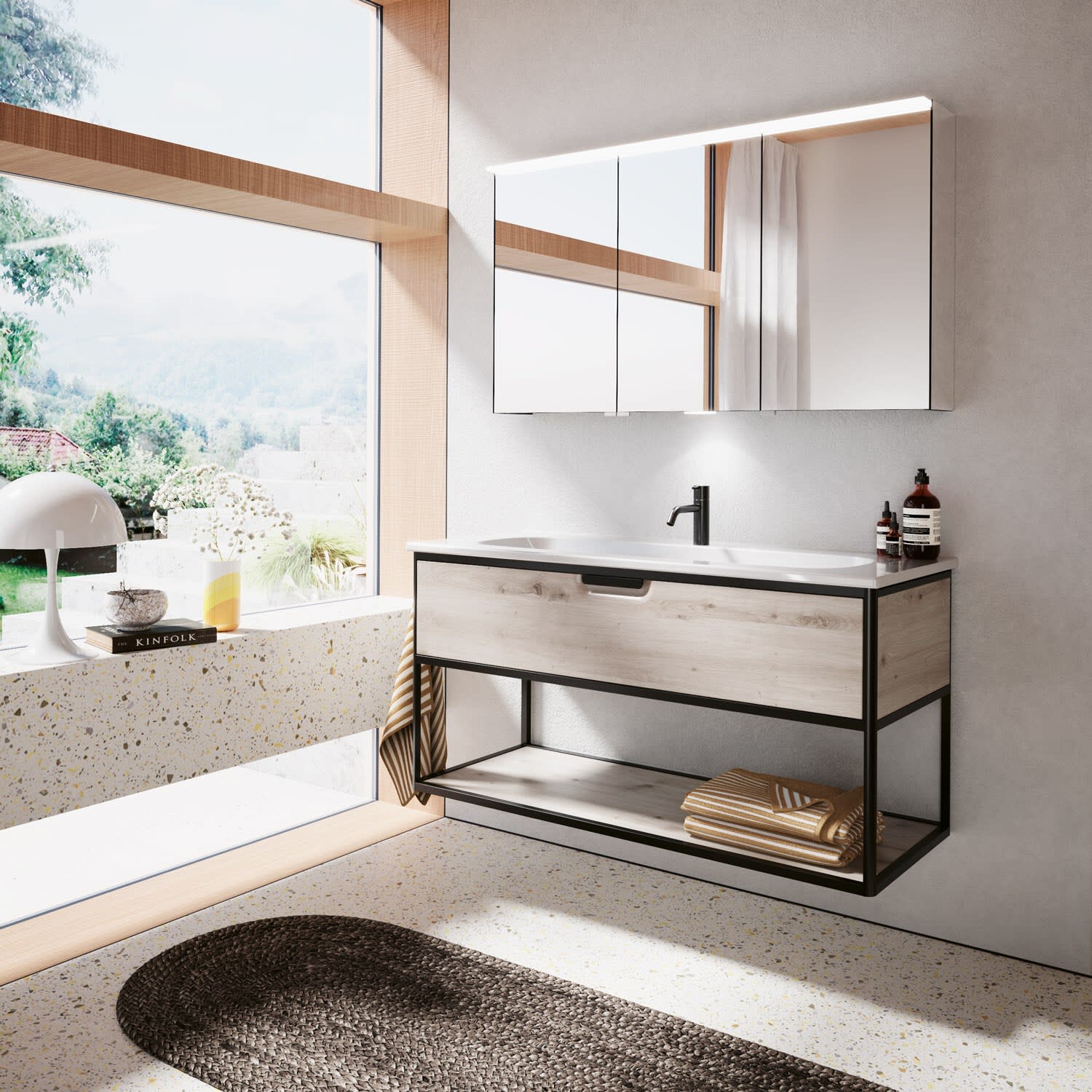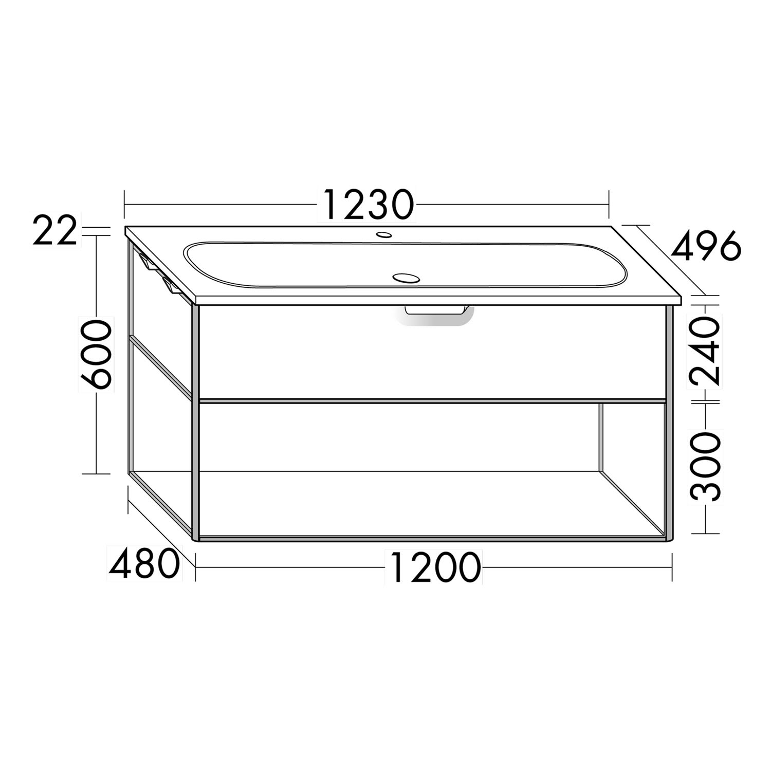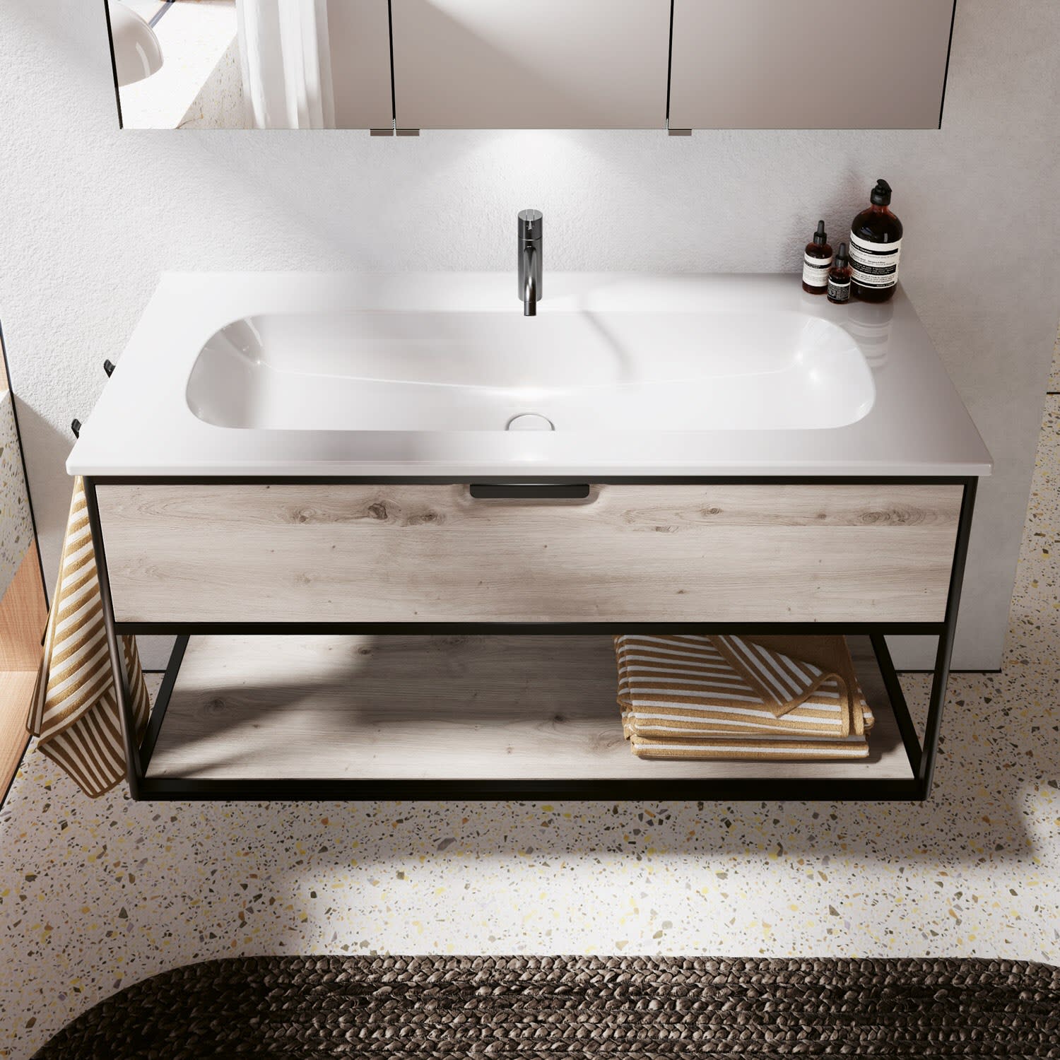 burgbad Vry Keramik-Waschtisch mit Waschtischunterschrank 123 cm mit 1 Schublade