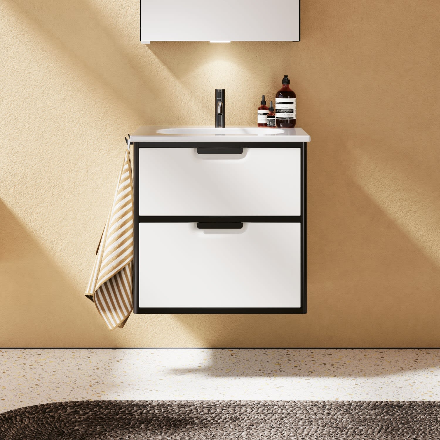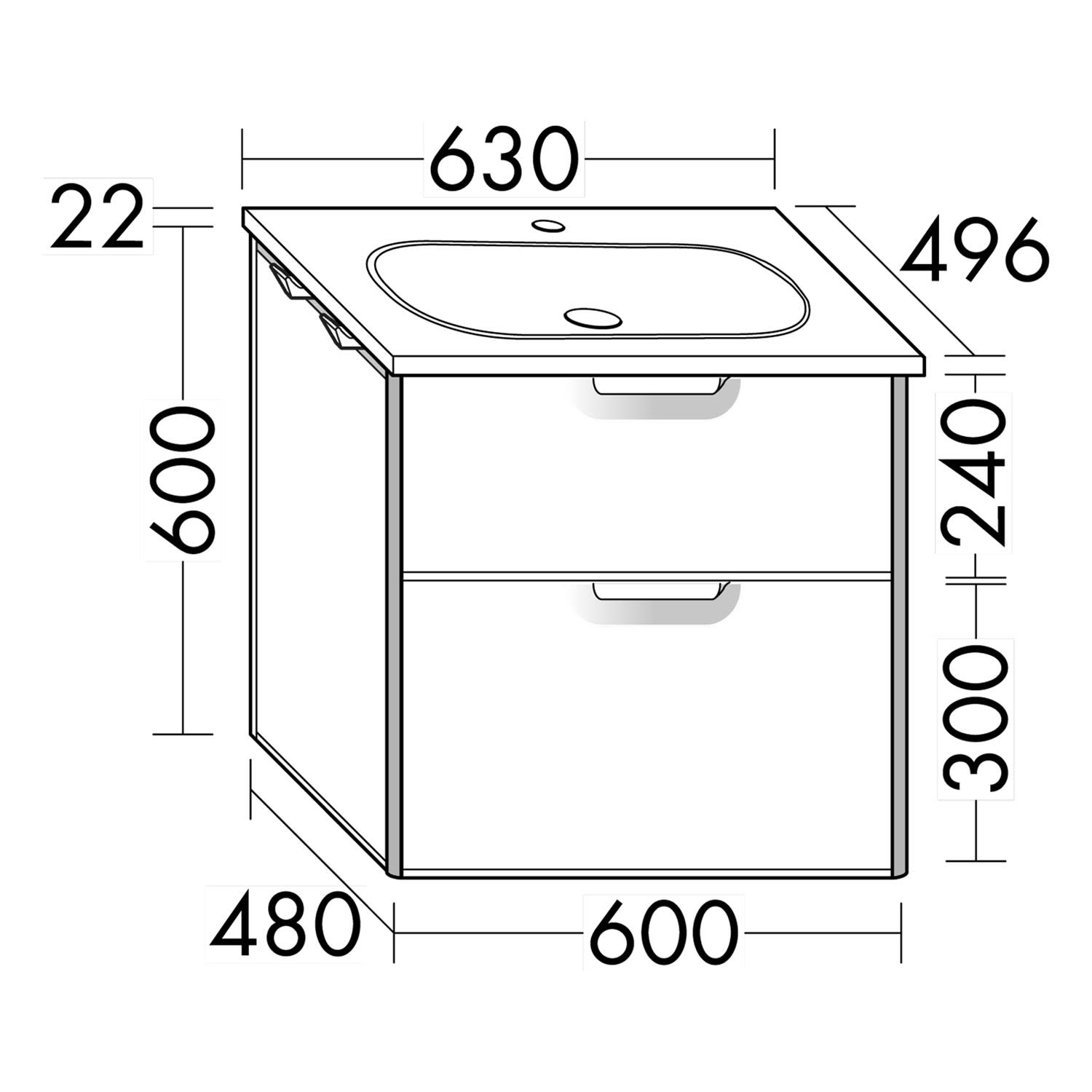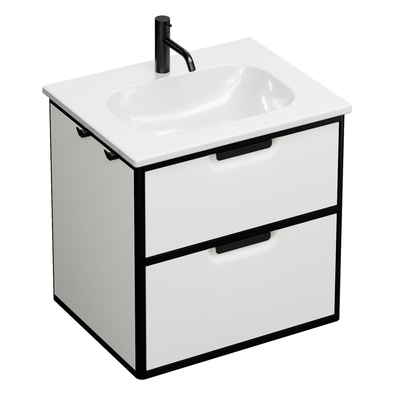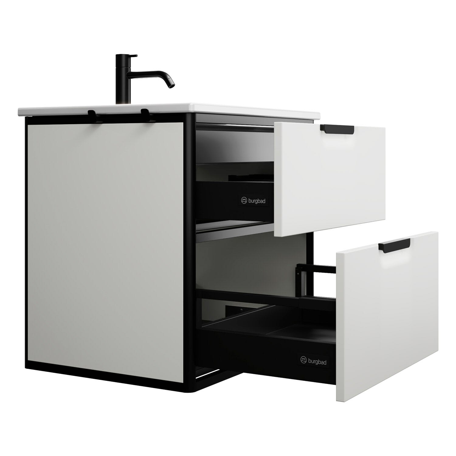 burgbad Vry Keramik-Waschtisch mit Waschtischunterschrank 63 cm mit 1 Schublade und 1 Auszug
