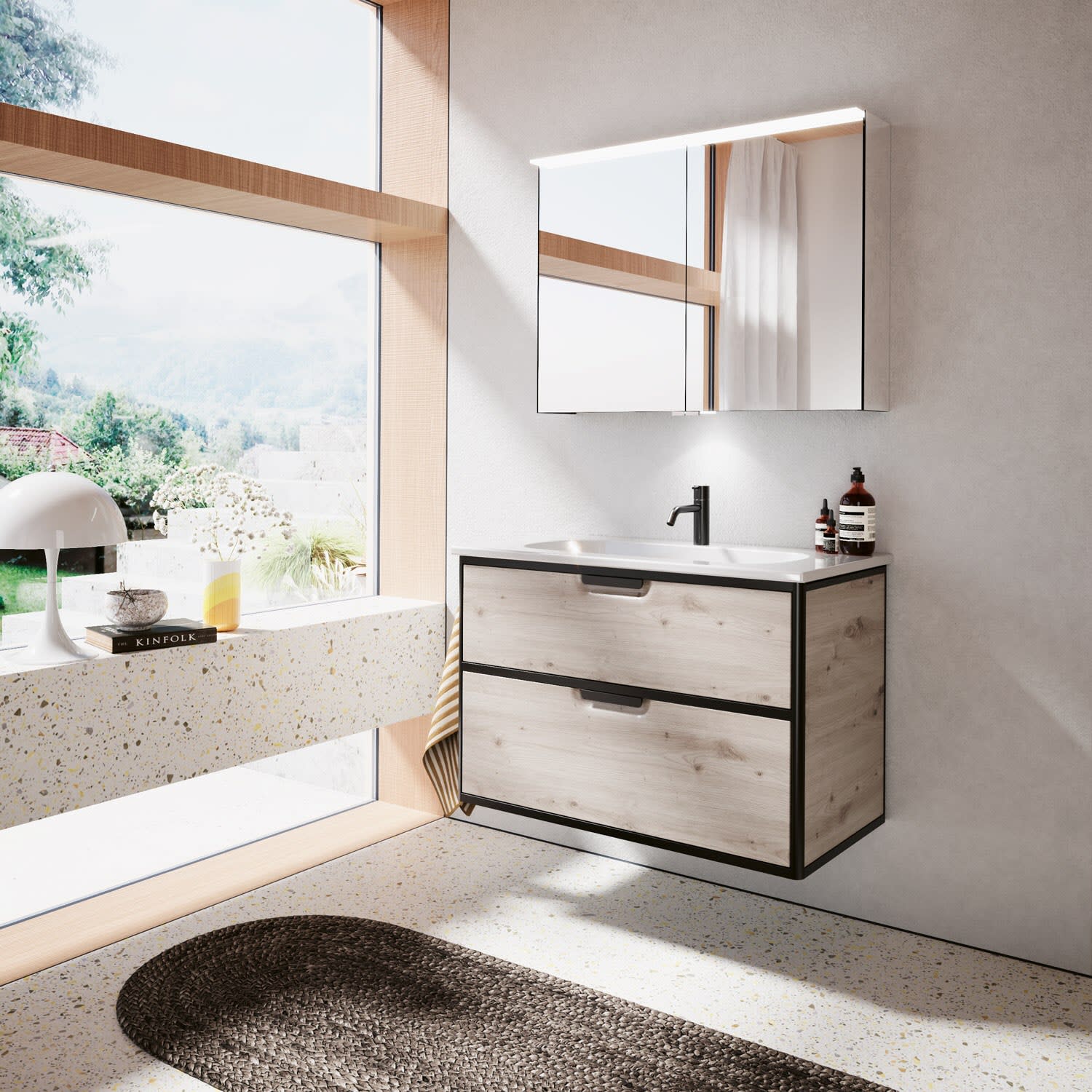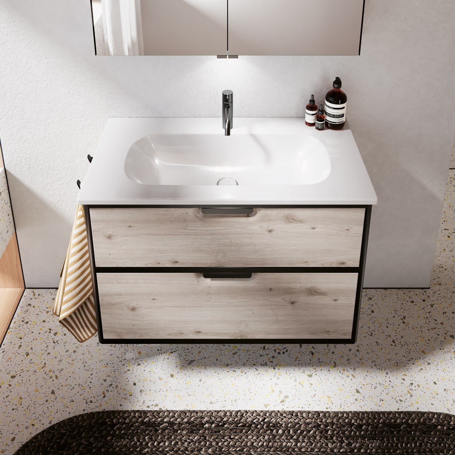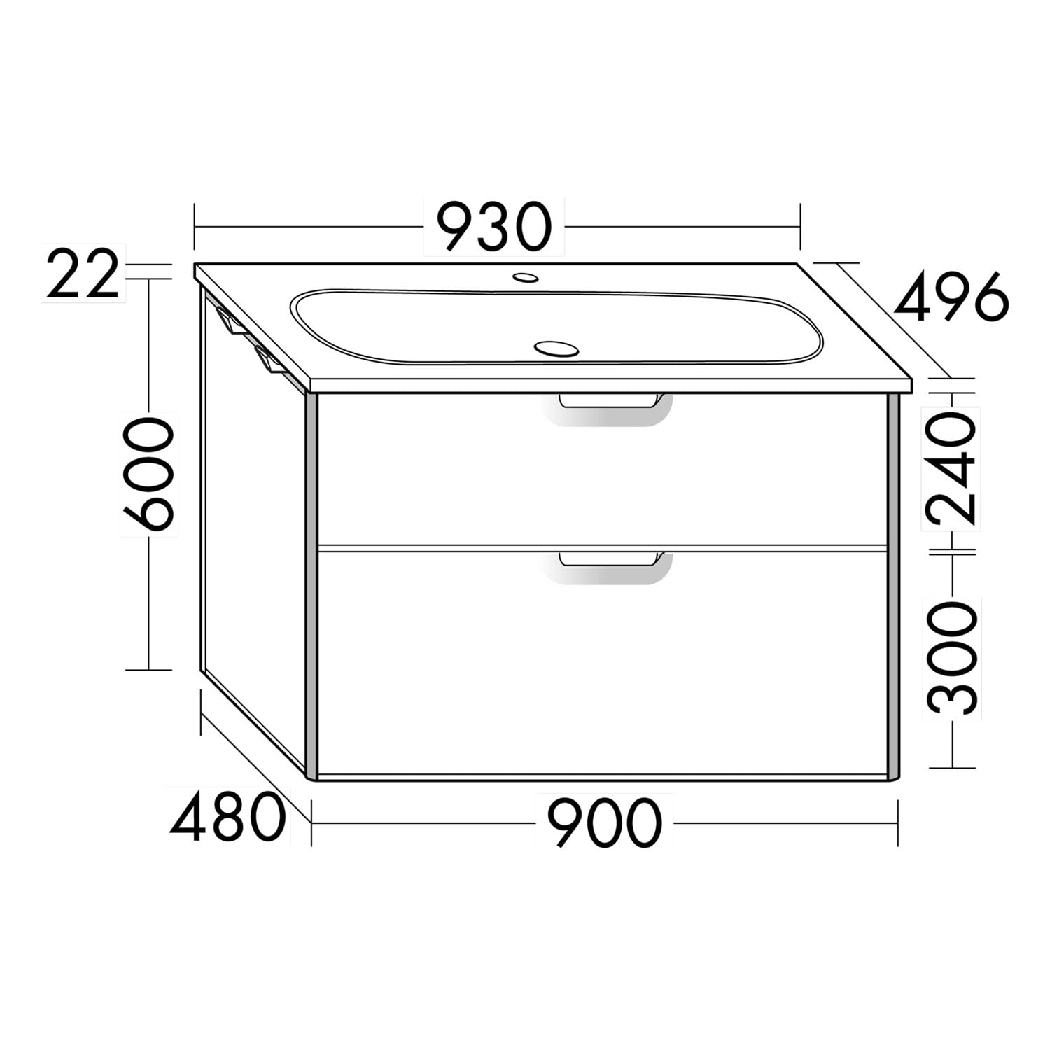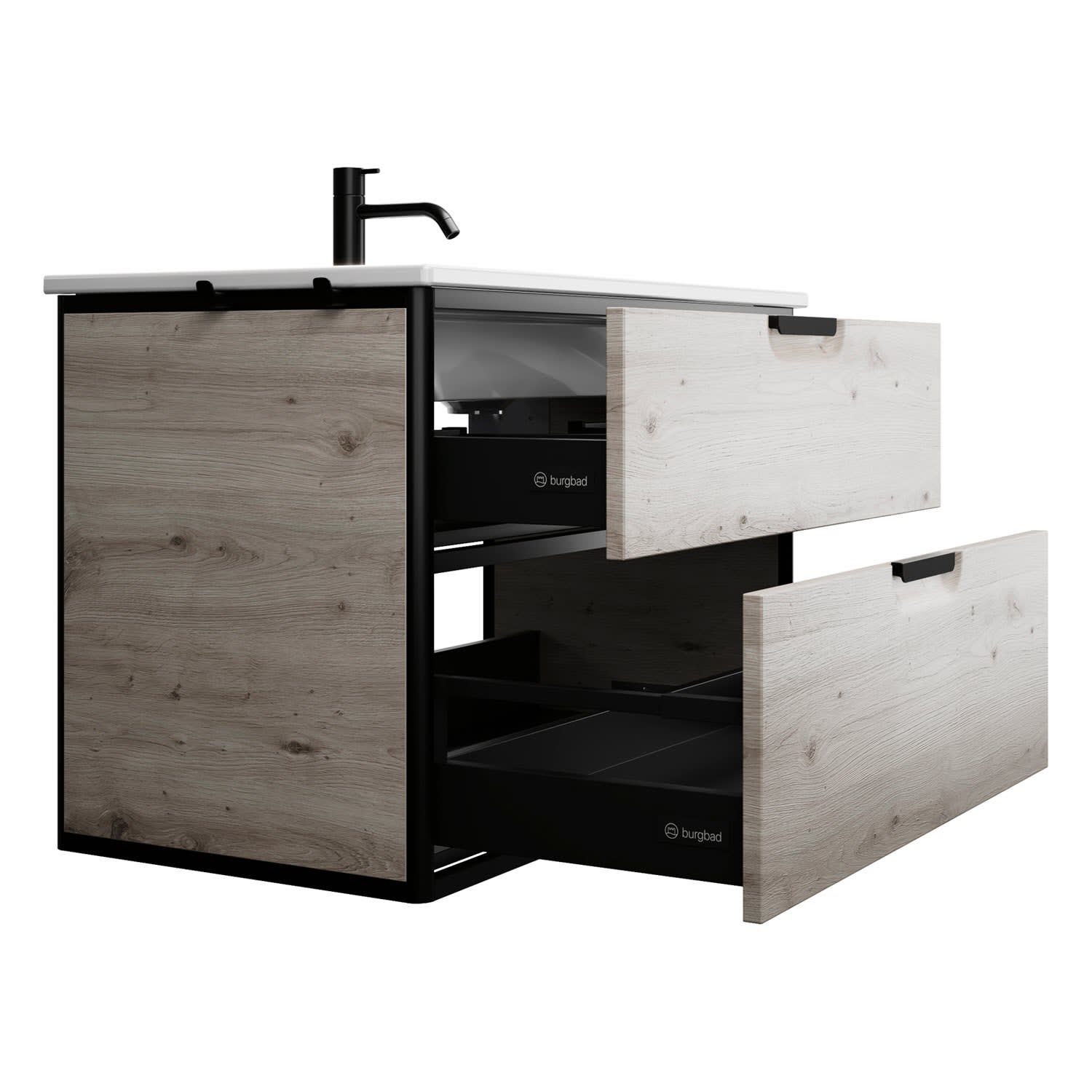 burgbad Vry Keramik-Waschtisch mit Waschtischunterschrank 93 cm mit 1 Schublade und 1 Auszug