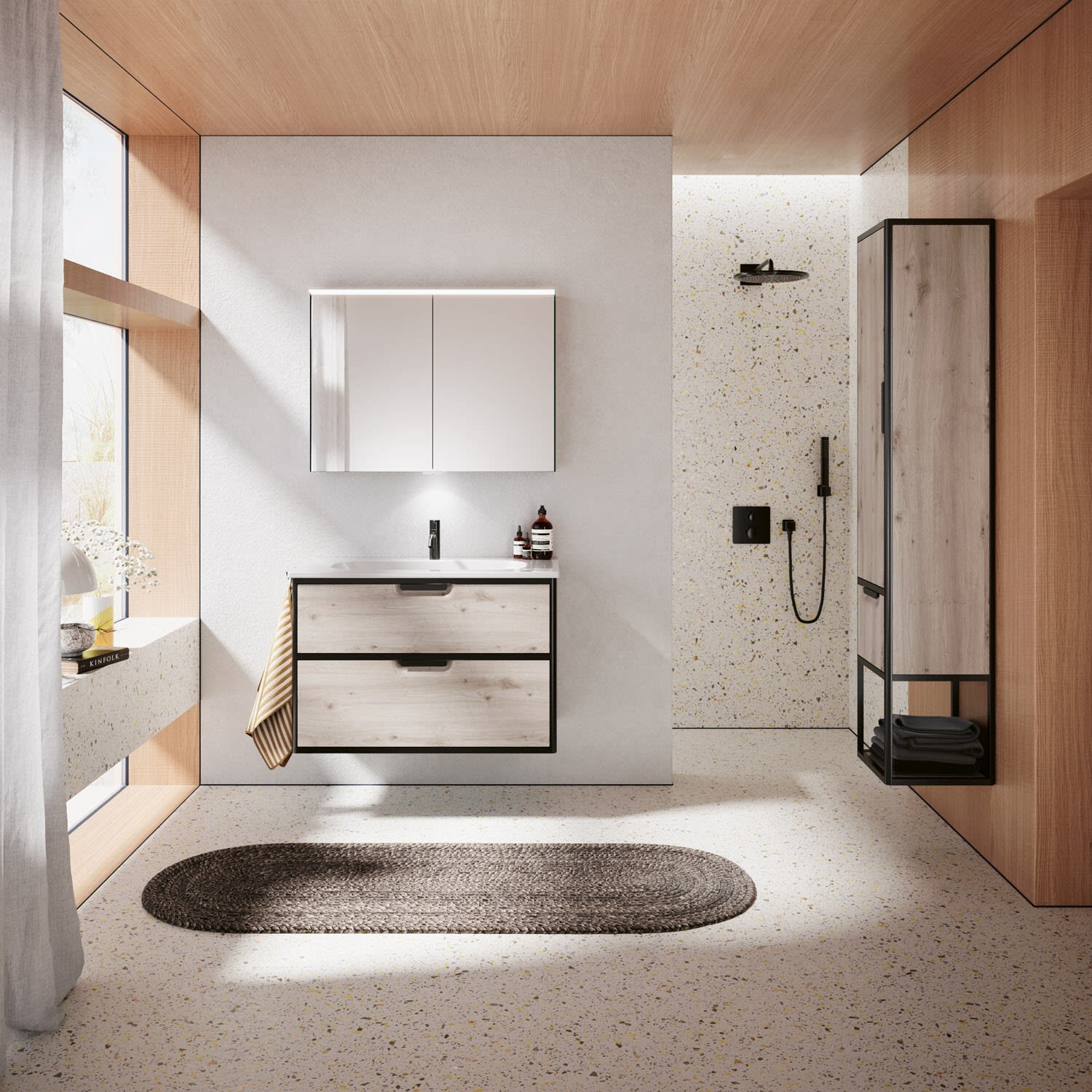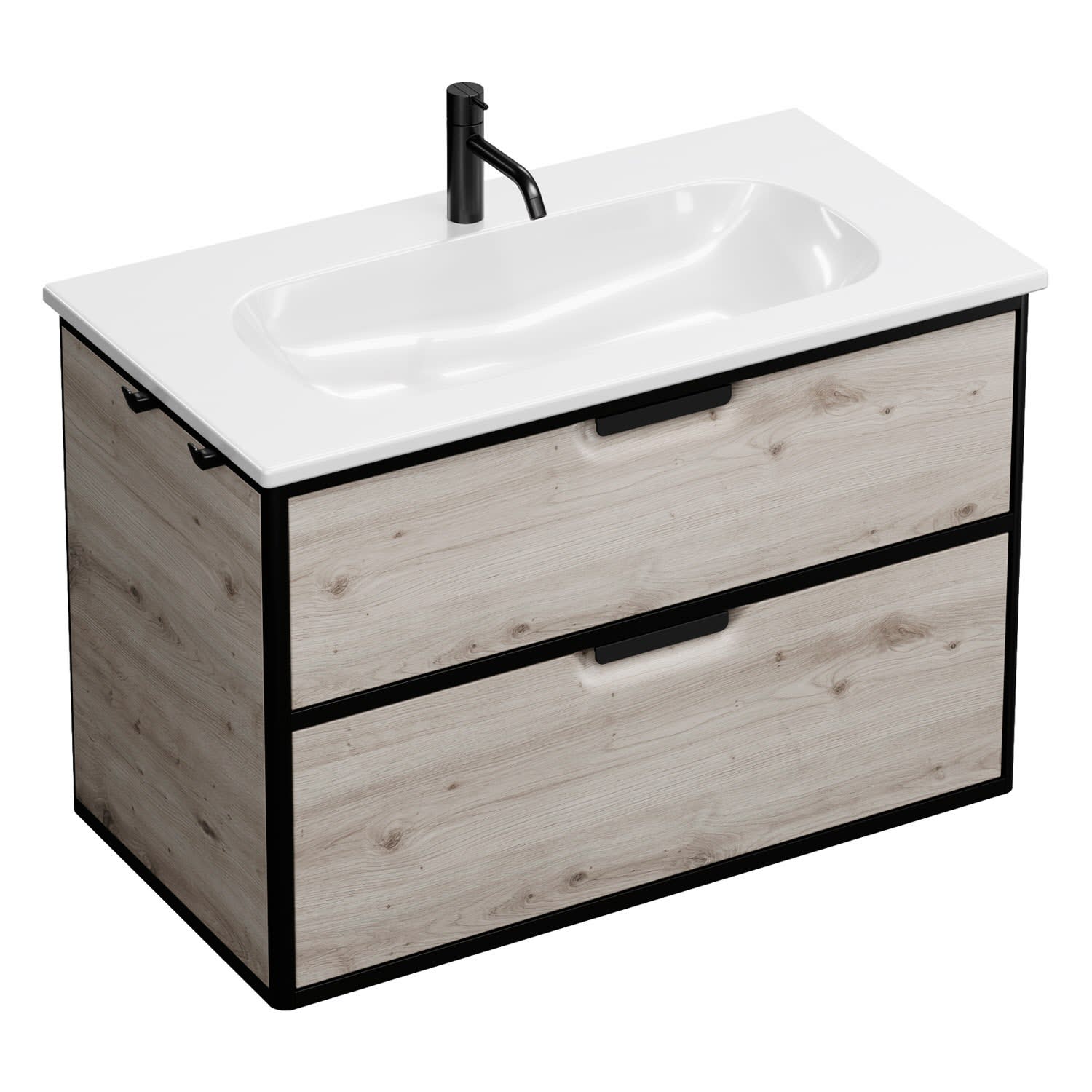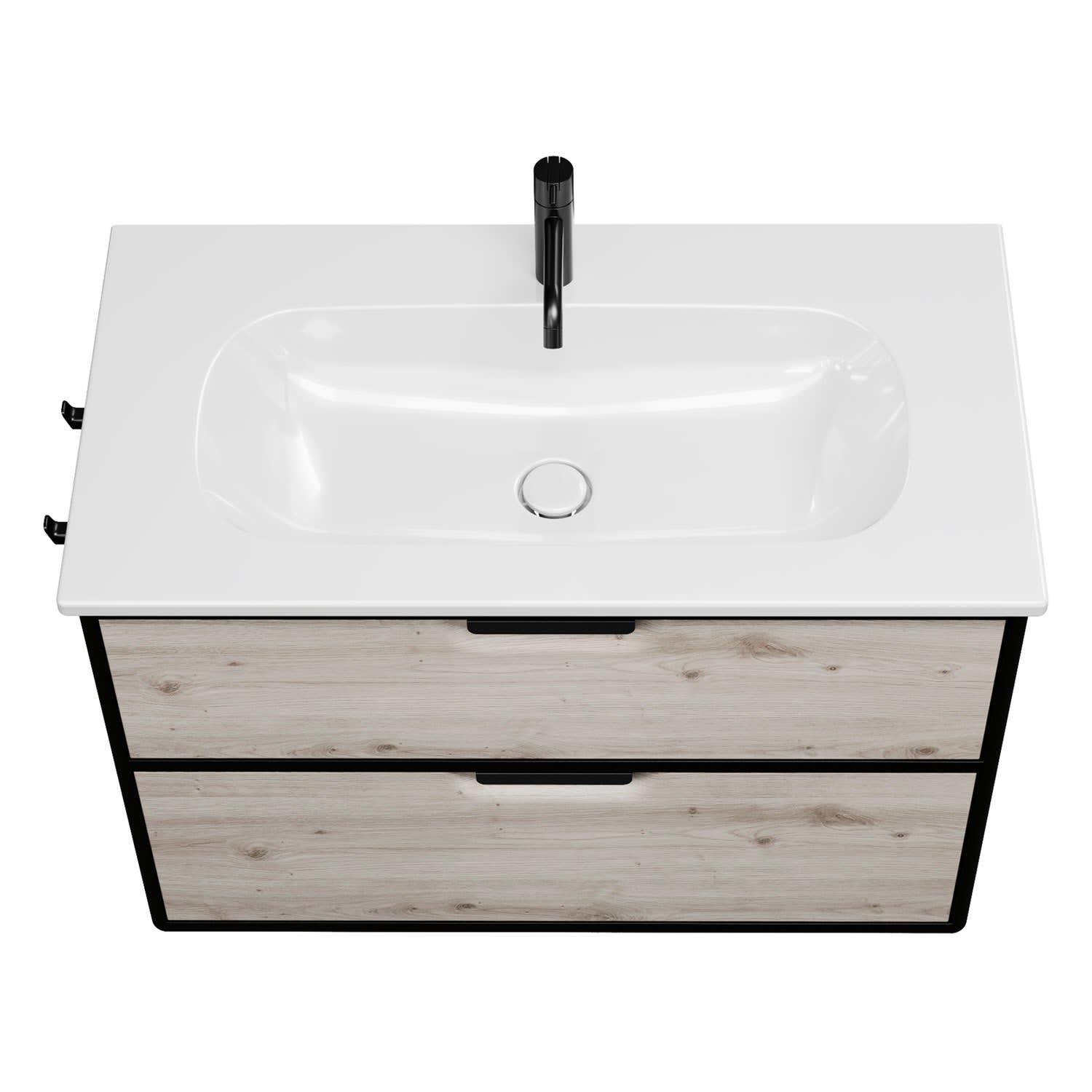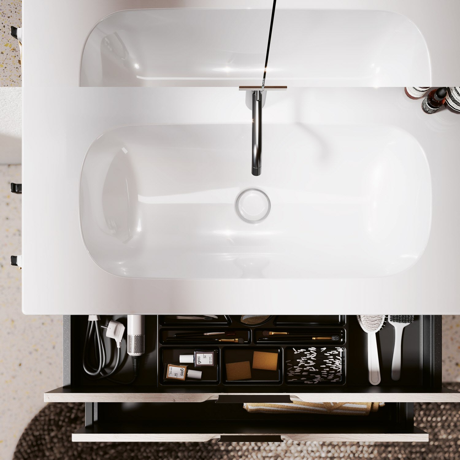burgbad Vry Keramik-Waschtisch mit Waschtischunterschrank 93 cm mit 1 Schublade und 1 Auszug