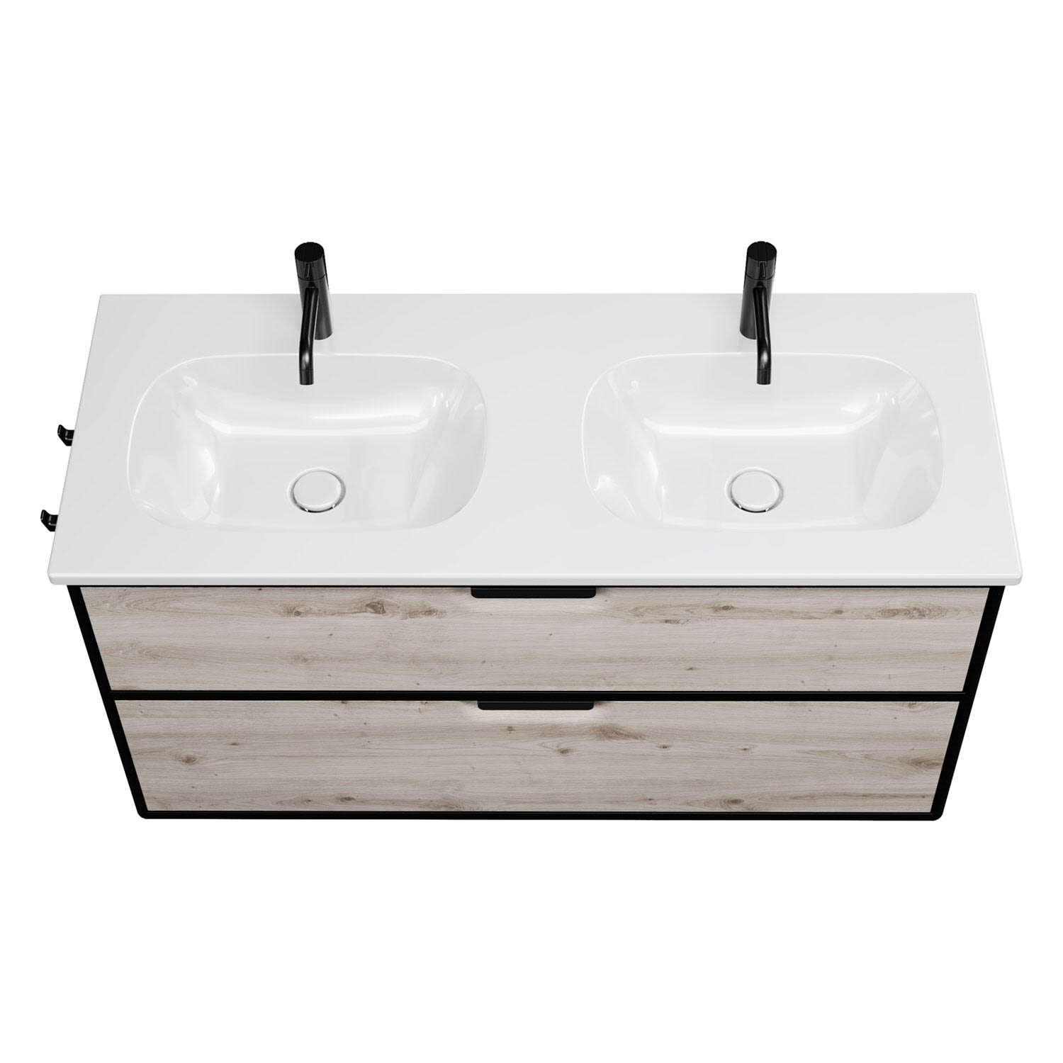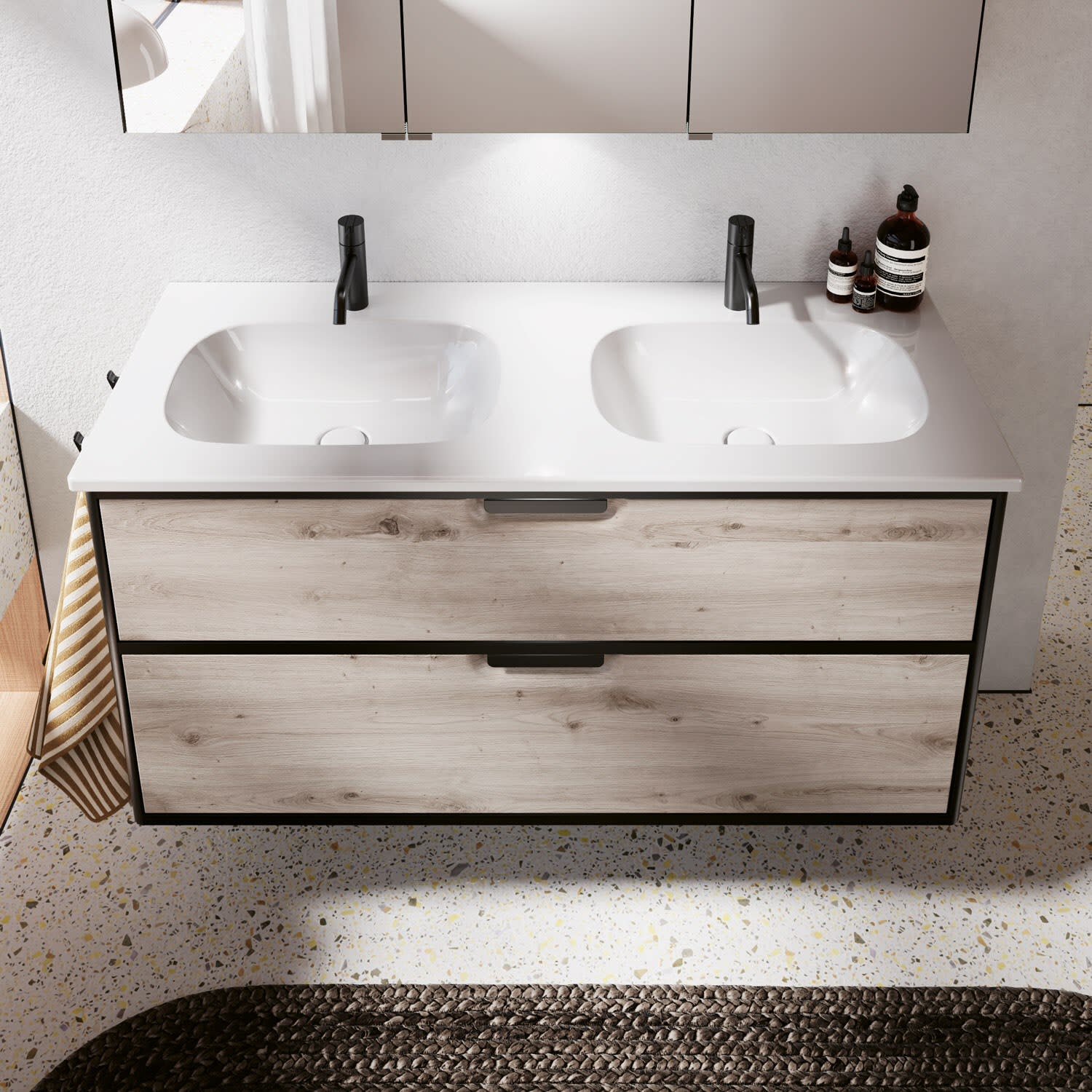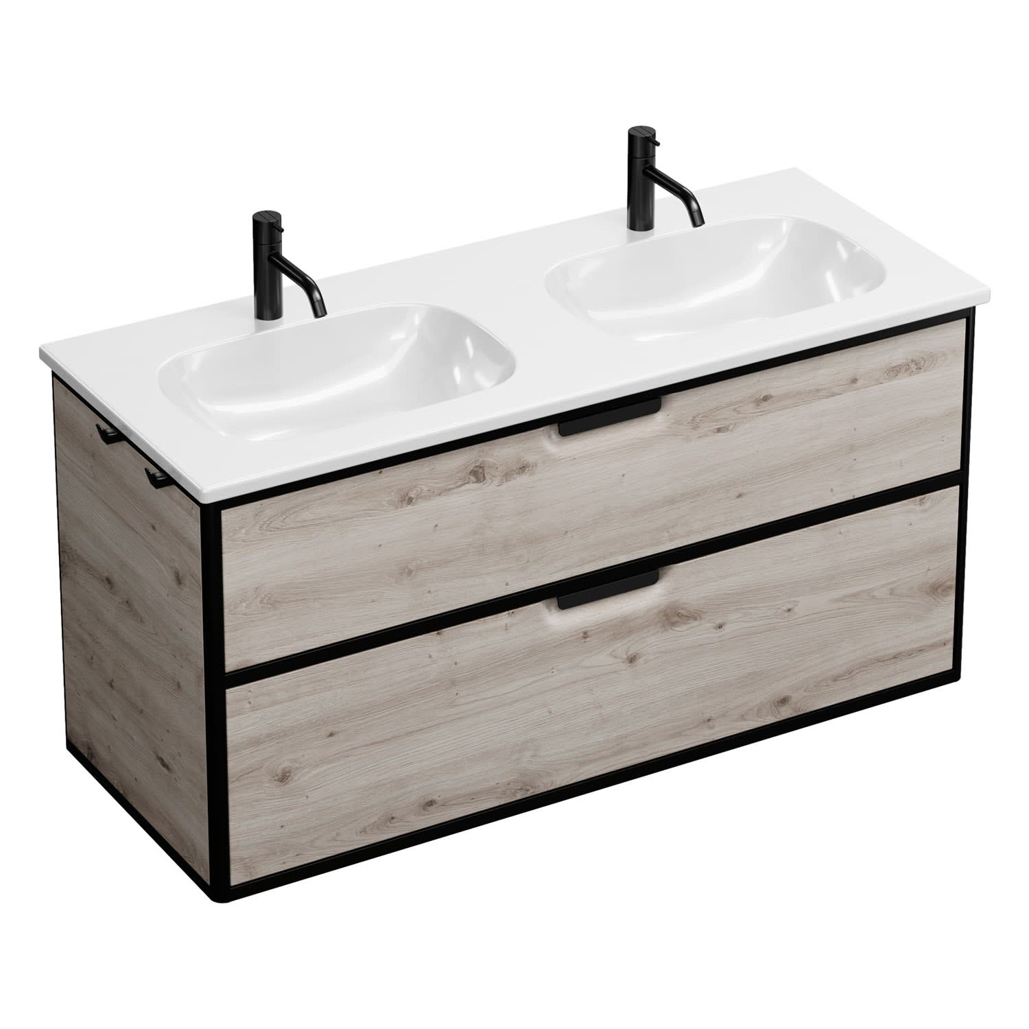 burgbad Vry Keramik-Doppelwaschtisch mit Waschtischunterschrank 123 cm mit 1 Schublade und 1 Auszug
