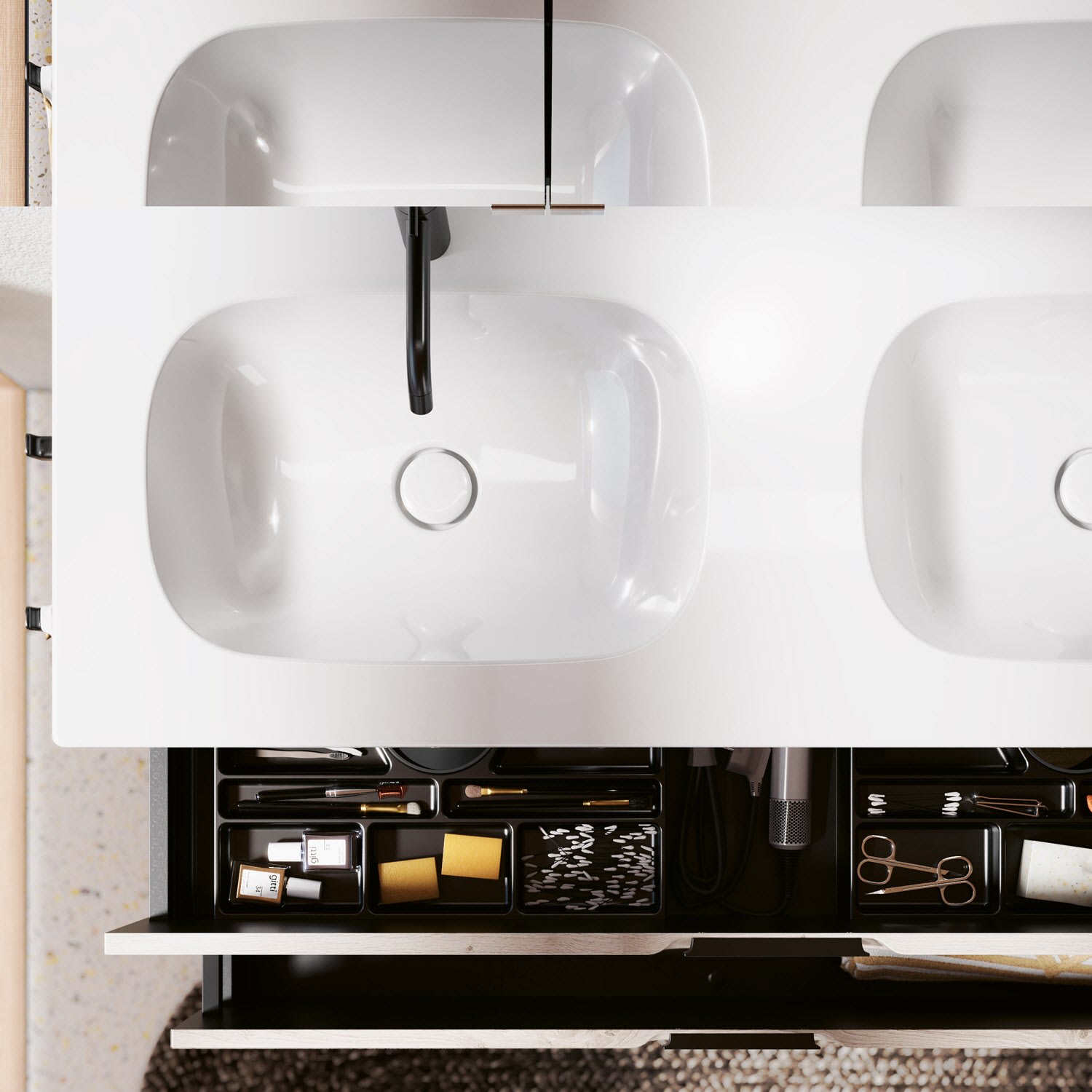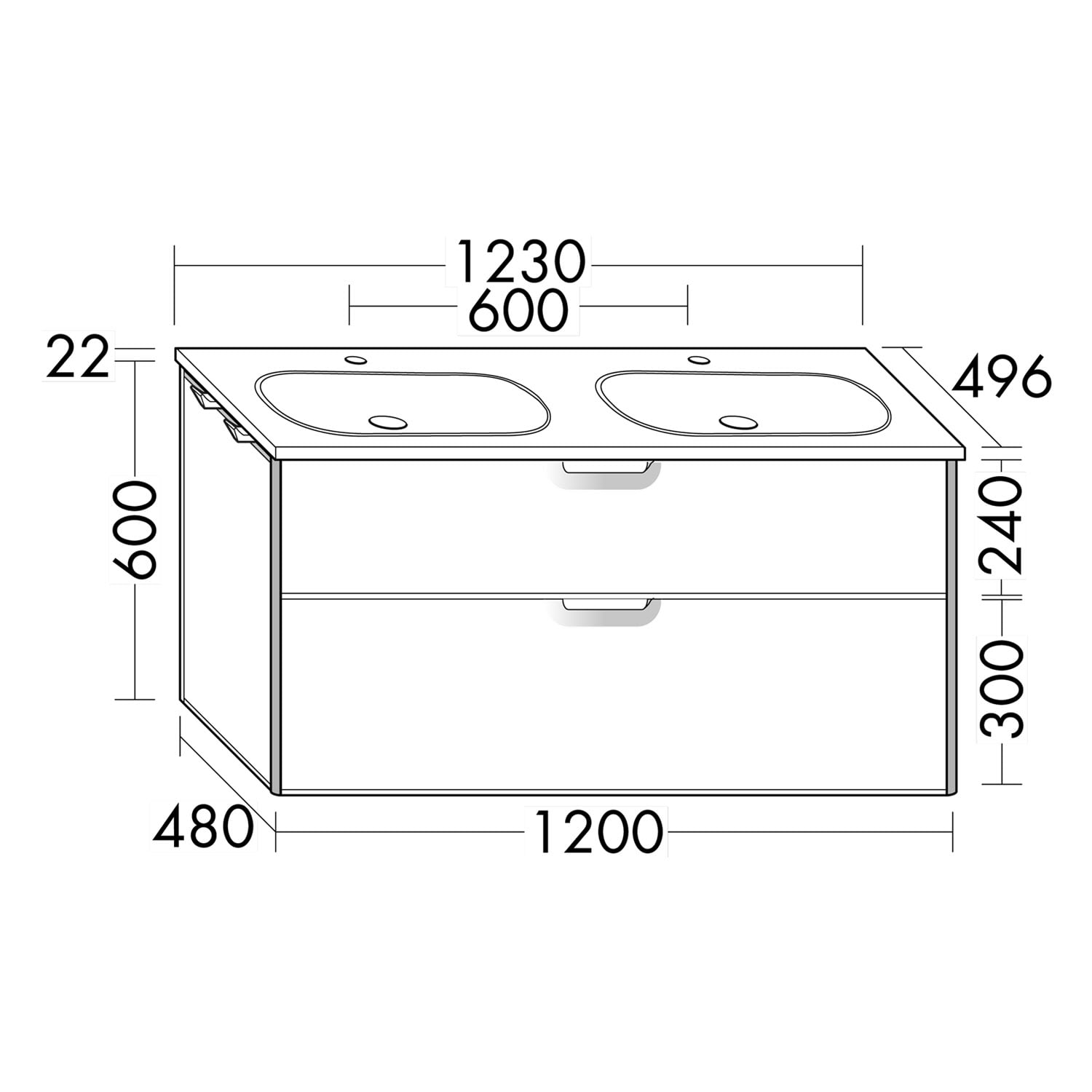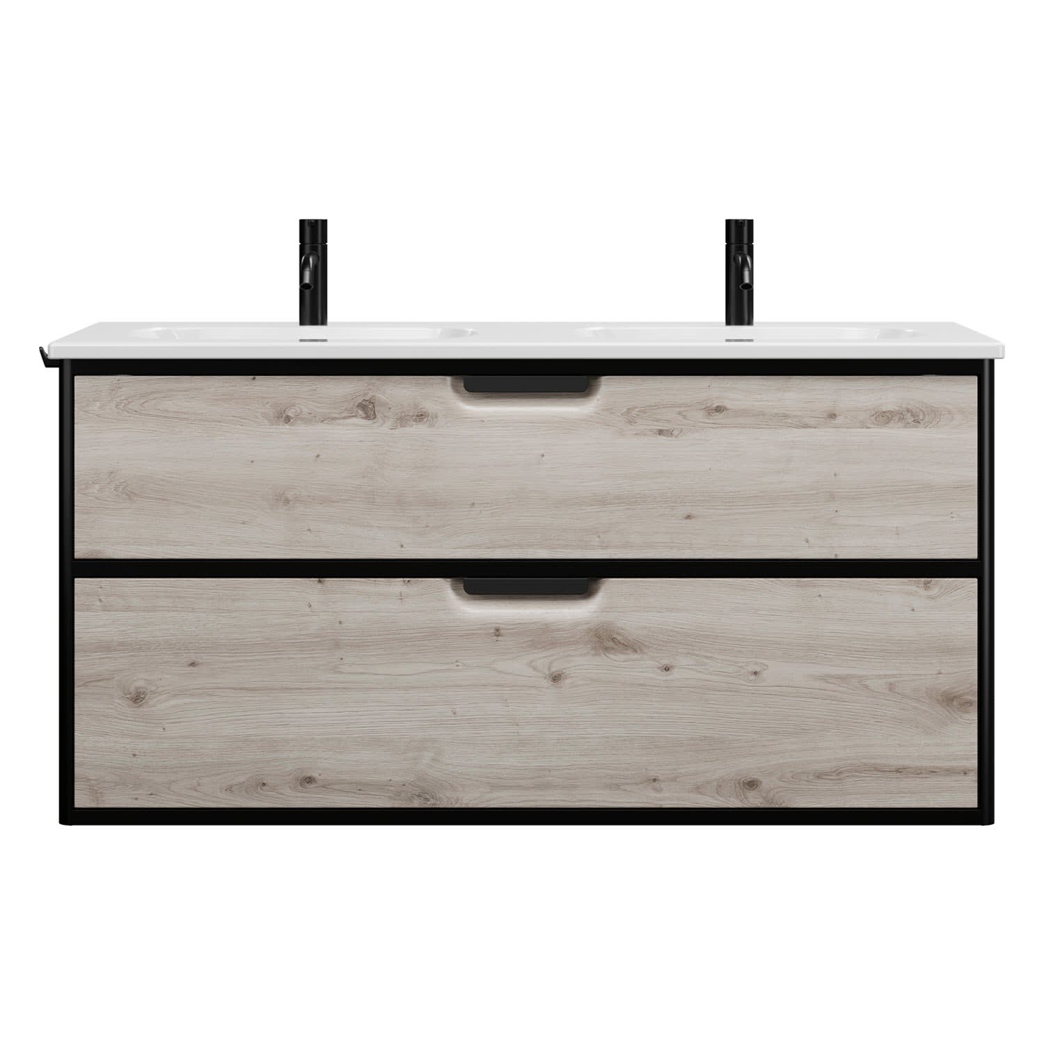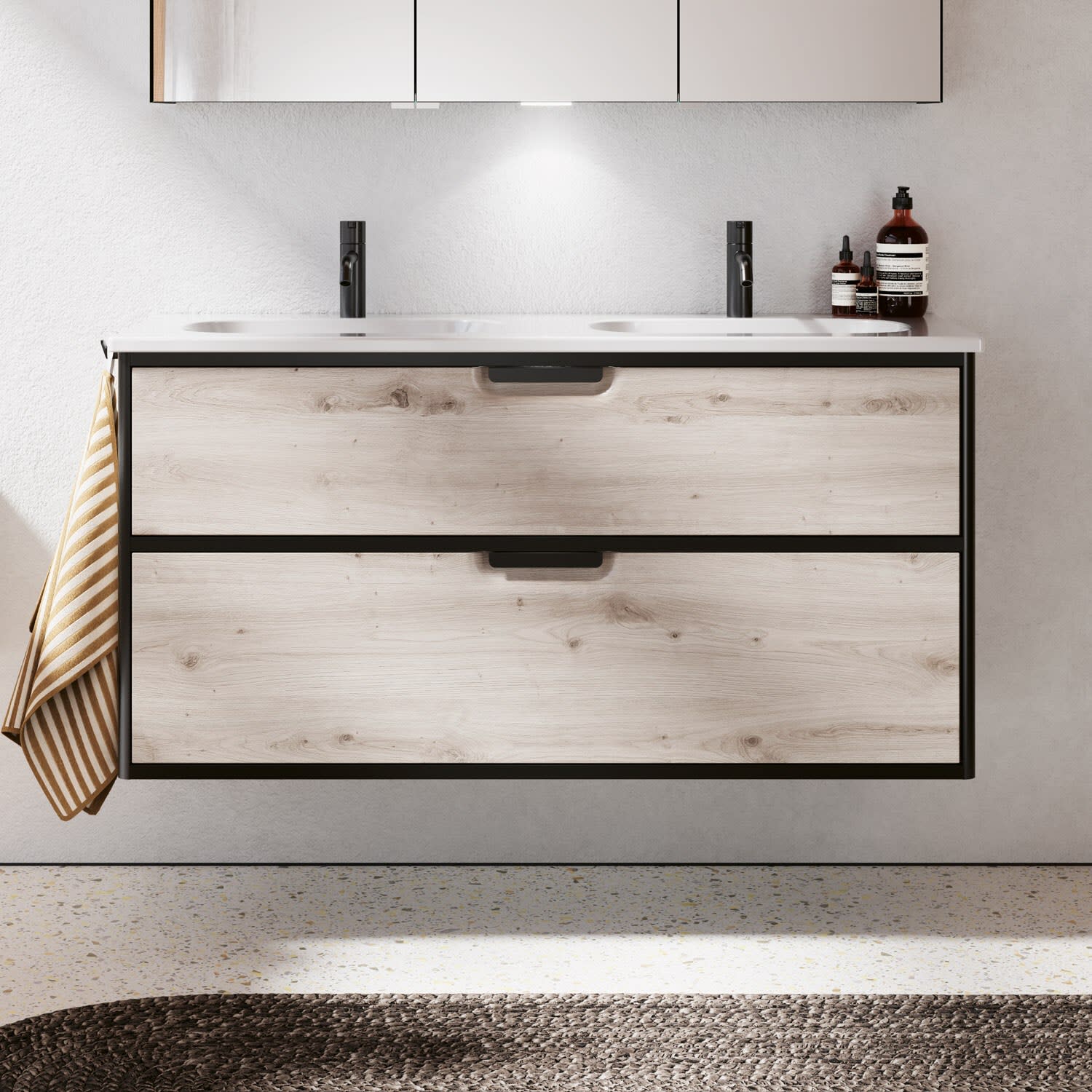 burgbad Vry Keramik-Doppelwaschtisch mit Waschtischunterschrank 123 cm mit 1 Schublade und 1 Auszug