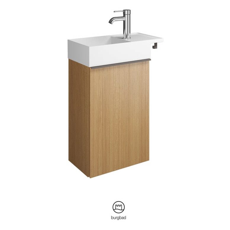 burgbad Yumo Mineralguss-Waschtisch inkl. Waschtischunterschrank 50,5 cm, Version Rechts