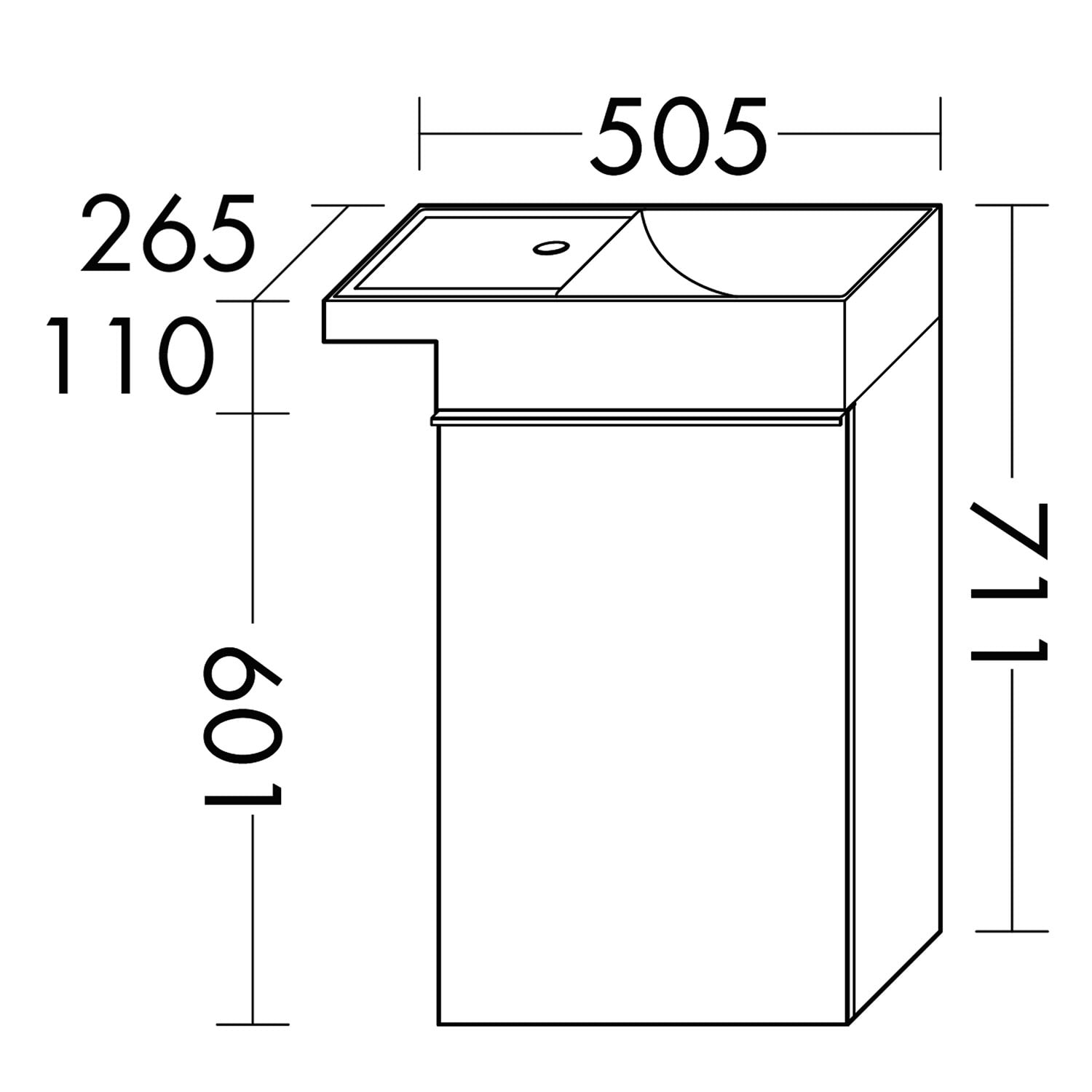 - Muldentiefe: 9,5 cm