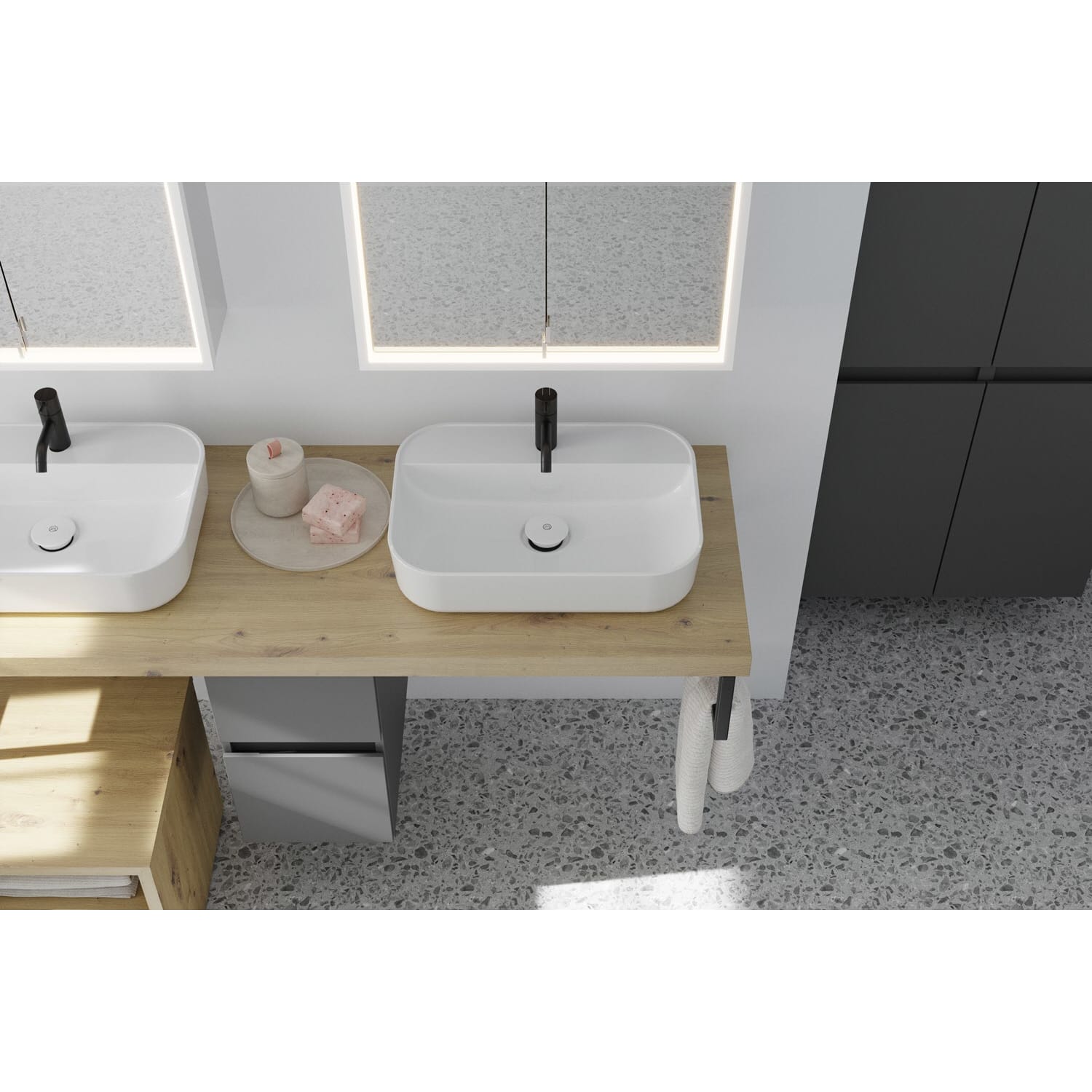 - passend für burgbad Mineralgusswaschtische, ausgestattet mit burgbad cleanFlow Permanentablauf Eqio und MWIM056