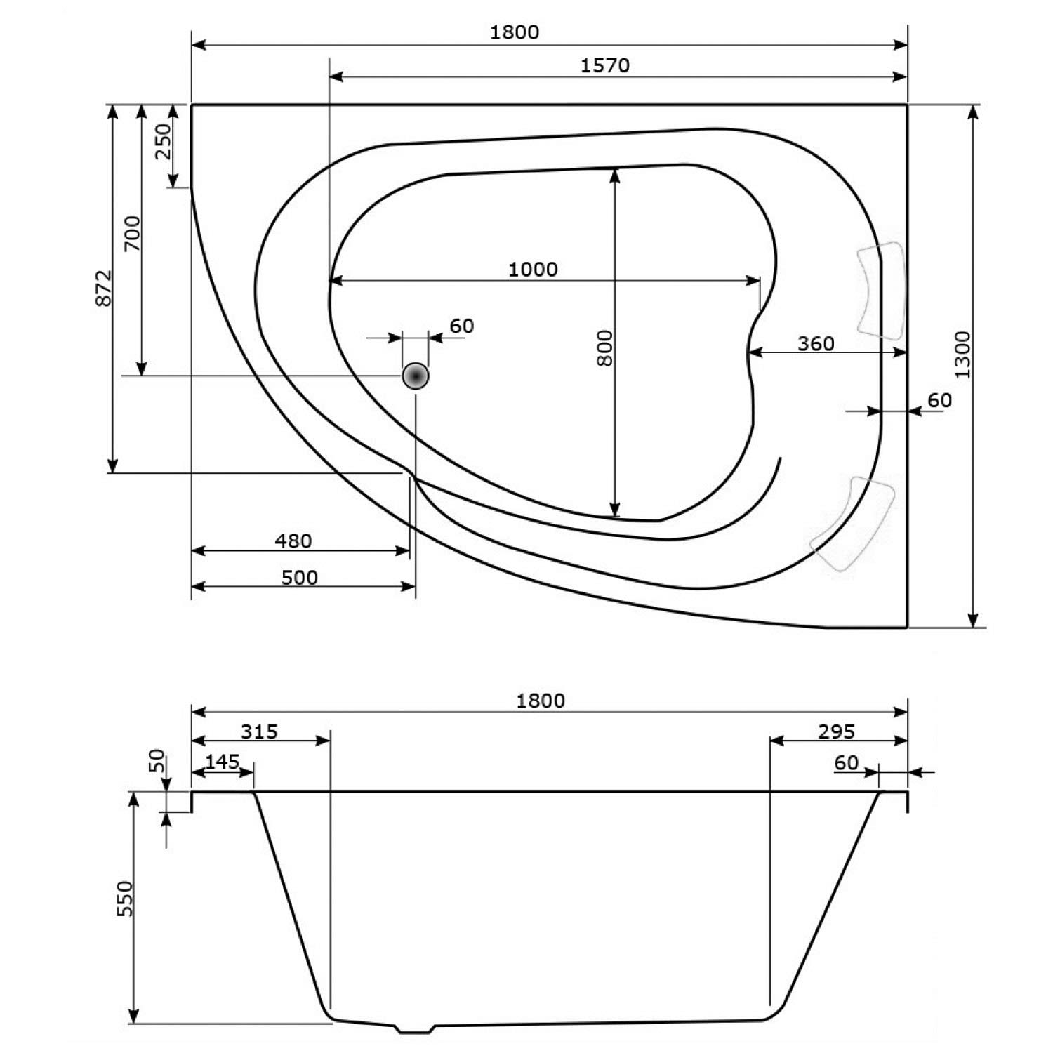 Caribia Delta XL Badewanne 180 x 130 cm ohne Schürze, für Ecke rechts