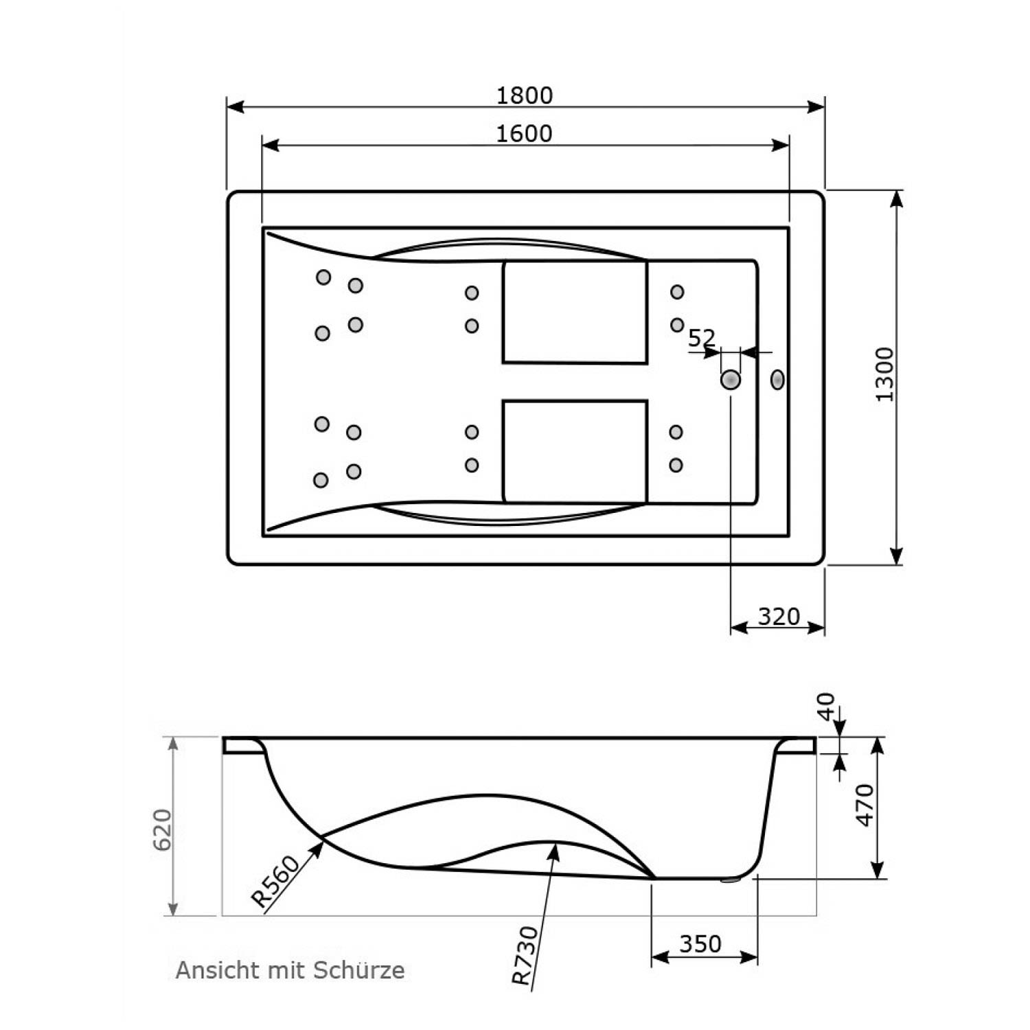Caribia Dinasty Badewanne 180 x 130 cm mit Schürze