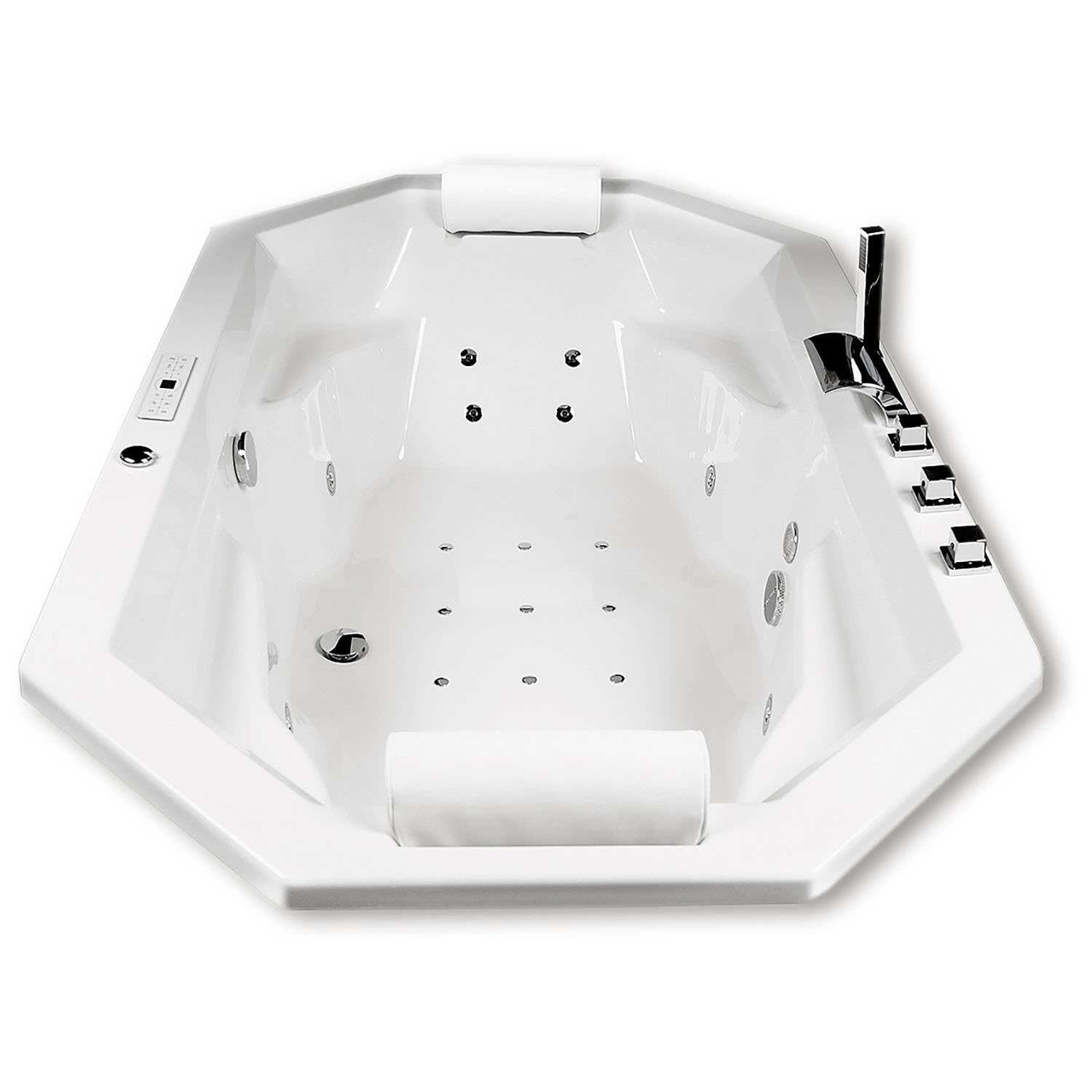 - der Whirlpool wird nur dann mit vorgebohrten Löchern geliefert, wenn die Caribia 5-Loch-Armatur (siehe Zubehör) mitbestellt wird