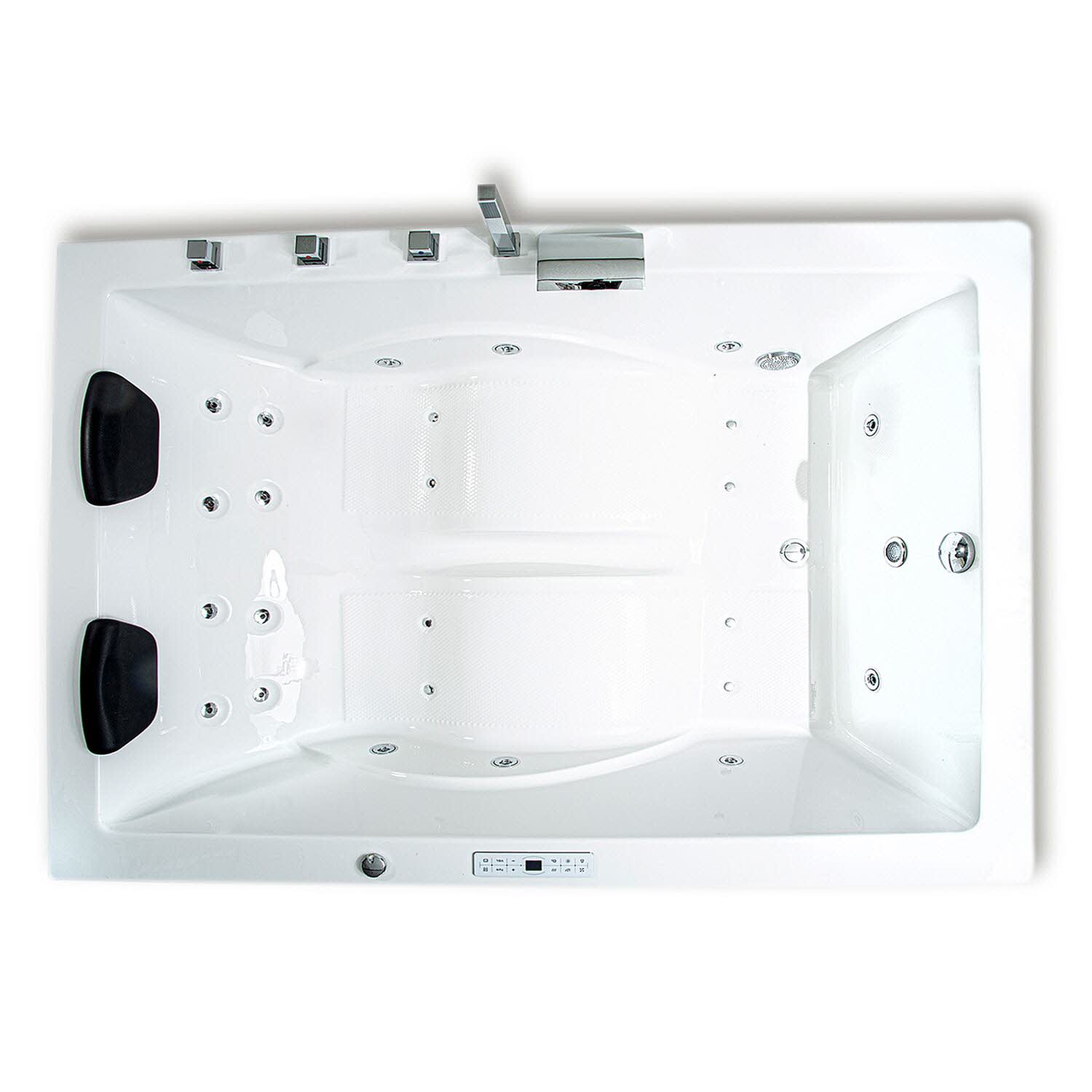- der Whirlpool wird nur dann mit vorgebohrten Löchern geliefert, wenn die Caribia 5-Loch-Armatur (siehe Zubehör) mitbestellt wird