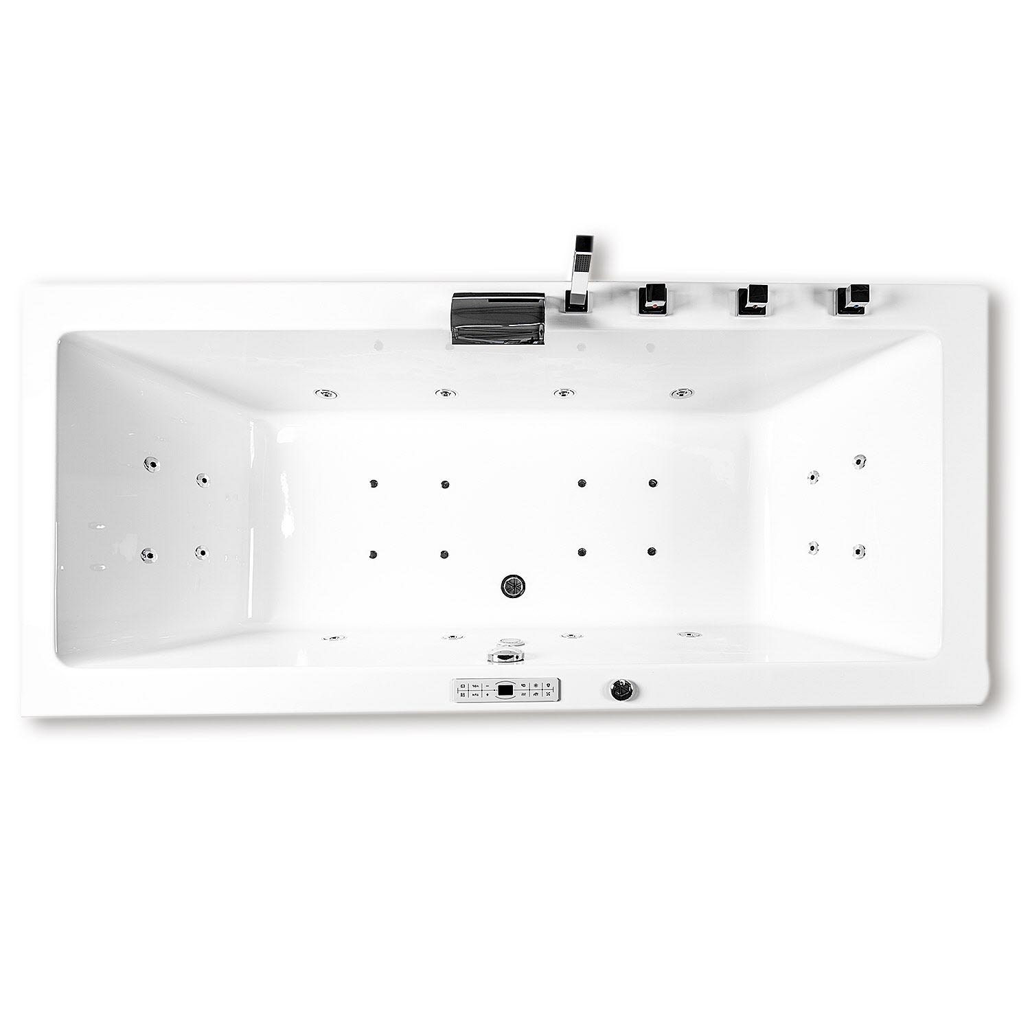 - der Whirlpool wird nur dann mit vorgebohrten Löchern geliefert, wenn die Caribia 5-Loch-Armatur (siehe Zubehör) mitbestellt wird