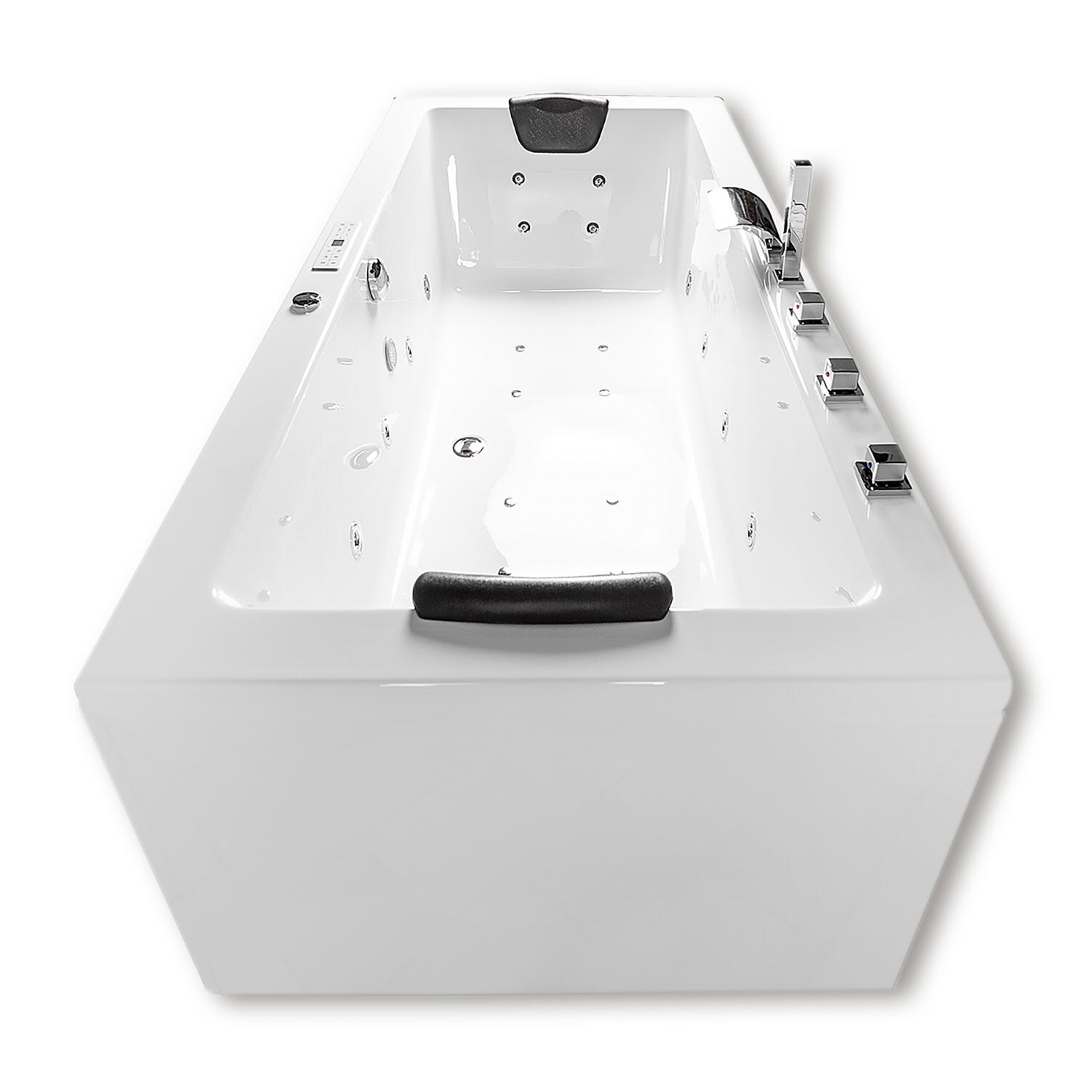 - der Whirlpool wird nur dann mit vorgebohrten Löchern geliefert, wenn die Caribia 5-Loch-Armatur (siehe Zubehör) mitbestellt wird