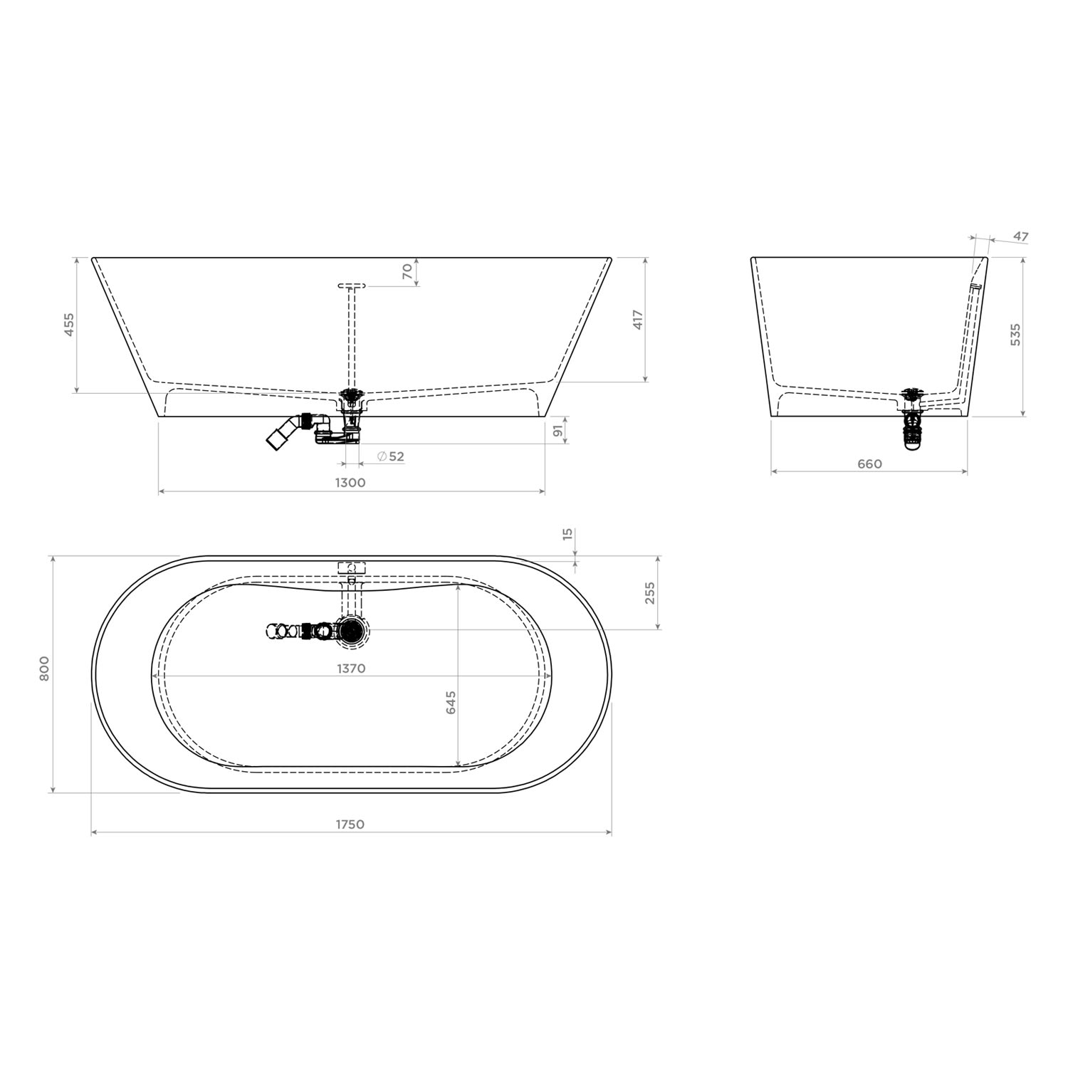 - freistehende Badewanne mit integriertem Überlauf