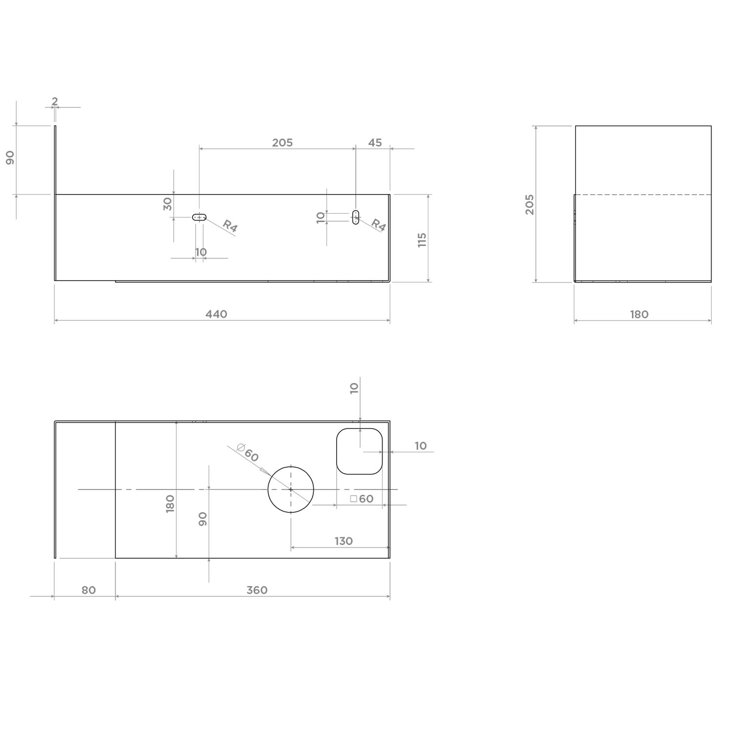 Clou Flush Waschtischunterschrank offen mit Handtuchhalter für Handwaschbecken Flush 3 rechts