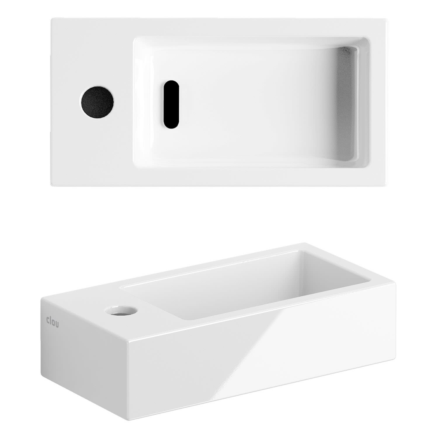 Clou Flush 3 Left Keramik-Handwaschbecken 36 x 18 cm mit Hahnloch links