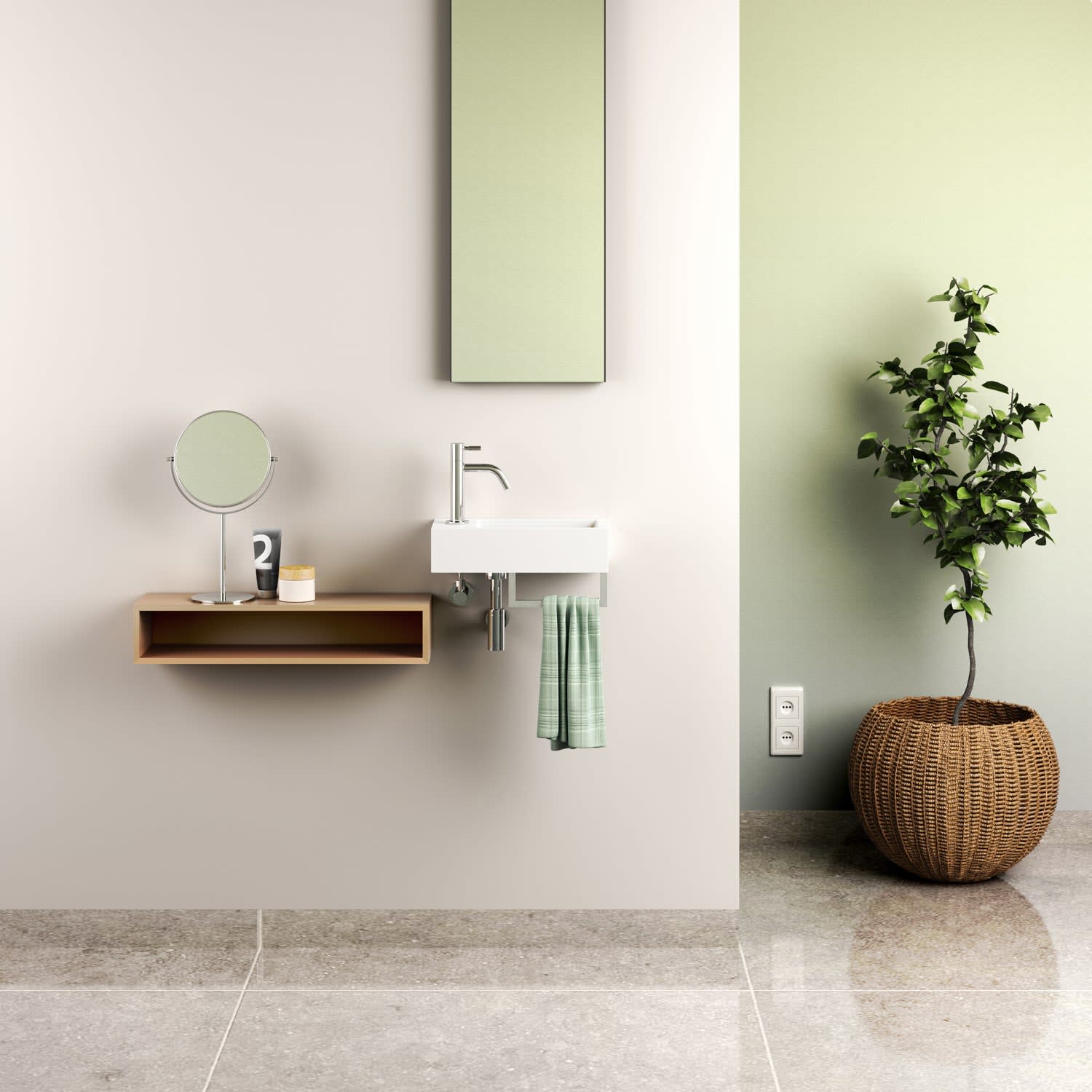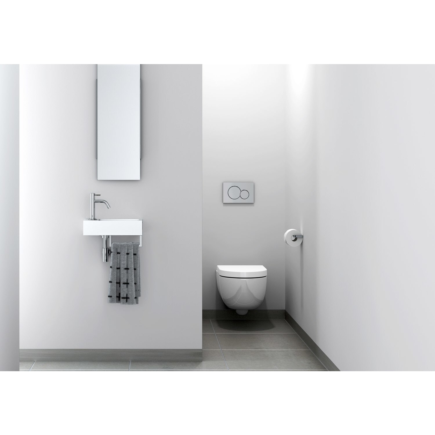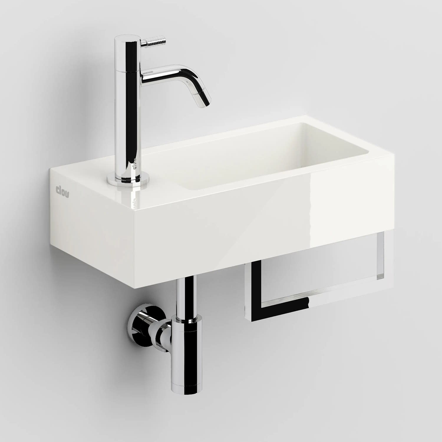 Clou Flush 3 Left Mineralmarmor-Handwaschbecken 36 x 18 cm mit vorgestochenem Hahnloch links und Handtuchhalter