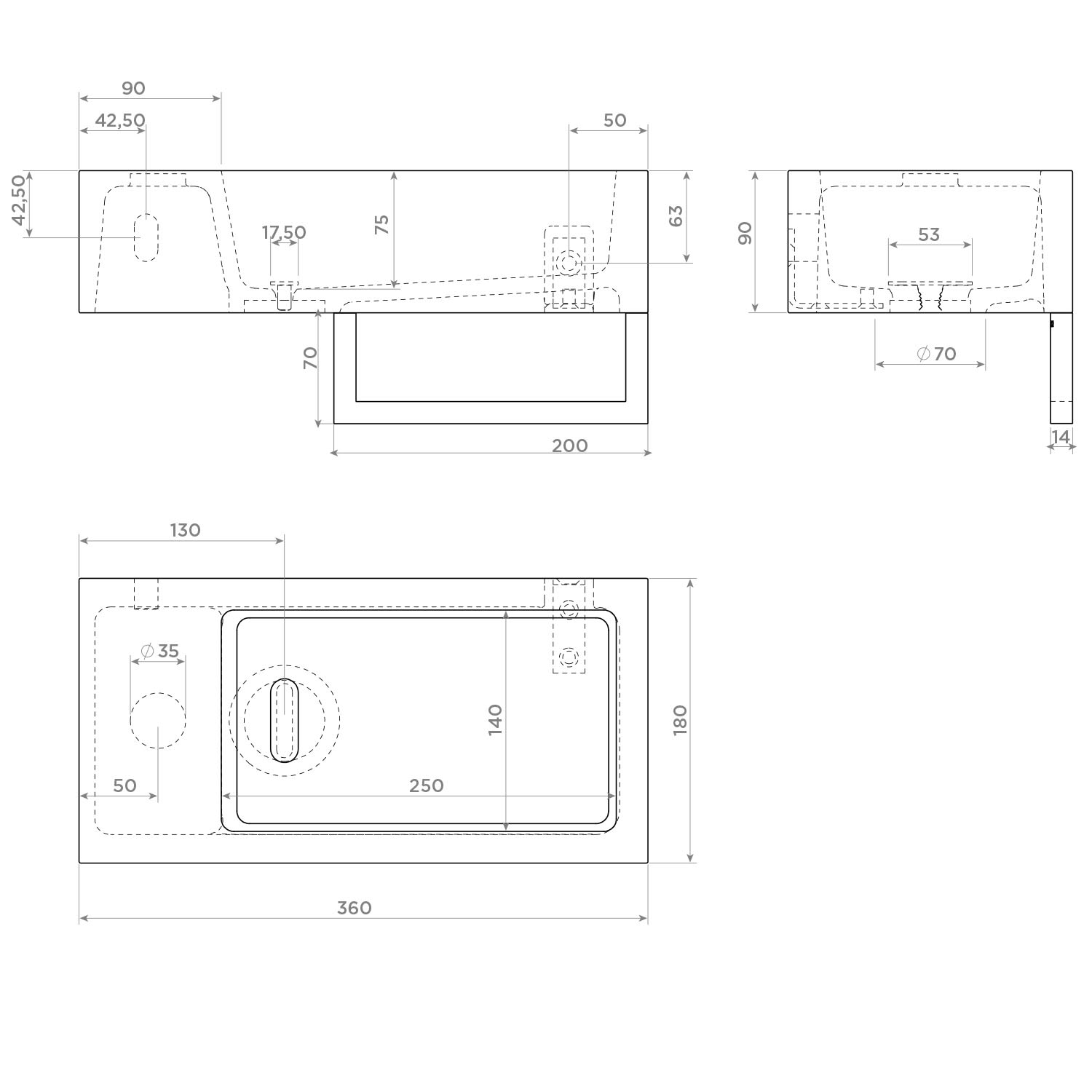 - Zum Lieferumfang gehört standardmäßig eine verchromte Ablaufgarnitur. Andere Farben müssen separat bestellt werden; siehe Zubehör.