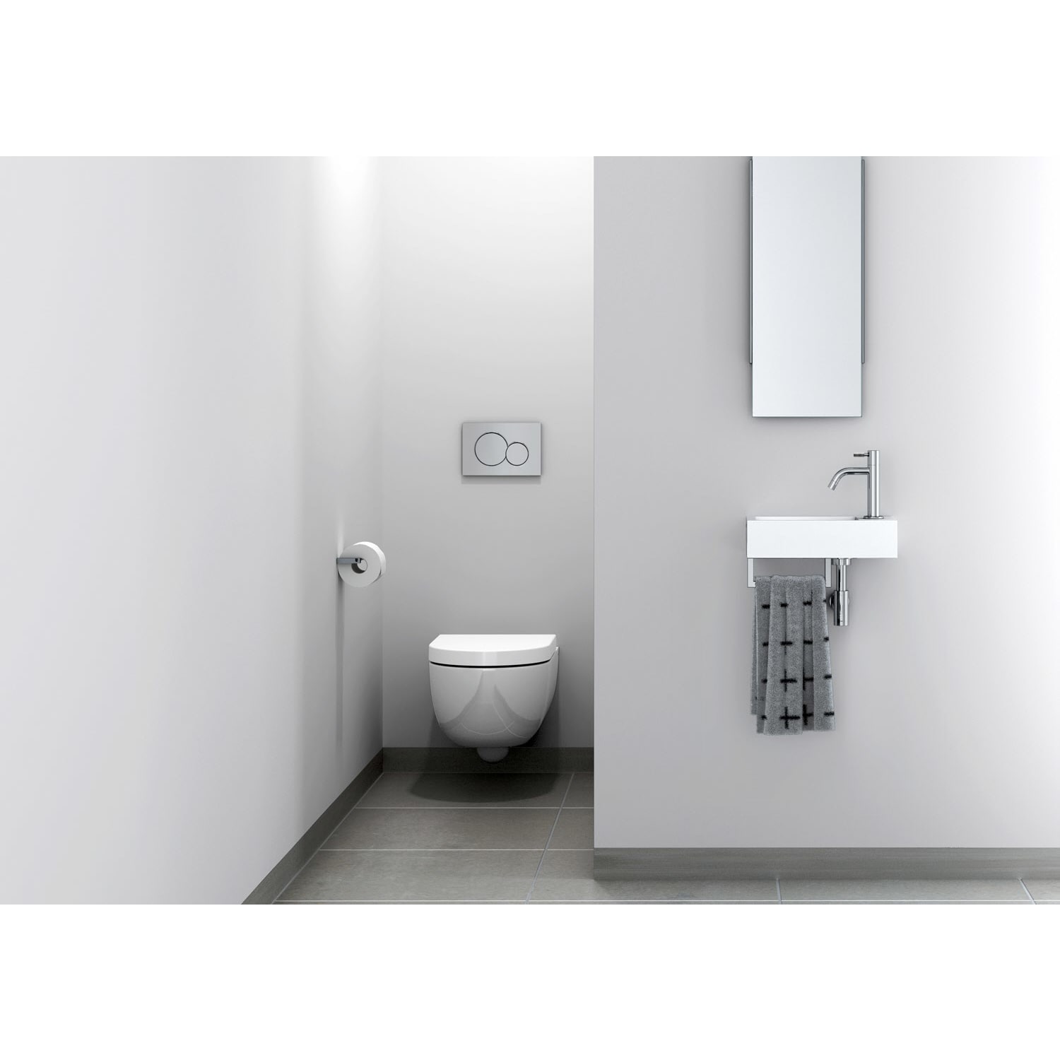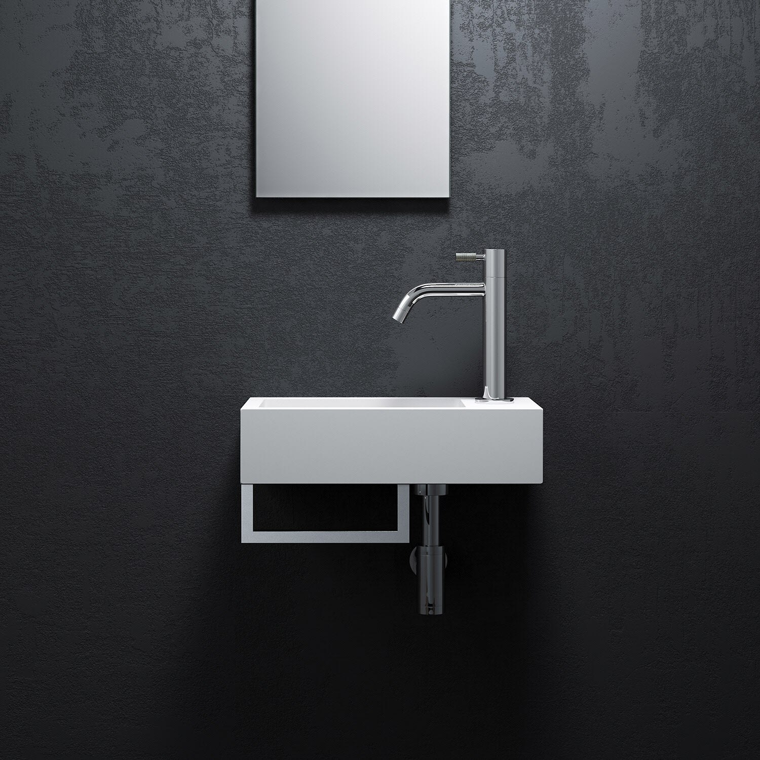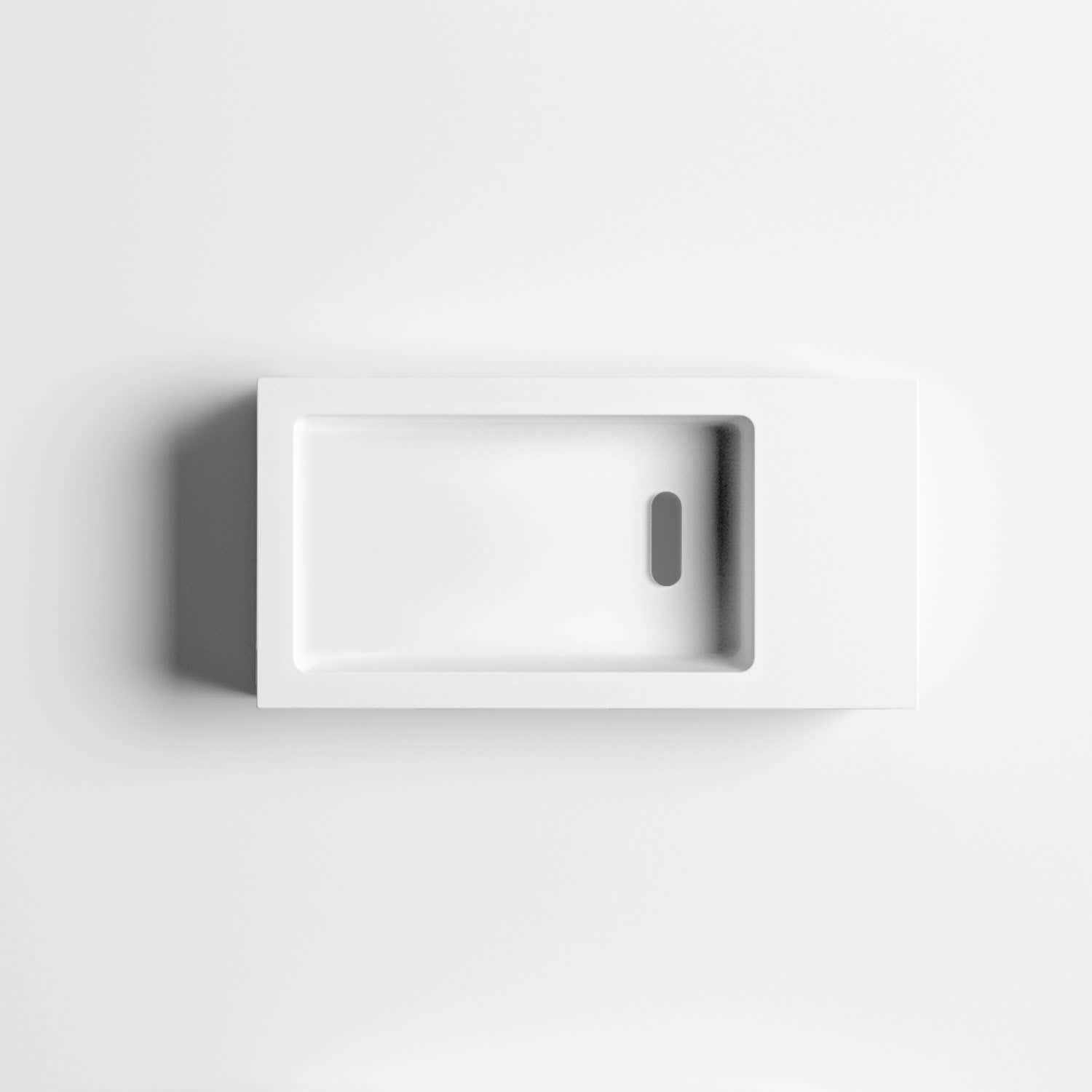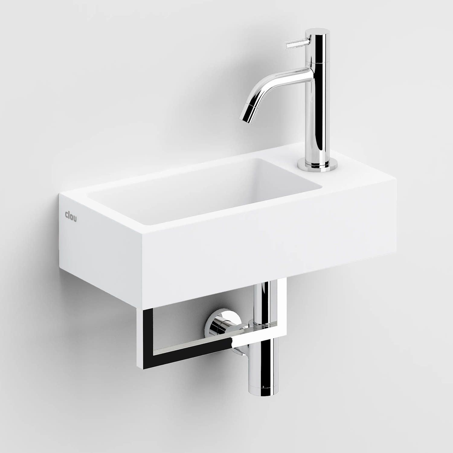 Clou Flush 3 Right Aluite-Handwaschbecken 36 x 18 cm mit vorgestochenem Hahnloch rechts und Handtuchhalter
