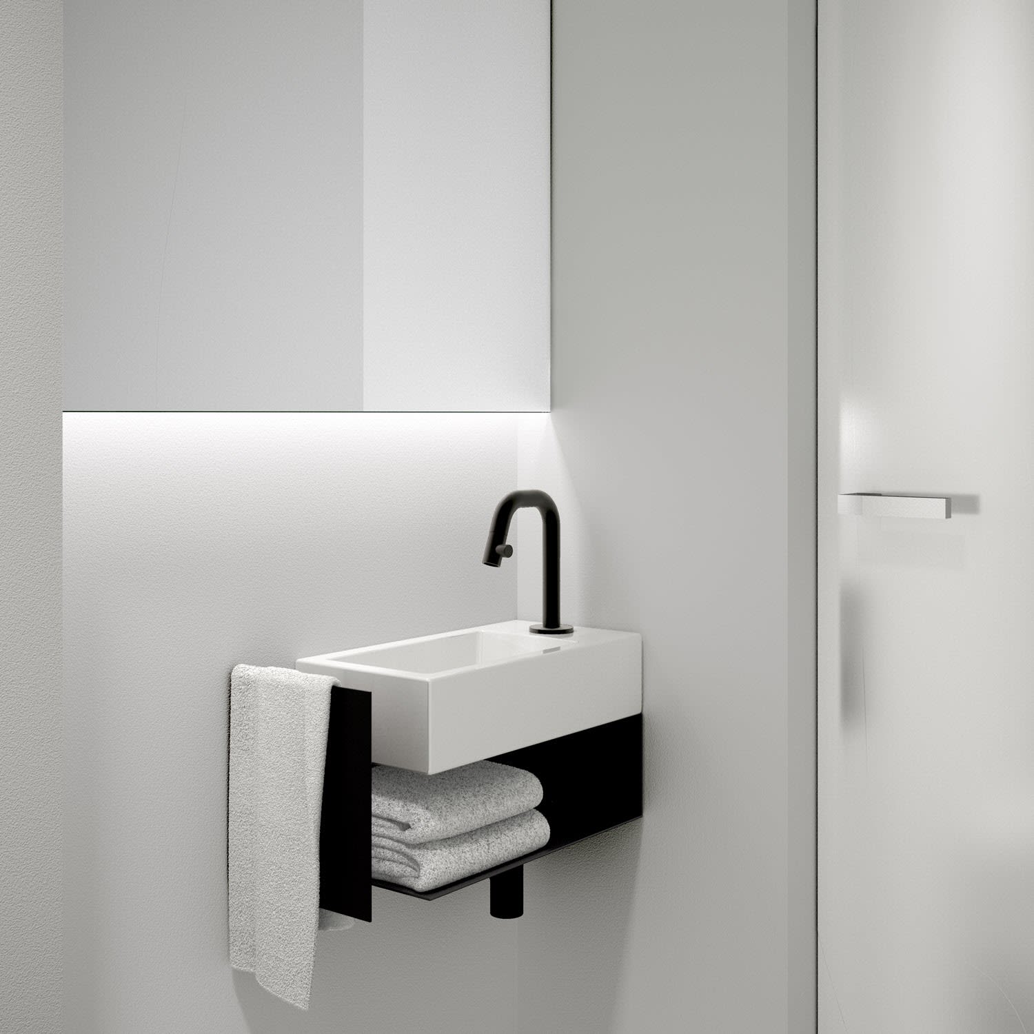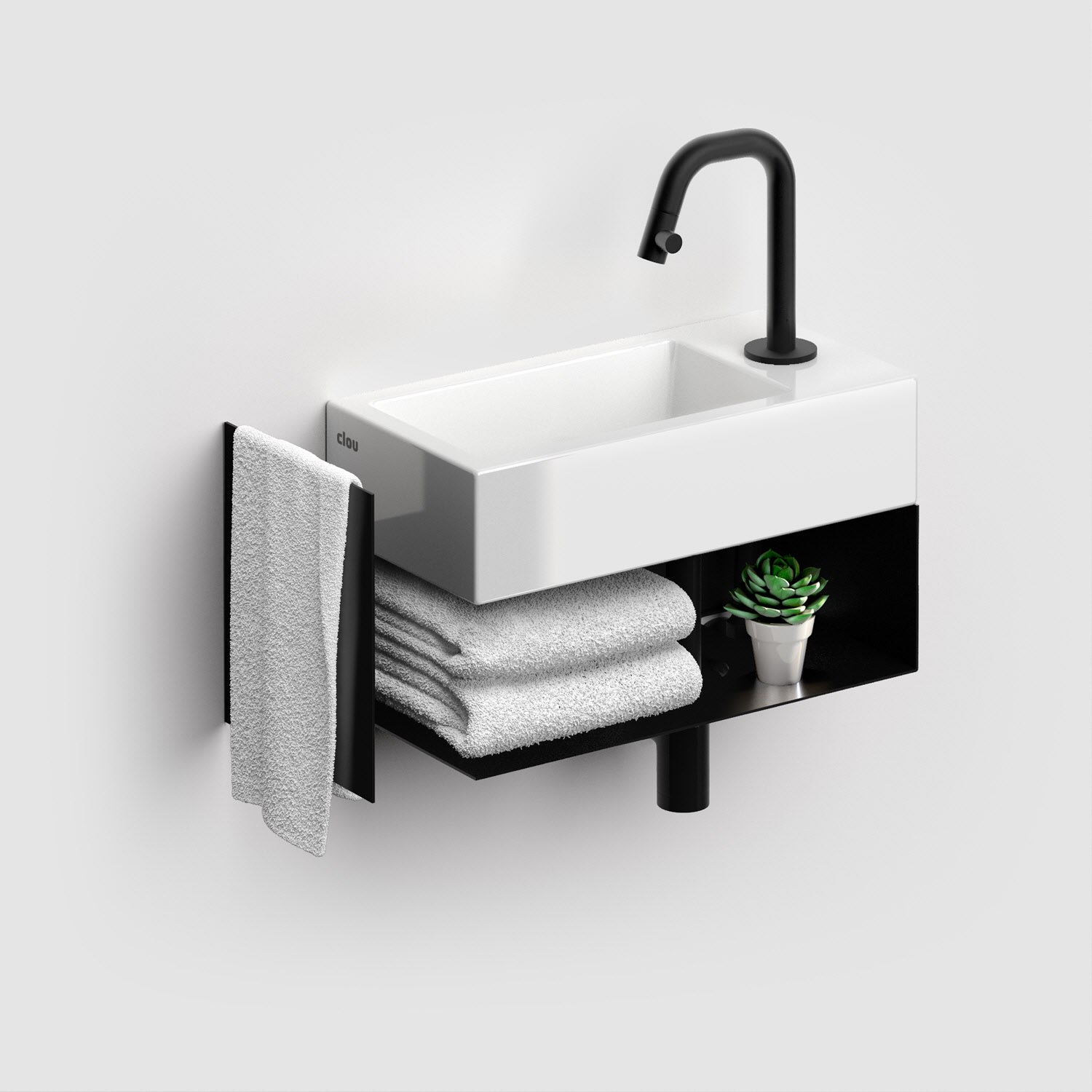 Clou Flush Waschtischunterschrank offen mit Handtuchhalter für Handwaschbecken Flush 3 rechts