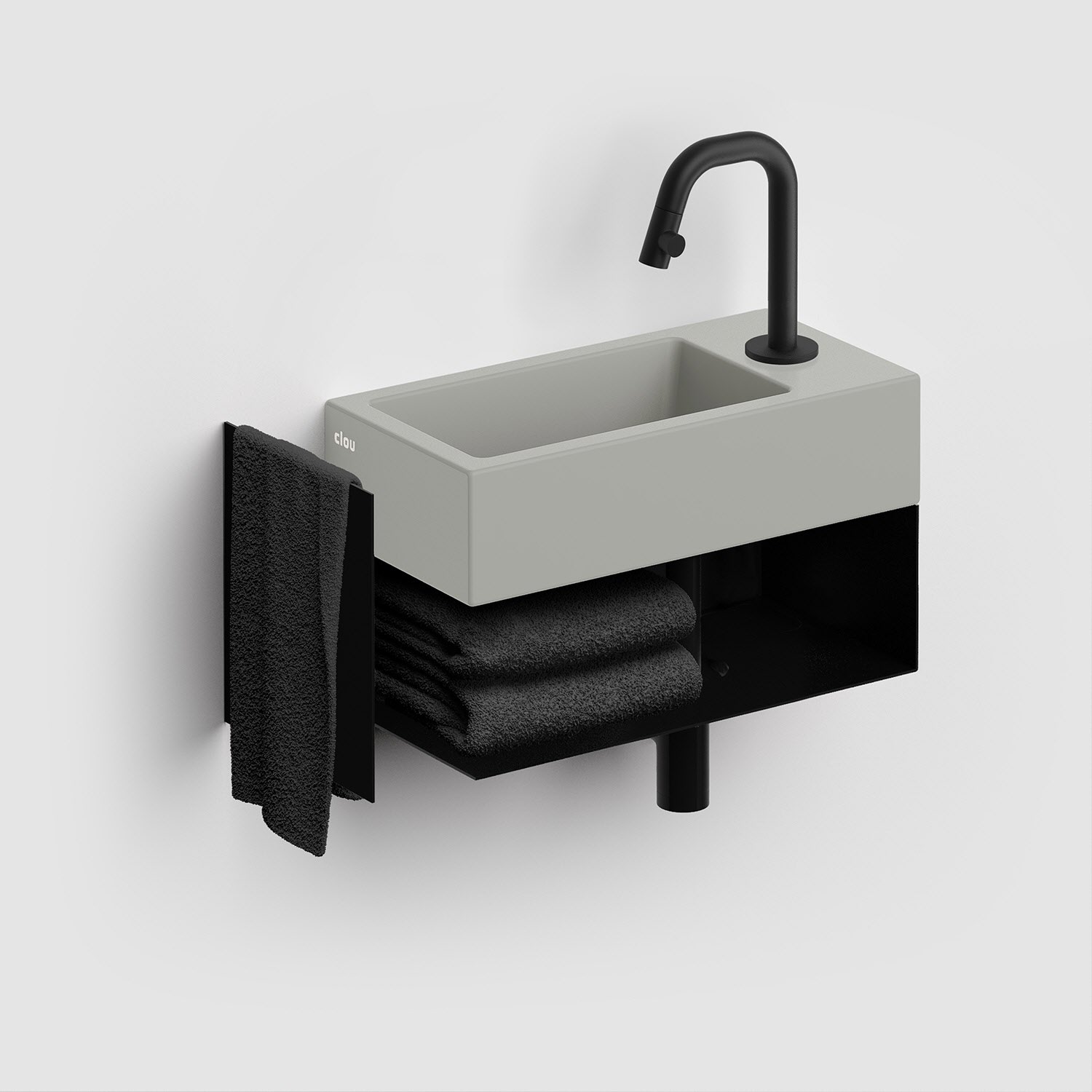 Clou Flush Waschtischunterschrank offen mit Handtuchhalter für Handwaschbecken Flush 3 rechts