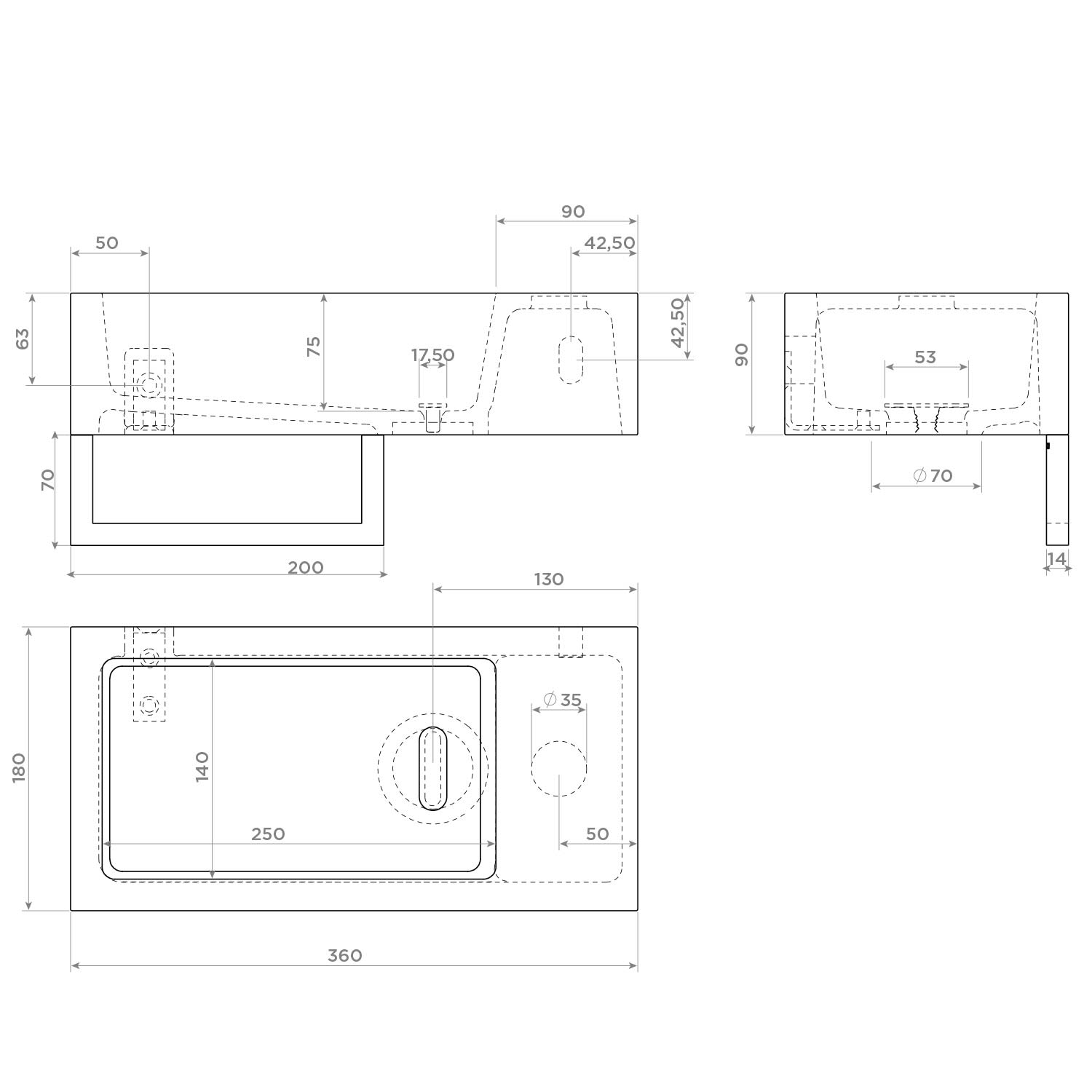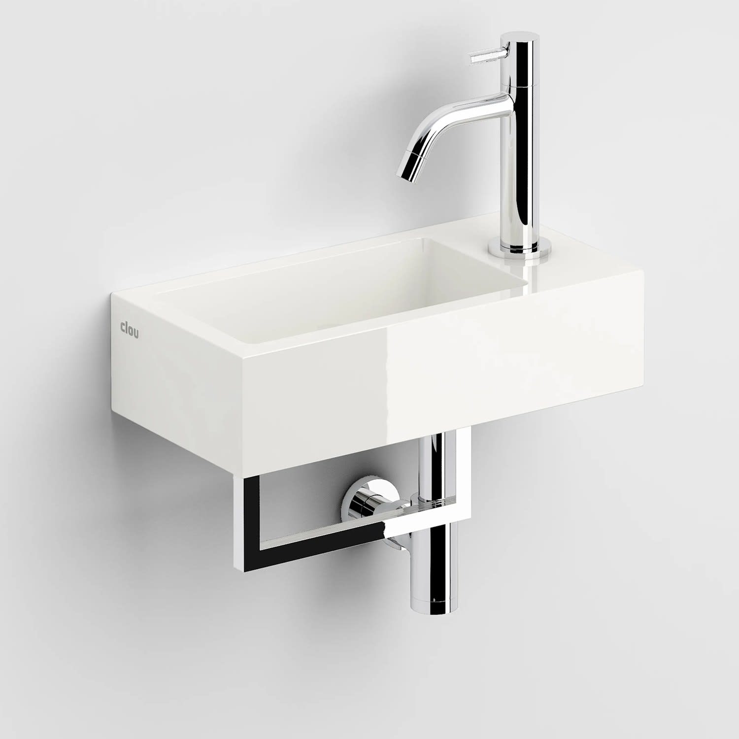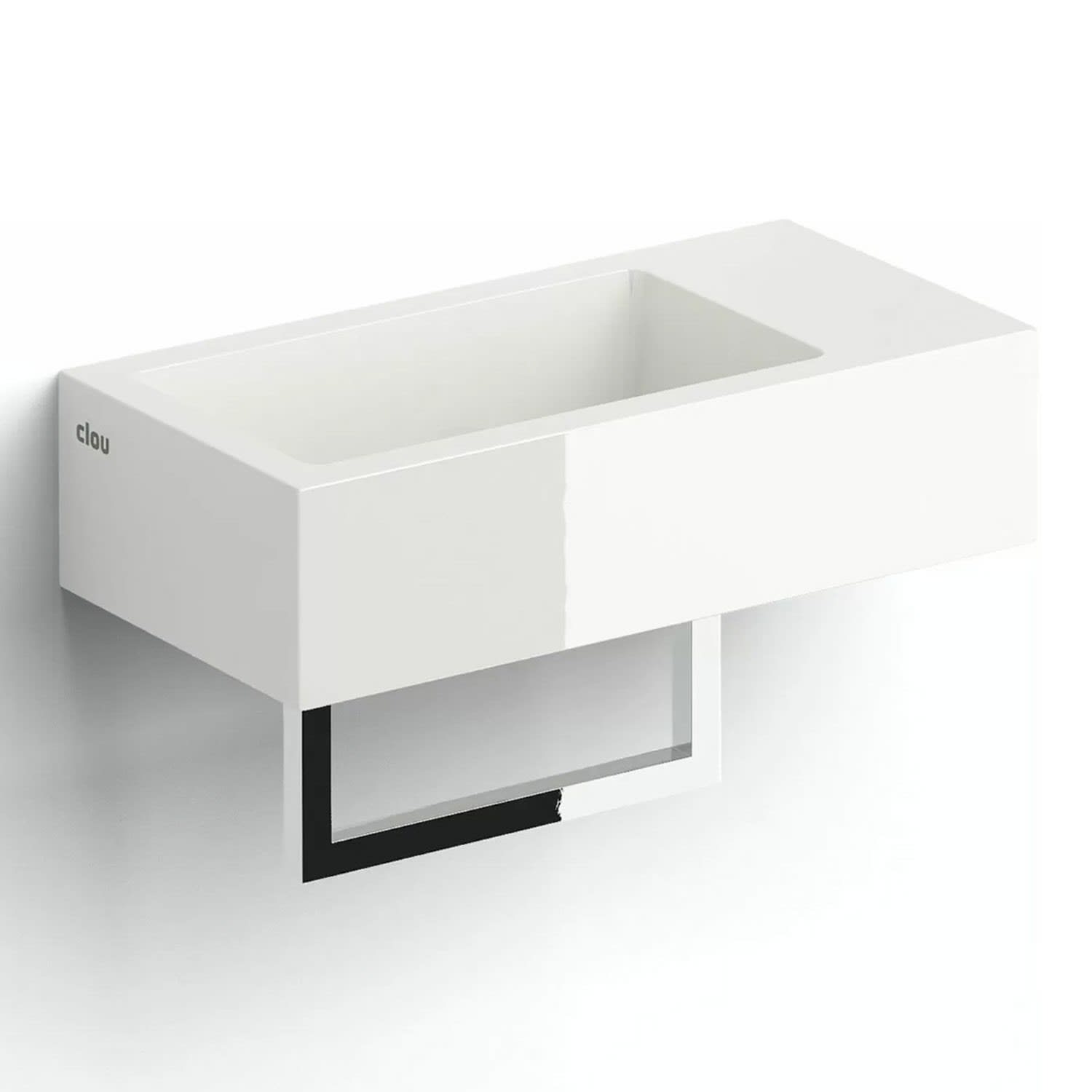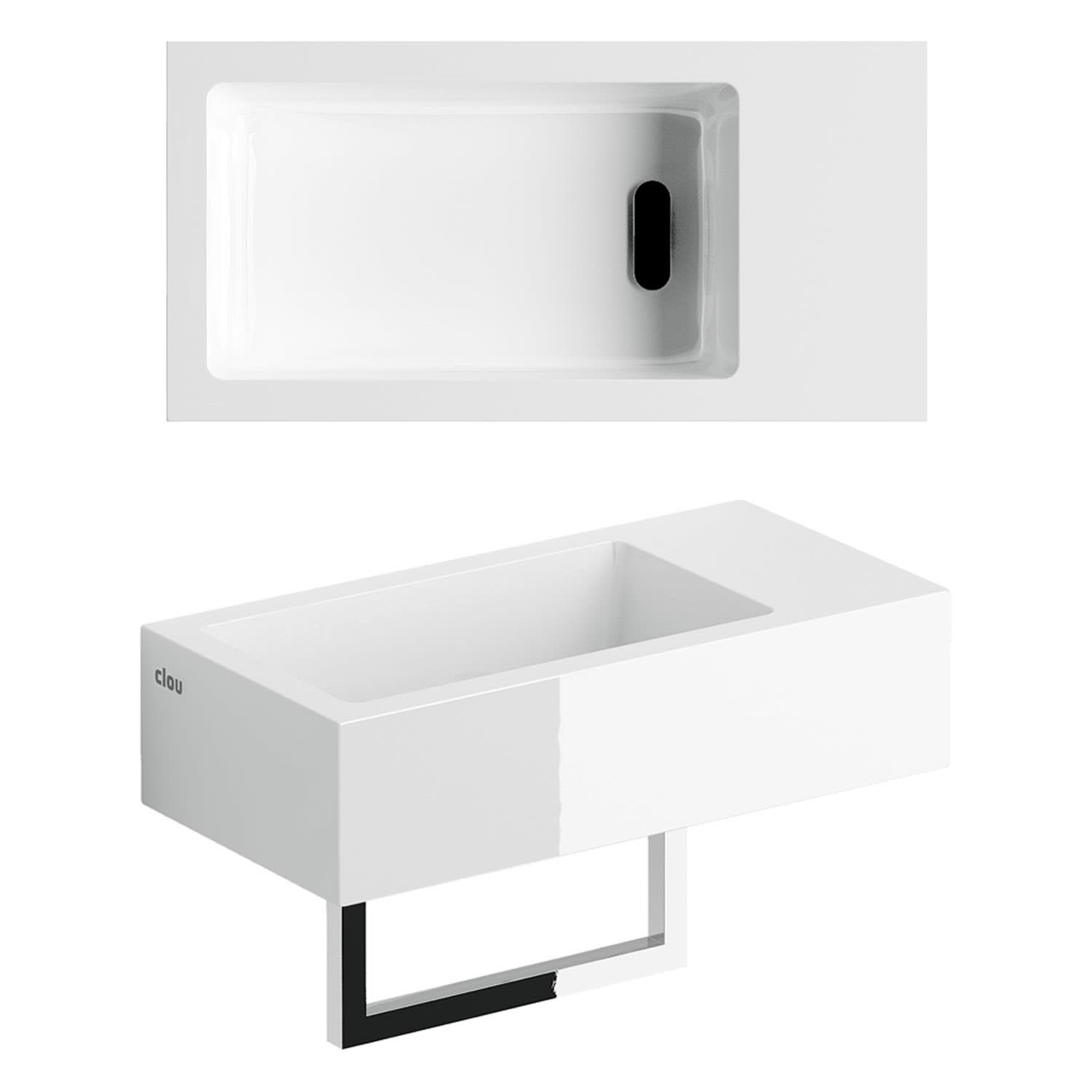 Clou Flush 3 Right Mineralmarmor-Handwaschbecken 36 x 18 cm mit vorgestochenem Hahnloch rechts und Handtuchhalter